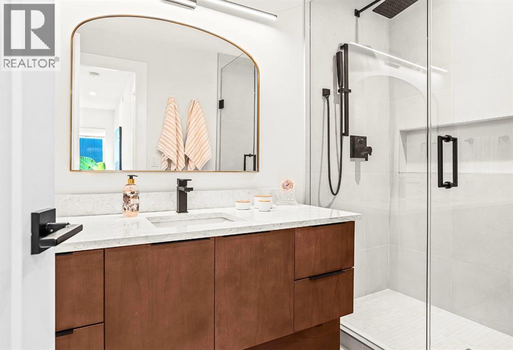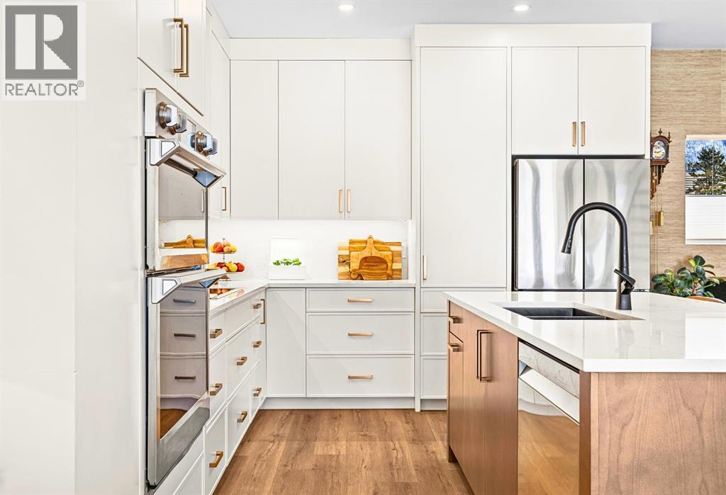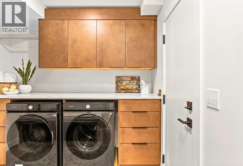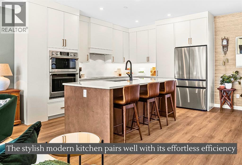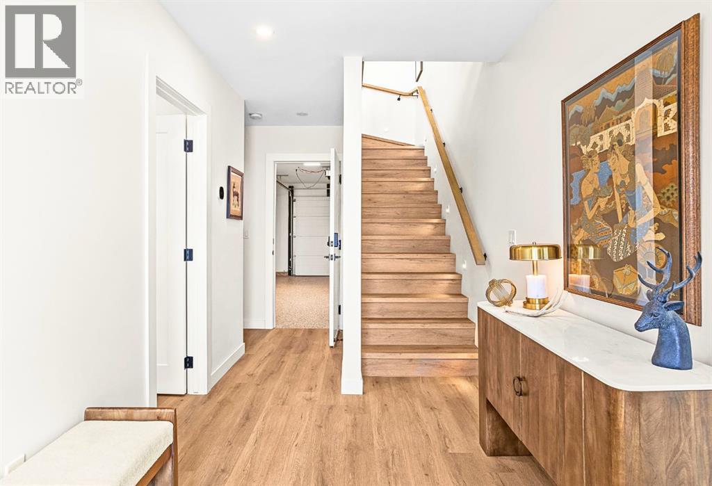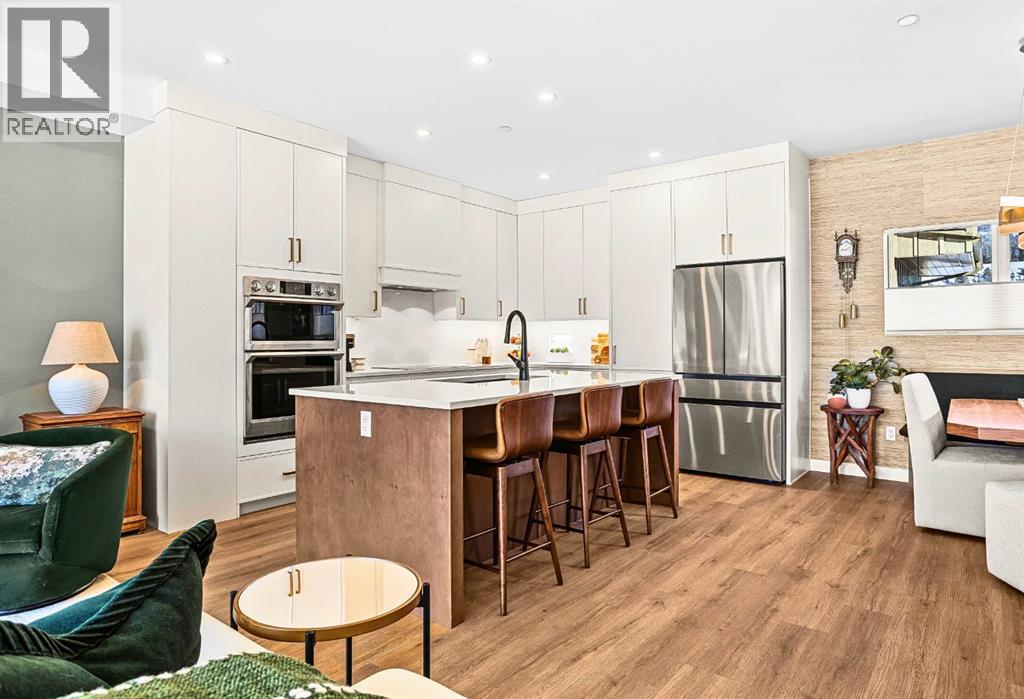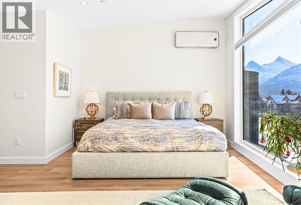 Welcome to the alpine sanctuary of Raven's Peak (Residential Only) in the heart of majestic Canmore — Completed in 2023 by a local homebuilder, this like-new 3-bedroom, 3-bathroom townhome blends thoughtful craftsmanship with refined modern design. Every detail feels intentional. Every space feels elevated. Step into the living room and feel the immediate impact of a dramatic floor-to-ceiling wall of Lux triple glaze windows — a stunning architectural statement that perfectly frames the grand mountain views beyond. Whether it’s sunrise alpenglow or a snow-dusted evening skyline, the striking peaks of the Canadian Rockies become your ever-changing artwork. The heart of the home is a showpiece kitchen anchored by a prominent quartz island — sleek, sculptural, and ideal for entertaining. Efficient stainless steel appliances complement clean modern lines, while a cozy breakfast nook invites slow mornings with coffee and your loved ones. It’s a space that effortlessly transitions from a quiet intimate evening, to a lively dinner parties with friends. The primary bedroom is nothing short of breathtaking. Imagine waking up to unobstructed mountain views — visible directly from your pillow. No buildings. No rooftops. Just stars, peaks, and bright blue sky. Spacious and serene, this retreat offers the kind of daily inspiration that never grows old. Beyond beauty lies performance. A highly efficient geothermal system provides sustainable heating and cooling year-round, delivering exceptional comfort with reduced environmental impact. Triple-glaze windows enhance both efficiency and tranquility, creating a peaceful indoor environment in every season. Practicality is equally refined. A convenient mudroom and bathroom sit directly off the garage — ideal for after mountain adventures. The single attached garage features durable epoxy flooring and a slatwall organizing system to keep all your gear in order. An exterior hose makes clean-up easy after hikes or bike rides, and the fe nced front patio offers a private space to relax in the alpine sun & air. Perhaps most coveted of all — direct pedestrian access across the street to downtown Canmore. Leave the car behind and stroll to cafés, boutiques, groceries, dining, and trailheads within minutes. No need for Canmore's amazing free public transit, but there is a stop a stones throw away. This is more than a townhome.It’s modern mountain living — elevated, efficient, and effortlessly connected to the very best of Canmore. (This is a Residential home, No STR allowed) (31687646)
