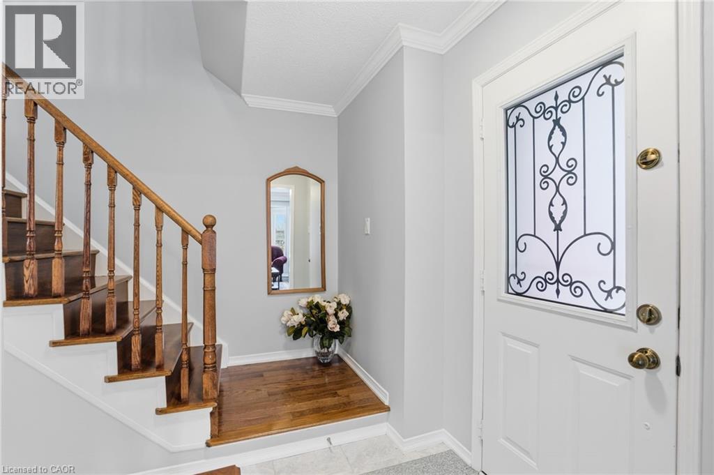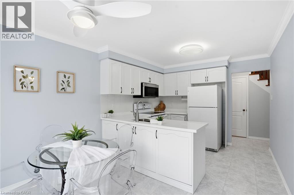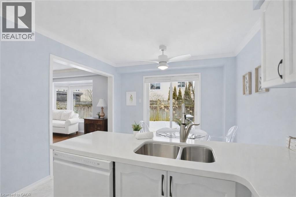 Welcome to Waterdown! If you’ve been searching for a freehold townhome at an attractive price point, this home is sure to tick all the boxes. Offering 3 bedrooms, 1.5 baths, and a fully finished basement, it provides comfortable living space for a growing family. The bright main floor features a spacious living room with a large picture window and updated flooring, flowing seamlessly into a beautifully updated white kitchen with quartz countertops, an eat-in breakfast area, and a walk-out to the professionally landscaped backyard. Designed for both relaxation and entertaining, the backyard offers a patio, lush gardens, and mature trees that provide excellent privacy. A convenient two-piece bathroom and hall closet complete this level. Upstairs, you’ll find 3 generously sized bedrooms and a 4-piece main bathroom. The primary bedroom features two generous closets and offers enough space to accommodate a future ensuite. The finished lower level adds valuable living space with pot lights, light-toned flooring, a spacious recreation room, and a separate laundry room. Situated in Waterdown East, this home is located in a family-friendly neighbourhood close to schools and all major amenities. Mechanical Updates: Roof (2012), Furnace & A/C (2014), Bay Window (2000). (70208888)