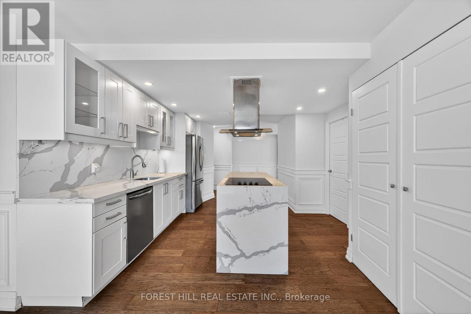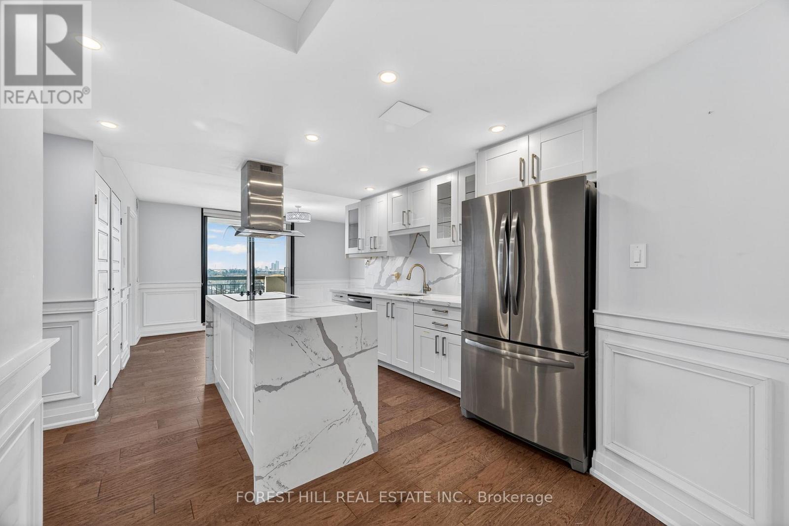 Experience modern living in this FULLY RENOVATED bright, open-concept corner unit. Featuring high-end finishes and functional upgrades, this suite offers a seamless blend of style and value. The renovated kitchen features stainless steel appliances, a large centre island, and a massive, over 130 sqft eat-in area with a walk-out to the balcony where you can enjoy unobstructed South-West views. This suite features modern flooring, pot lights, and a beautiful accent wall in the living room. Added bonus of a spacious sun-filled enclosed den that can easily be used as an office. Enjoy the convenience of an oversized storage room right inside your unit. Low maintenance fees which include all utilities and cable and internet! Enjoy fantastic amenities like an outdoor pool, tennis court, gym, sauna, 24 hour gatehouse and party room. EXRA-WIDE parking oversized parking spot right by entrance. This building is perfectly situated near major transit, schools, grocery shopping and places of worship. This is truly a turnkey suite you can be proud to call your home. (42224224)