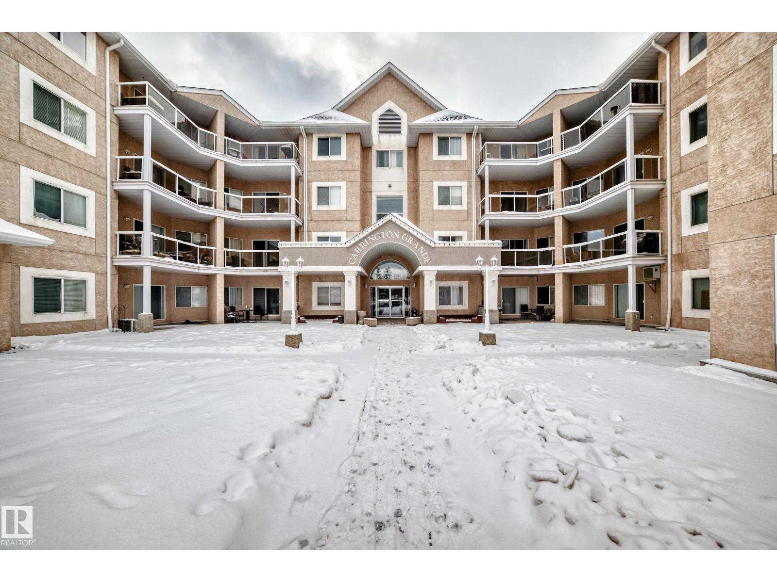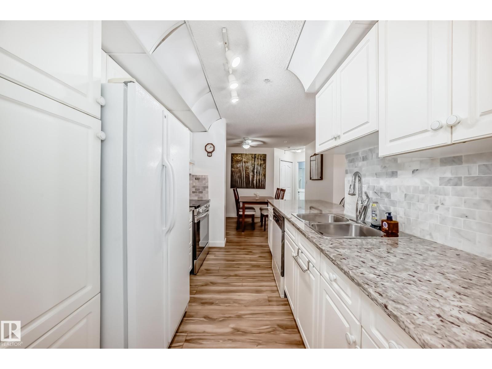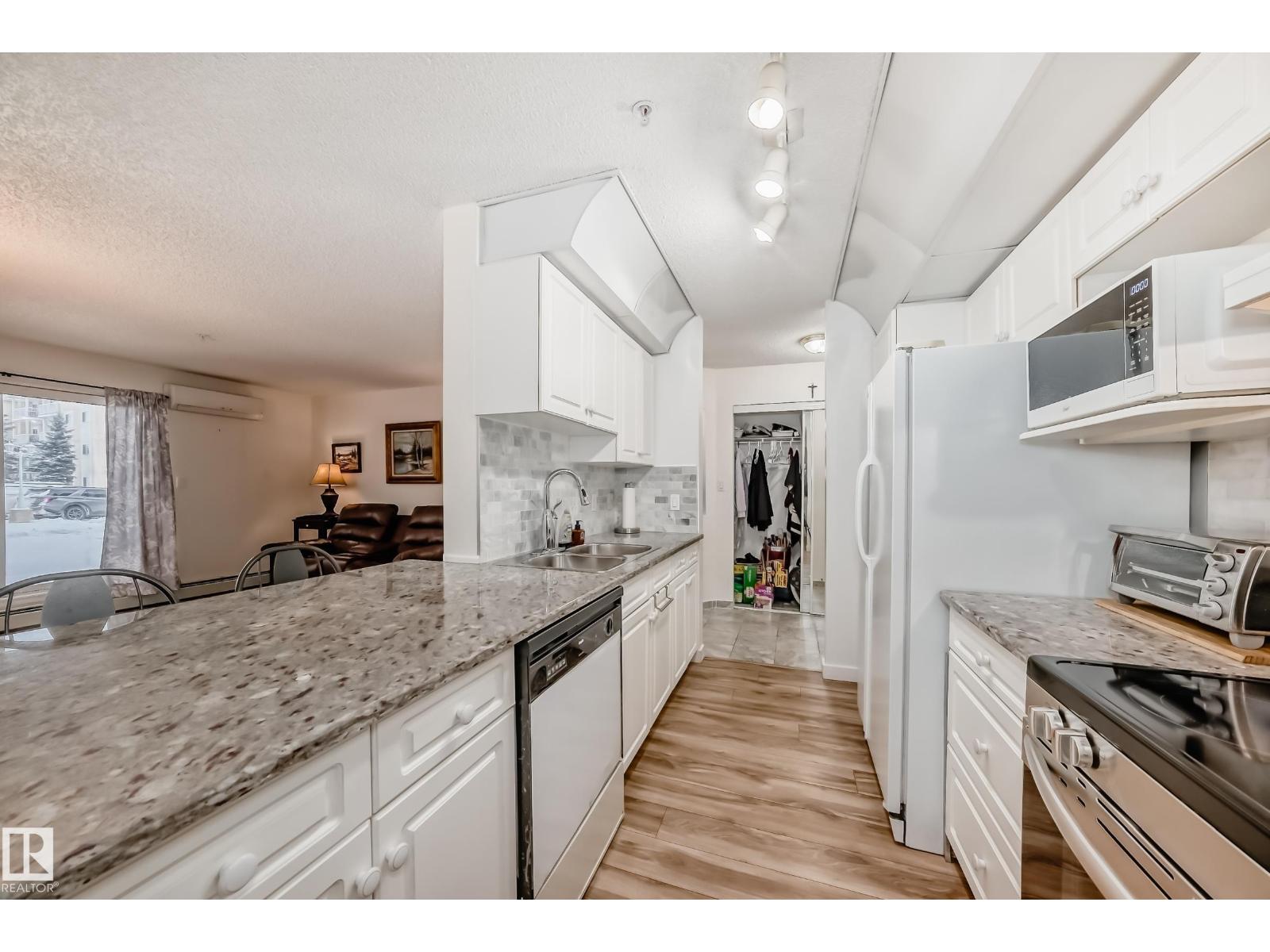 Welcome to this beautifully maintained 2 bed, 2 bath main-floor unit in Grande West in Terra Losa! From the moment you step inside, you’ll feel at home. The bright galley kitchen features white cabinetry, newer granite countertops, updated backsplash, and a new stove. Warm wood-tone flooring flows seamlessly into the dining area and living room. The spacious primary bedroom offers a walk-through closet and private 3-piece ensuite, while the second bedroom and 4-piece bath are thoughtfully positioned on the opposite side for added privacy. Enjoy the convenience of in-suite laundry and a covered patio. Additional highlights include central A/C, in-suite and cage storage, and one titled underground heated parking stall. The building also offers a social room, third-floor library, and car wash. Ideally located near shopping, the seniors centre, public transit, and Terra Losa Lake — this is a wonderful place to call home! (33876716)
