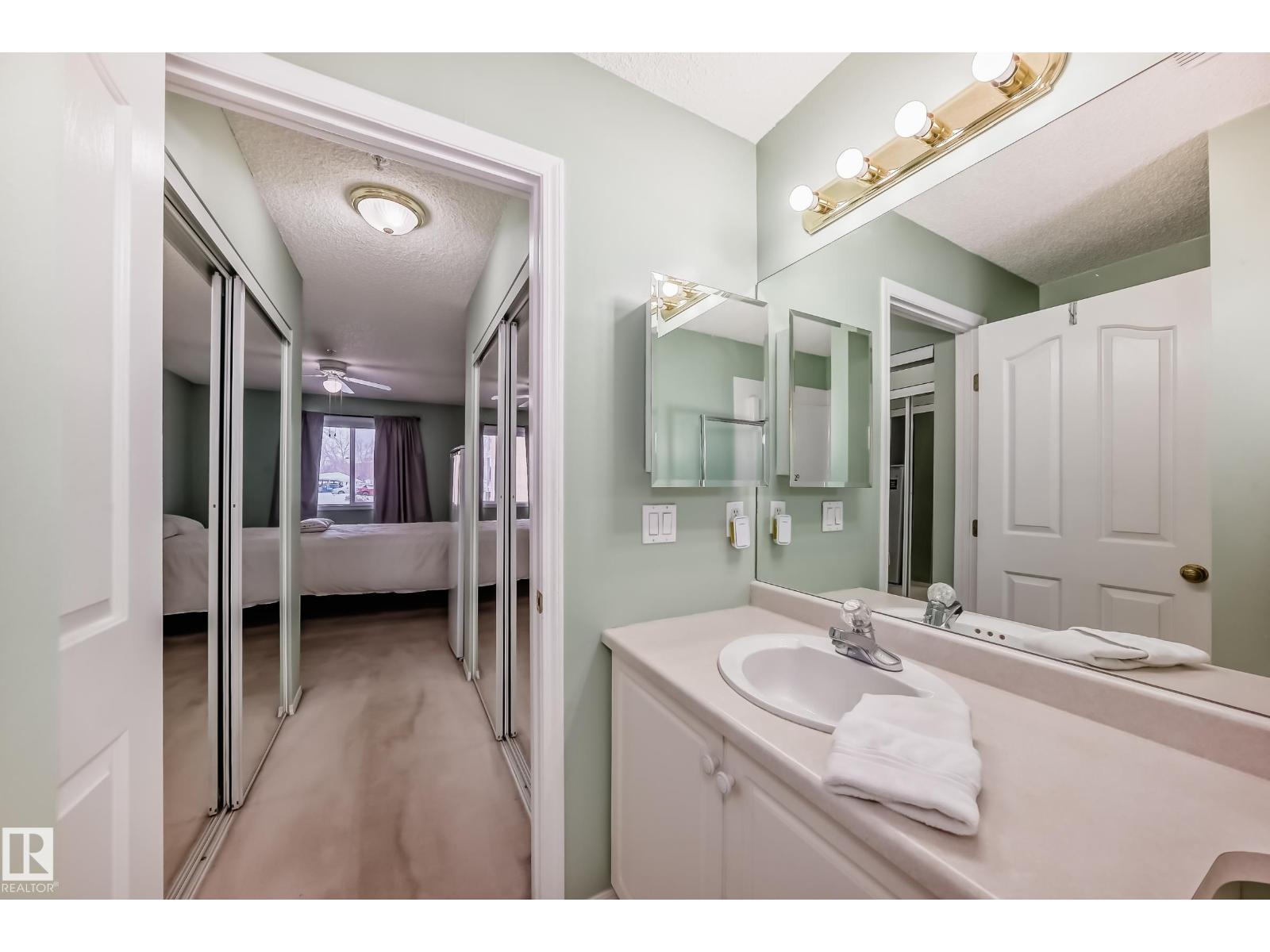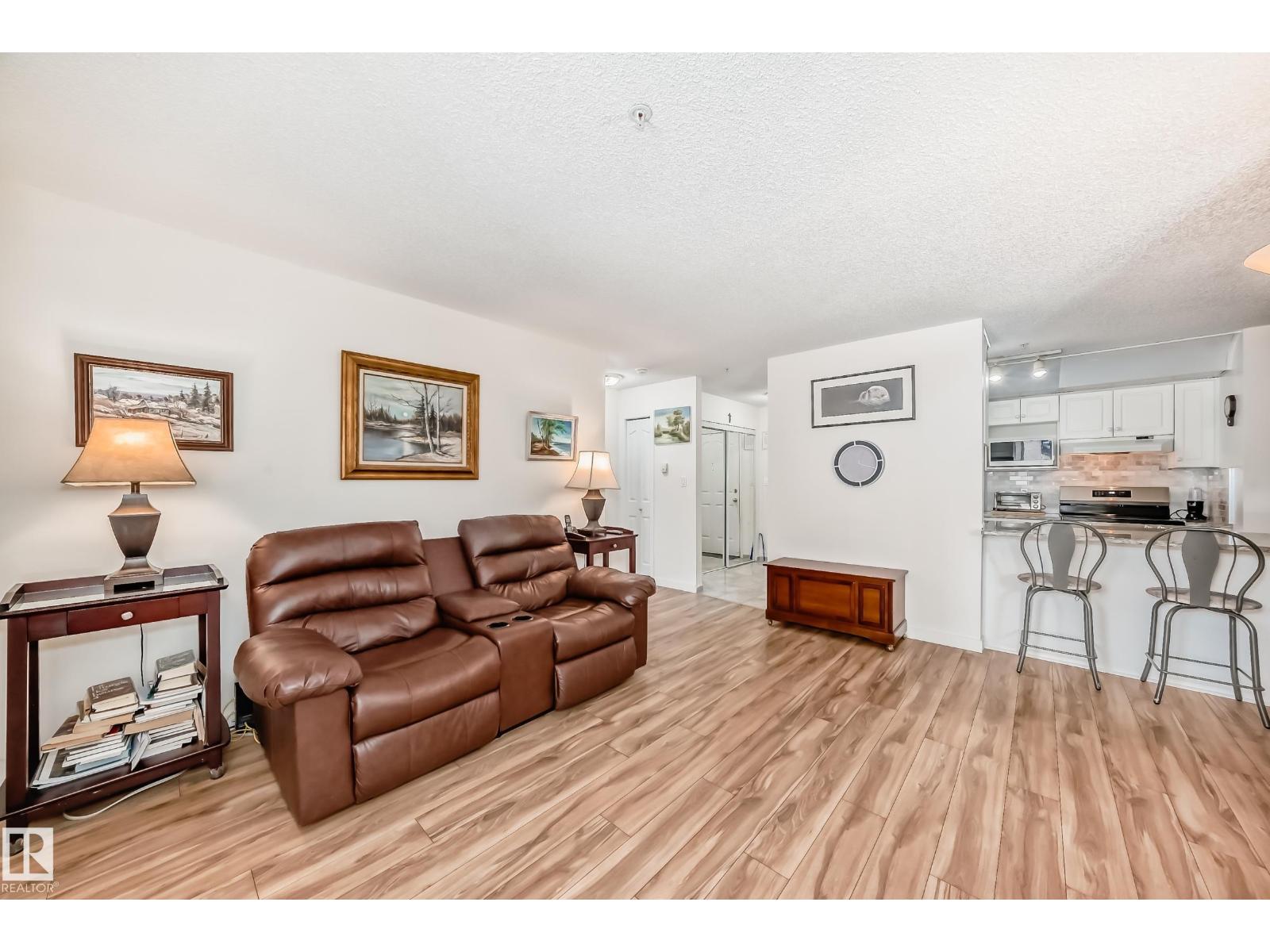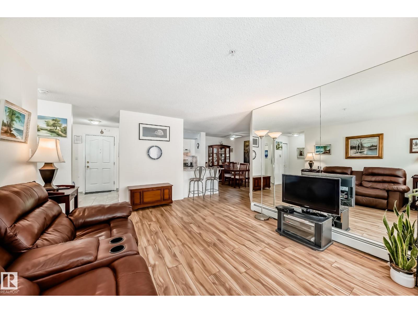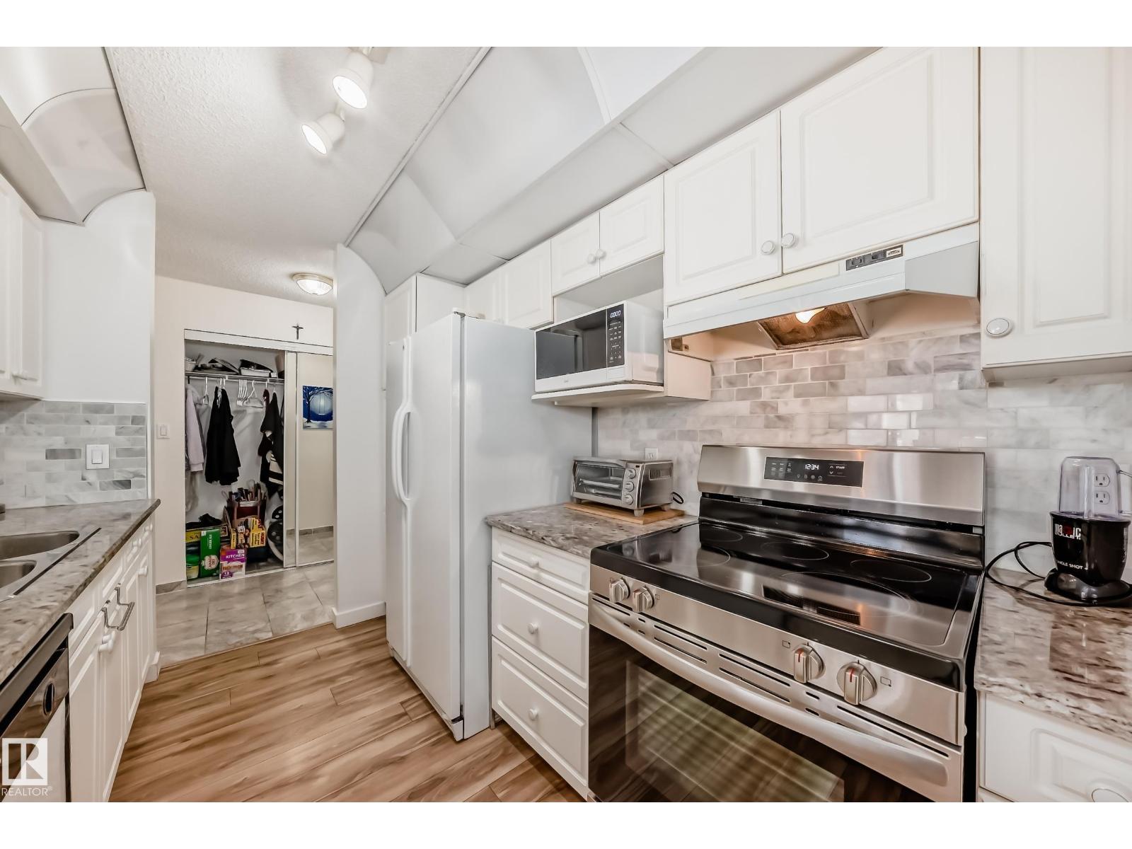 Welcome to this beautifully maintained 2 bed, 2 bath main-floor unit in Grande West in Terra Losa! From the moment you step inside, you’ll feel at home. The bright galley kitchen features white cabinetry, newer granite countertops, updated backsplash, and a new stove. Warm wood-tone flooring flows seamlessly into the dining area and living room. The spacious primary bedroom offers a walk-through closet and private 3-piece ensuite, while the second bedroom and 4-piece bath are thoughtfully positioned on the opposite side for added privacy. Enjoy the convenience of in-suite laundry and a covered patio. Additional highlights include central A/C, in-suite and cage storage, and one titled underground heated parking stall. The building also offers a social room, third-floor library, and car wash. Ideally located near shopping, the seniors centre, public transit, and Terra Losa Lake — this is a wonderful place to call home! (33876716)