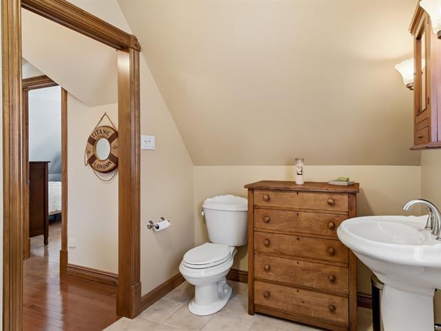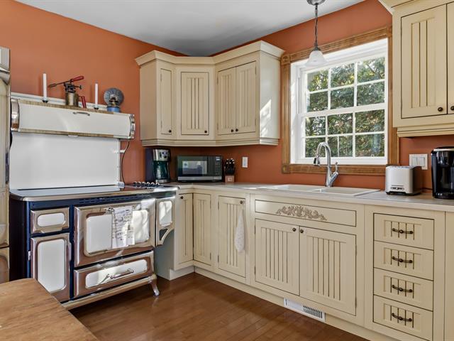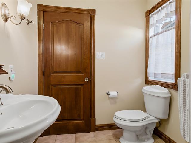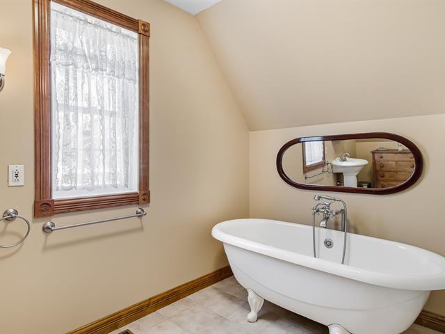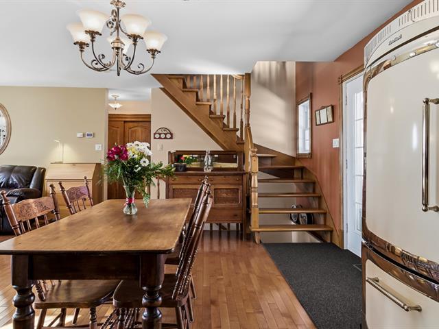 Charmante propriété champêtre clé en main située dans un rond-point paisible avec magnifique vue sur la montagne. Accès direct à la piste cyclable et aux installations de loisirs à l'arrière du terrain. Le rez-de-chaussée propose de beaux espaces à aire ouverte, lumineux et conviviaux, avec matériaux de qualité et salle de bain rénovée. À l'étage, 2 chambres de bonnes dimensions et une deuxième salle de bain complète. Le sous-sol offre une grande salle familiale, une salle de lavage et la possibilité d'aménager une 3e chambre. Terrain intime sans voisin à l'arrière avec spa, espace feu, garage, remise. À 800m de l'école primaire ! Faites-vite (39075846)