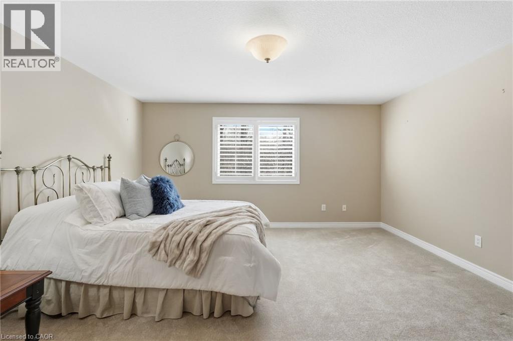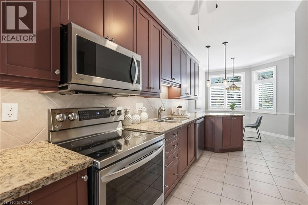 Welcome to this beautifully upgraded 2,733 sq. ft. luxury bungaloft townhouse in the highly sought-after Meadowlands community, ideally located close to shopping, dining, and everyday conveniences. Featuring a desirable primary bedroom on the main floor, this home offers the comfort of main-level living. Tucked away on a quiet road and backing onto a protected rear conservation area that will never be developed, it provides exceptional privacy and a true low-maintenance lifestyle within a well-managed complex known for strong capital planning and consistent upgrades. Featuring a rare 2-car garage and soaring 18-ft cathedral ceilings, the bright great room is anchored by a cozy gas fireplace and filled with natural light. Quality hardwood floors, California shutters, and pot lights enhance the main living areas. The modern kitchen with matching appliances and granite countertops overlooks the impressive great rom, with garden doors leading to a two-tiered deck, patio stone landscaping, and fenced yard. The family room offers a walk-out to the backyard for seamless indoor-outdoor living. The primary bedroom is conveniently located on the main floor, facing the ravine for added tranquility, and includes a walk-in closet and 5-piece ensuite, plus main-floor laundry. Upstairs features a loft, additional bedroom with shared ensuite, and a family room that can easily convert to a third bedroom. The professionally finished lower level includes a games room, rec room, bar area, 3-piece bath, and hobby room—ideal for guests. Recent upgrades include a new asphalt and concrete driveway (2025), $75,000 in patio stone landscaping, roof replacement (2023), approved window and door replacements (2027), and A/C and water heater renewed in 2024 with warranty. (70209990)