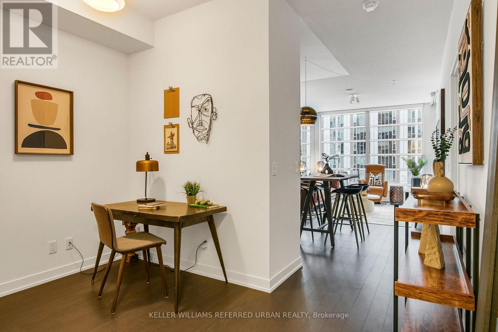 Welcome to 455 Front St E, a modern condominium located in Toronto's east downtown Canary District. This bright and functional 1+den, 2 full bath suite features an open-concept layout with contemporary finishes throughout. The combined living and dining area offers excellent natural light and flows seamlessly into the modern kitchen, ideal for both everyday living and entertaining. The primary bedroom includes a private ensuite bathroom and walk in closet, while the den provides flexible space for a home office or guest area. Extra perks of this unit are the large parking spot and unlimited internet included in the maintenance fees. Residents enjoy access to a full range of building amenities, including a fully equipped gym, games room, party room, rooftop terrace with BBQs, and 24-hour concierge. Conveniently located steps to Corktown Common, the Distillery District, TTC transit, A brand-new YMCA, shops, cafes, and everyday essentials such as a pharmacy, grocery store, dentist, and vet, the location doesn't get any better. Enjoy a quieter but well-equipped residential community with quick access to the downtown core and major commuter routes. A well-appointed suite in a connected and growing community, ideal for professionals, investors, or first-time buyers. (42224773)