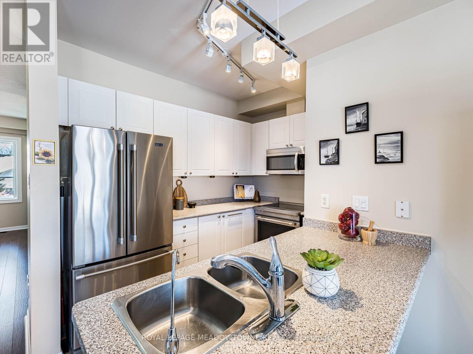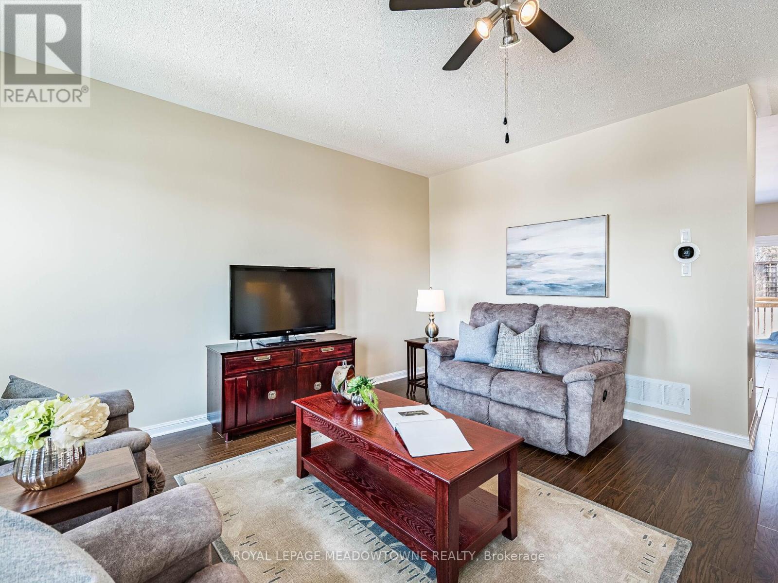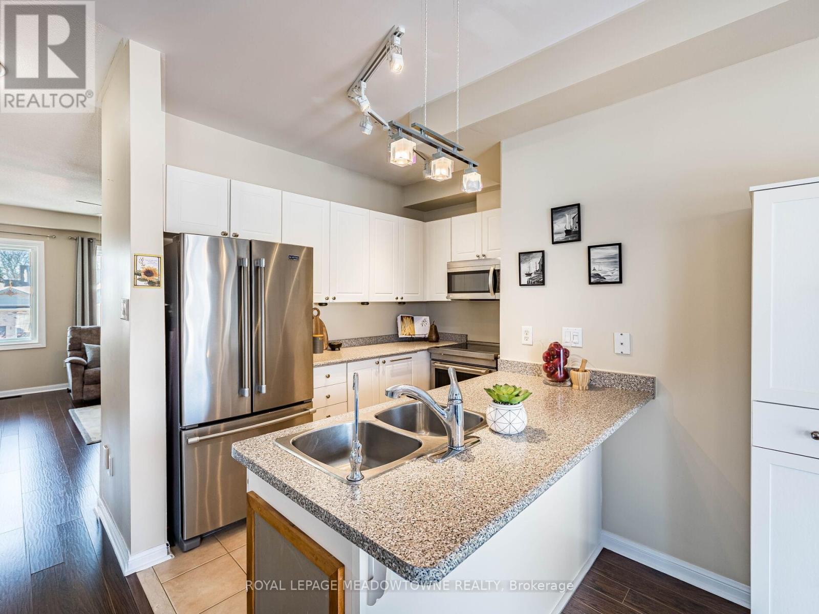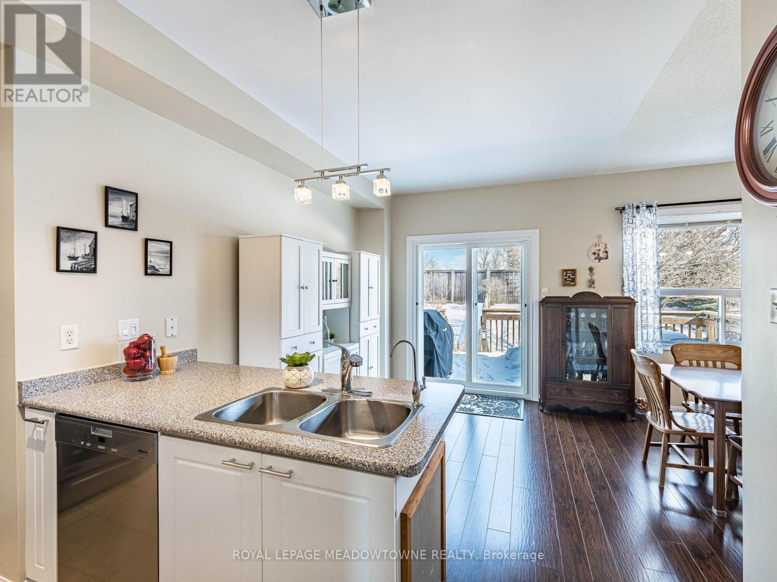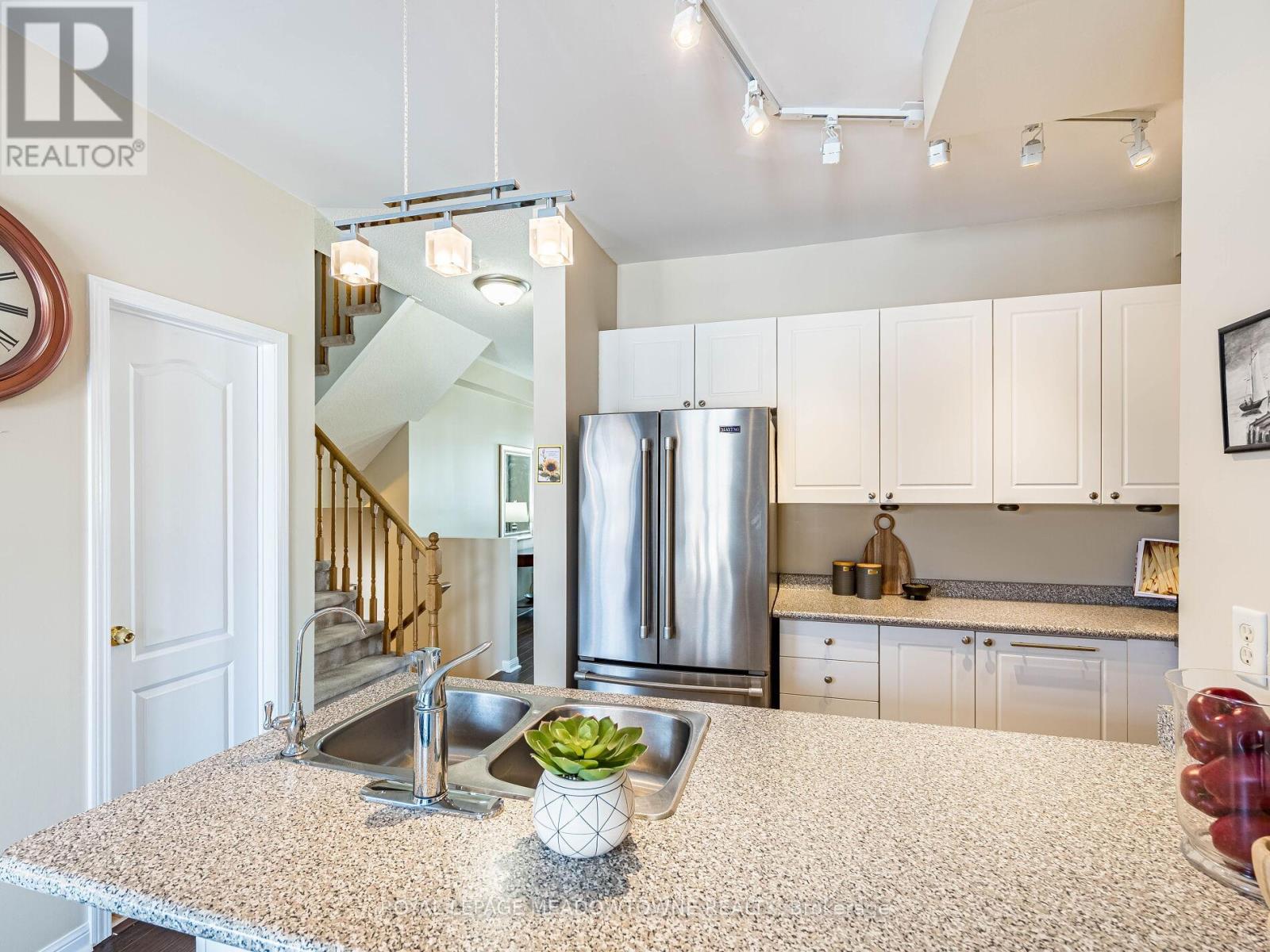 Welcome to this beautifully maintained 3-bedroom townhome in the heart of Georgetown a rare opportunity featuring a 2-car garage, an exceptional find in townhome living. Thoughtfully upgraded and meticulously cared for, this home blends comfort, functionality, and modern convenience.Step inside to soaring 9-ft ceilings, durable laminate flooring, and a bright, open-concept main level designed for both everyday living and effortless entertaining. The kitchen truly stands out with soft-close cabinetry, smart storage solutions, stainless steel appliances, a premium JennAir induction/convection oven, Miele dishwasher, and a gas line ready for your BBQ on the walkout deck. New patio doors and high-efficiency windows including several Magic Windows with triple-pane glass and blackout shades fill the home with natural light while creating a quiet, energy-efficient retreat.Upstairs, you'll find 3 spacious bedrooms. The primary suite offers a large closet and private 4-piece ensuite complete with a relaxing soaker tub. A semi-ensuite main bath with a tiled shower serves the additional bedrooms, providing comfort and convenience for family or guests.The versatile lower level features large windows, a finished storage room, laundry/utility area, and direct access to both the backyard and garage perfect for organized, functional living. Additional highlights include a brand-new A/C, furnace (2022), owned tankless water heater (no rental fees), Culligan water purification system, water softener, central vacuum, Ecobee thermostat, 220V garage outlet, belt-drive opener, and a fully fenced backyard.Located just minutes from vibrant downtown shops, restaurants, parks, trails, schools, and the GO station, this home offers the perfect balance of small-town charm and commuter convenience.With rare garage space, extensive upgrades, and an unbeatable location, this is a standout opportunity you won't want to miss, book your private showing today and experience it for yourself. (42224841)