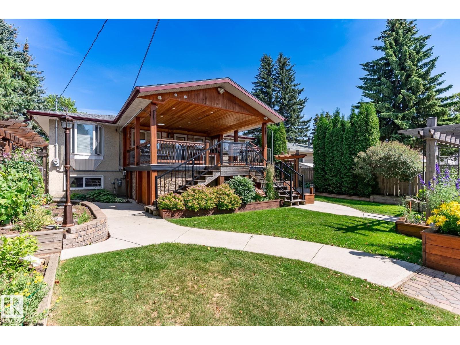 EXCEPTIONAL BI-LEVEL on 50 X 148 lot! This unique home in desirable Canora with SEPARATE ENTRANCE is immaculate! Impeccably maintained, the home offers 4 bedrooms, 2 baths, triple pane windows, 2 furnaces, newer HWT, hardwood flooring, updated railings, sewer line (2024), roof, concrete & SOLAR PANELS—energy savings included. The bright living room with bay window flows into a formal dining area. Enjoy a spacious country kitchen with quality stainless steel appliances, ample counterspace, and a large primary suite. The developed basement feels open and airy with high ceilings and large windows, plus a family room, 2 more bedrooms, full bath, and laundry. Step outside to a beautifully landscaped, private backyard oasis featuring garden beds, mature shrubs, apple tree, fruit bushes, paving stones, and a huge covered deck with storage underneath. Thoughtfully equipped with extra electrical outlets, 4 hose bibs & detached garage with metal roof. Prime location close to parks, schools, and transit! IMPRESSIVE! (33877159)