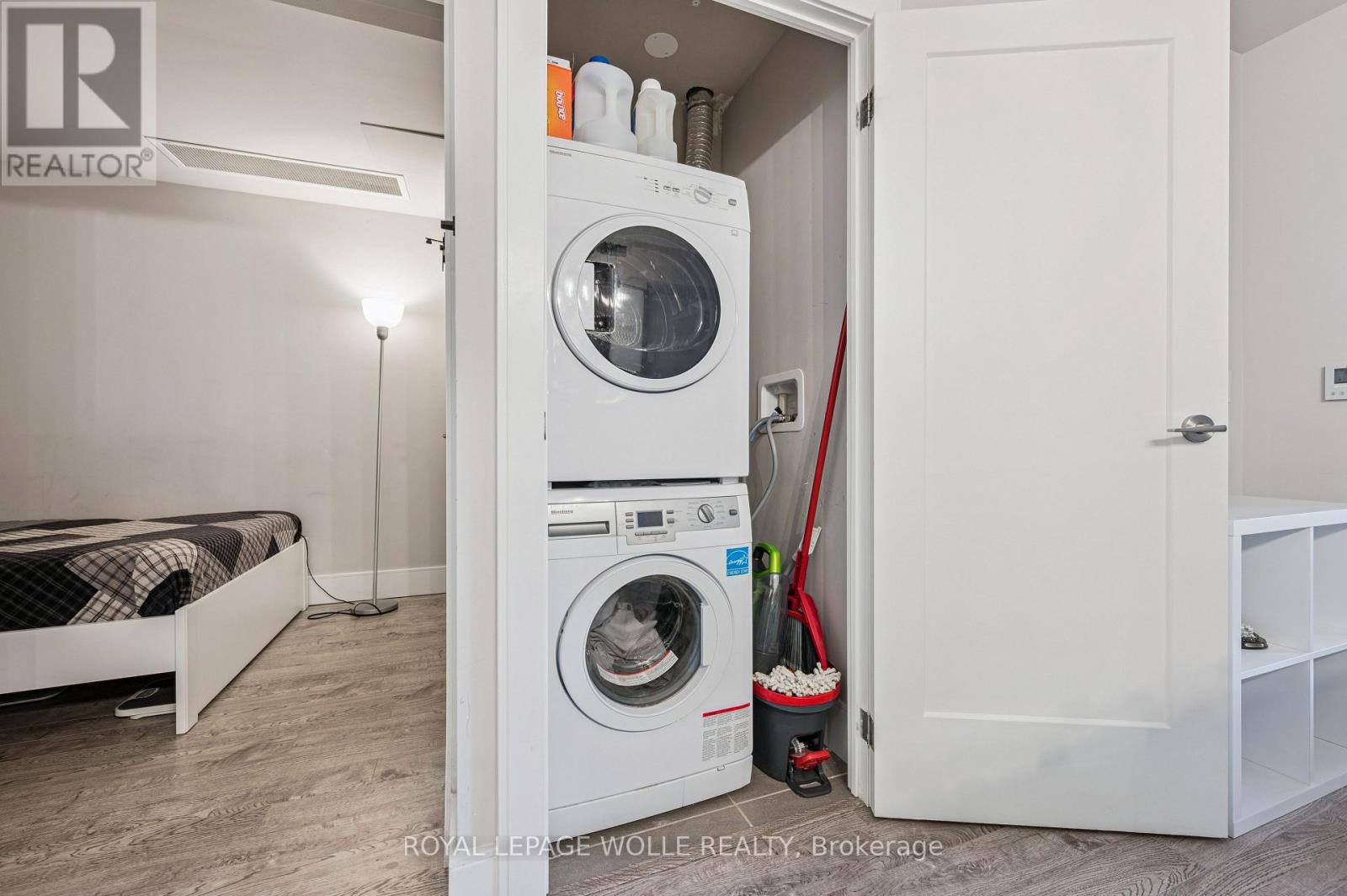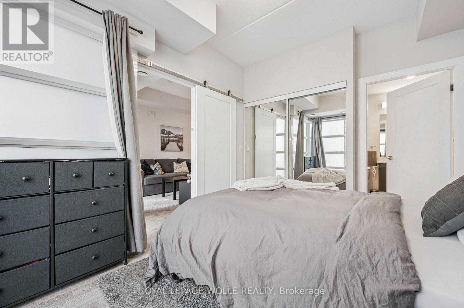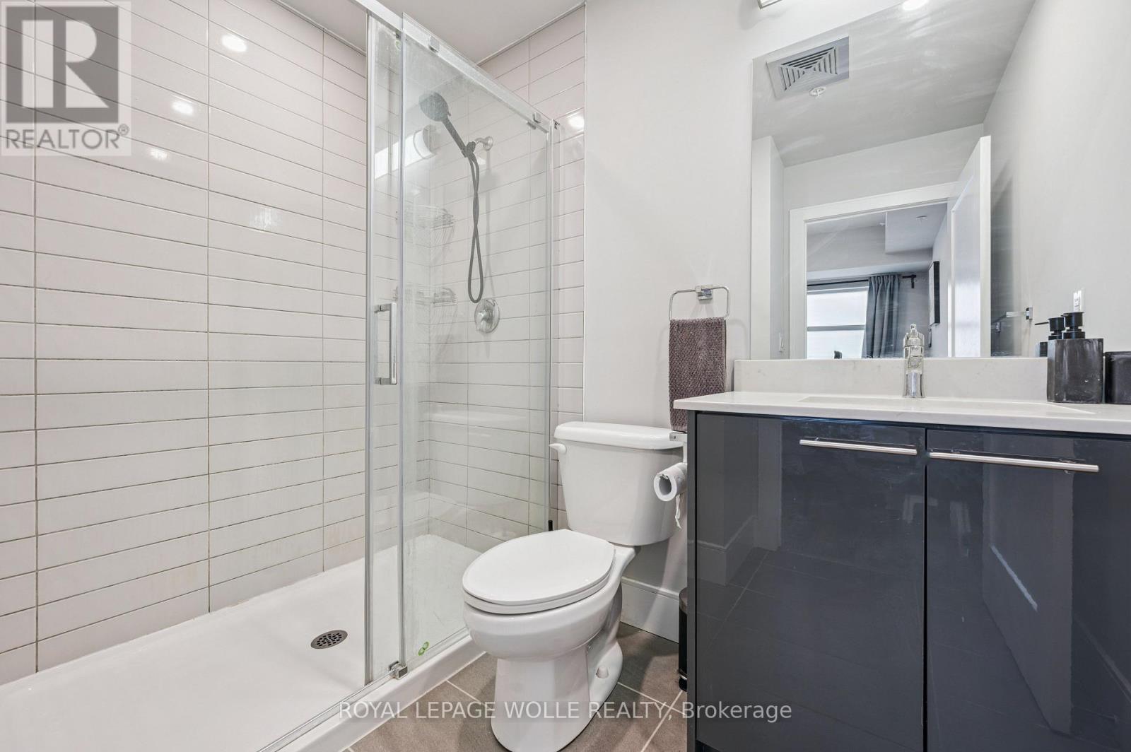 Welcome to 15 Prince Albert Blvd Unit 104-a stylish and modern 1 Bedroom + Den condo offering EXCEPTIONAL COMFORT, AND CONVENIENCE. Located on the main floor, this unit provides easy access along with an open concept, CONTEMPORARY LIVING SPACE you'll love coming home to. Inside, enjoy 2 full bathrooms, including a 3-piece ensuite with a sleek glass shower enclosure, plus a separate 4-piece second bathroom-PERFECT FOR GUESTS OR A ROOMMATE. The spacious den features a barn door enclosure and a full closet, making it ideal as an office or guest space. The MODERN KITCHEN IS DESIGNED TO IMPRESS, featuring white cabinetry, a grey tile backsplash, quartz countertops, and stainless appliances. In-suite laundry adds everyday convenience. ENJOY YOUR OWN PRIVATE PATIO, PERFECT FOR RELAXING. The building offers a FITNESS CENTRE AND PARTY ROOM RIGHT OUTSIDE YOUR DOOR on the main floor. With GEOTHERMAL HEATING AND COOLING, each unit is separately metered for ENERGY-EFFICIENT, COST-EFFECTIVE LIVING. 1 underground parking spot and a storage locker are included. Enjoy a PRIME LOCATION steps from parks, the Google office, UW's School of Pharmacy, and the lively amenities of Downtown Kitchener and a short commute to Uptown Waterloo along with the VIA Rail train station nearby for easy commuting. Move-in ready and beautifully appointed, Unit 104 is the perfect blend of style, function, and location. Don't miss your chance to make it yours! (42224831)