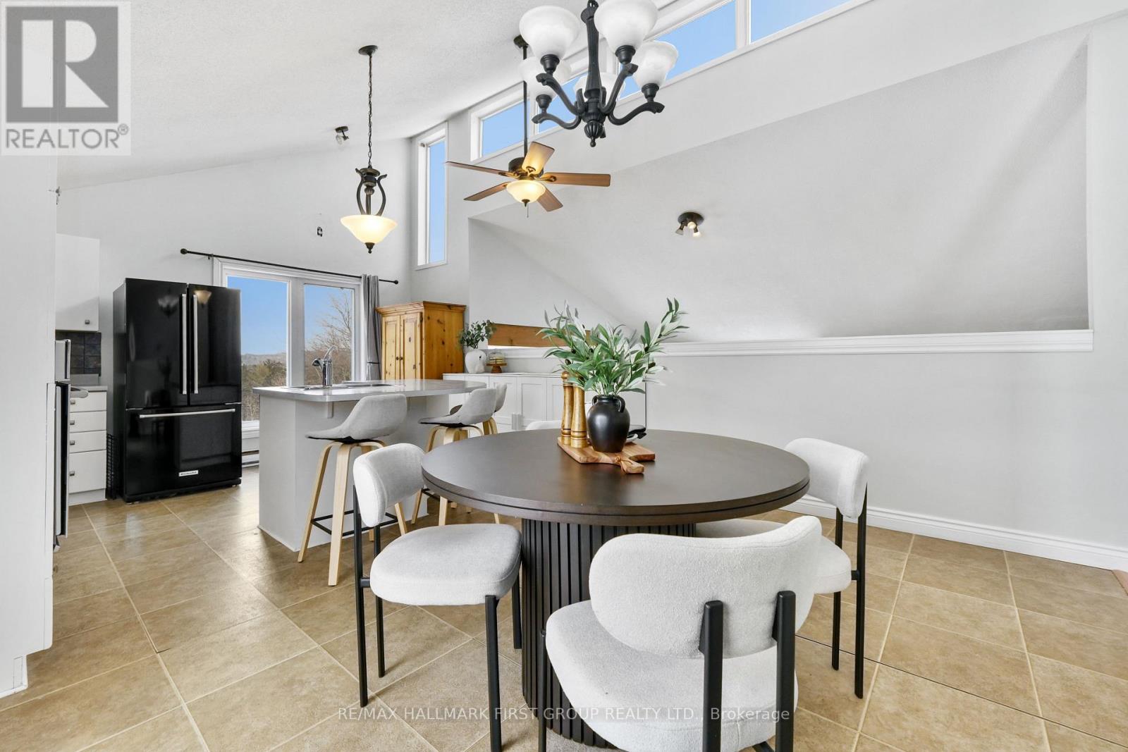 Set on just over two acres, only a short distance from Rice Lake, this spacious family home offers a distinctive layout and breathtaking panoramic views. Designed to embrace light, space, and the surrounding landscape, it delivers the perfect balance of comfort and country charm. The main living area features an open-concept kitchen and dining room highlighted by vaulted ceilings and upper windows that flood the space with natural light. Walkouts lead to an expansive deck that extends the living area outdoors, creating an ideal setting for entertaining and al fresco dining. The kitchen is well-appointed with ample cupboard space, a large island with a breakfast bar, matching appliances, and a wall-mounted oven. A few steps down brings you to the sunken living room, where high ceilings and oversized windows showcase the scenery and fill the room with light. A cozy window reading nook with exposed wood beam adds warmth and character. The main level also offers a generous primary suite with vaulted ceiling and walkout to a private deck. Two additional bedrooms, one featuring a charming loft space, and a full bathroom with walk-in shower enclosure and separate tub. The lower level includes a spacious family and games room with walkouts, a stove-style fireplace, guest bathroom, and laundry area, making it ideal for gatherings or extended family stays. Outside, enjoy a spacious back deck and expansive green space on a beautifully tree-lined property. With close proximity to Rice Lake and the Northumberland Forest trails, this home delivers the peaceful country escape you've been searching for. (42224972)