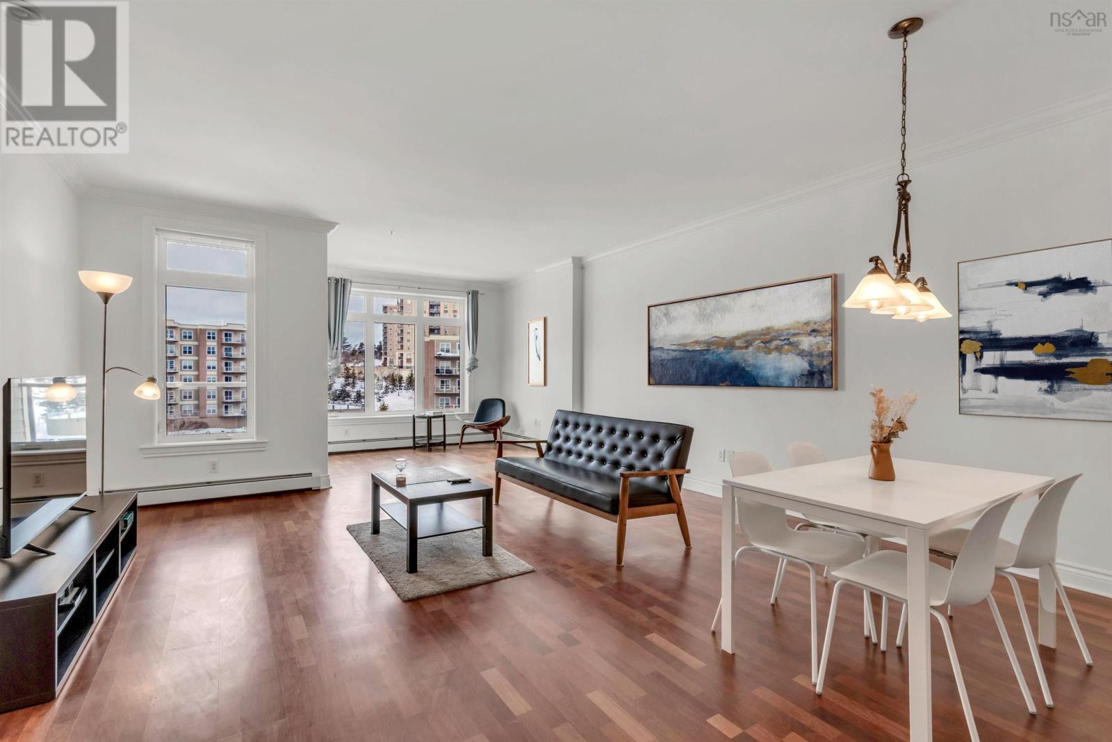 Come discover this spacious, freshly painted, top-floor condo unit located in a convenient and accessible location. Major bus routes connecting you to the rest of HRM are just steps away from the building. Situated between the Bedford Highway and the 102, the property provides easy access to a variety of shops, services, and transportation options. Step inside unit 601 and notice immediately that not all condos feel like shoeboxes - the open-concept kitchen, dining, and living area makes the space feel large and welcoming perfect for both relaxing and entertaining. Large windows provide an abundance of natural light throughout. The unit features two large bedrooms and two full bathrooms, in-suite laundry, a private balcony and solid soundproofing between units. The primary bedroom has a walk-through closet leading to your ensuite featuring double sinks and a large walk-in shower. One assigned underground parking spot and a storage locker are included (although the extra-large in-suite laundry room also provides great storage). This well-managed building features a party room, a main-floor gym, a library, and heated underground parking. For added convenience, the condo fee includes heat, water & hot water, snow removal, and common elements maintenance. Whether youre looking for an owner-occupied home, an investment rental, or a roommate setup, this big, bright, and freshly painted unit is a must-see. Come and experience how good condo living can feel. (232005692)
