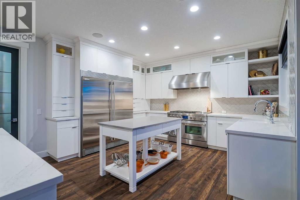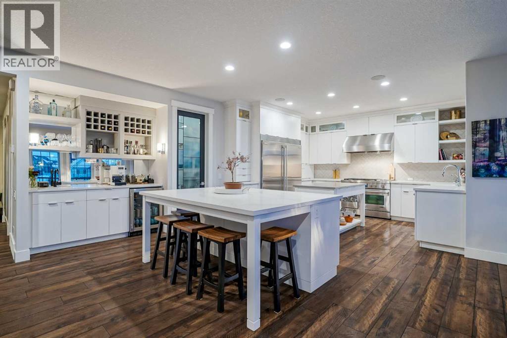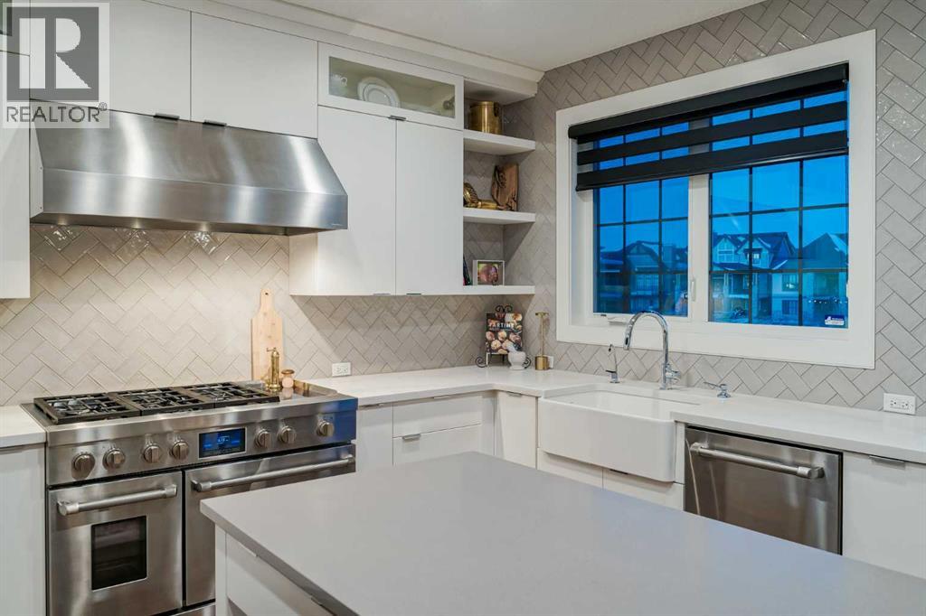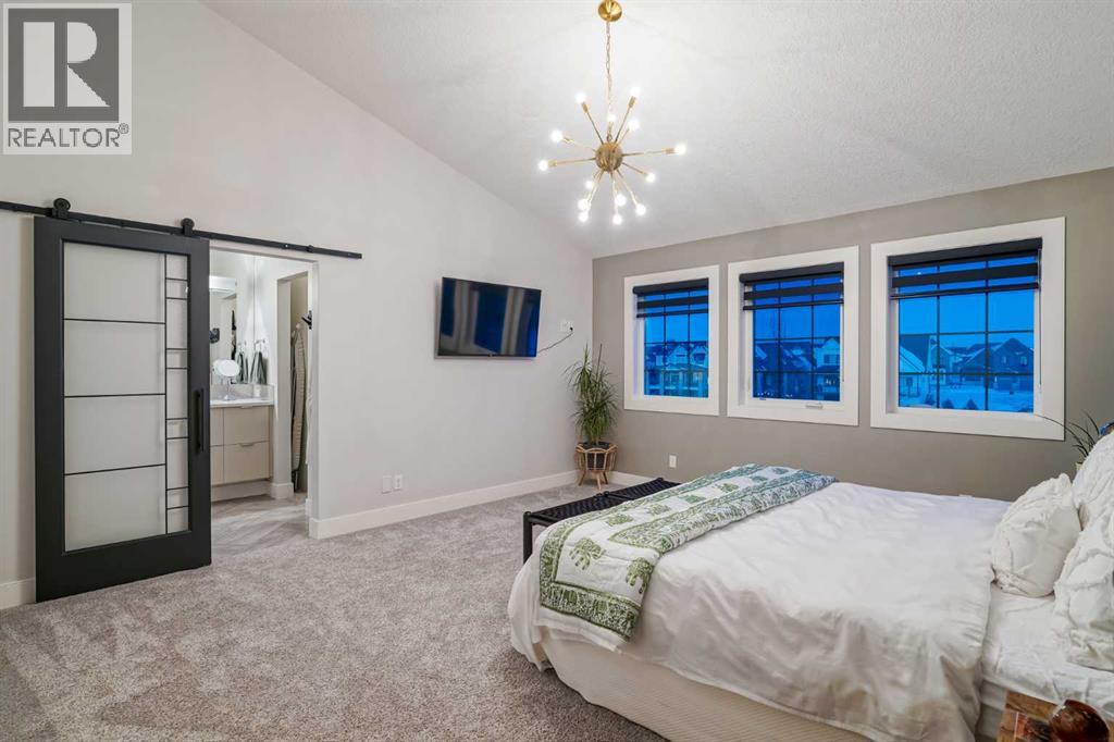 **OPEN HOUSE SUN MAR 1st 12PM - 4PM** Welcome to this exceptional McKee-built custom home in the prestigious community of Coopers Crossing, where refined craftsmanship meets unobstructed pond-side living. Offering over 3,700 sqft of professionally developed living space, this fully finished 4-bedroom, 3.5-bathroom walk-out home delivers an elevated lifestyle defined by architectural detail and premium upgrades. From the moment you arrive, the curb appeal is undeniable - an exposed aggregate driveway, covered front porch with cedar soffit detailing, and a fully landscaped lot create a strong first impression. The 708 sqft triple tandem heated garage is both functional and impressive, complete with overhead storage and room for vehicles, toys, or workshop space. Inside, a dramatic open-rise staircase anchors the main level, while engineered hardwood flooring flows throughout. The great room is designed for both everyday living and upscale entertaining, featuring a custom fireplace surround with built-ins and expansive windows framing tranquil pond views. The chef-inspired kitchen is a true showpiece. Thoughtfully upgraded with crisp white cabinetry, double islands, and premium stainless steel appliances, it includes a 48” Jenn-Air dual-fuel gas range, Vent-A-Hood range hood, and Electrolux side-by-side refrigerator/freezer. An exquisite under mount sink and refined finishes complete this elevated culinary space. From this level, step outside to your private backyard oasis: a full-width 33’4” x 9’8” composite deck with stairs leading to professionally designed stone scaping, low-maintenance turf, and a dedicated firepit and patio area (15’4” x 10’4”). Upstairs, vaulted ceilings and two skylights flood the bonus room, primary suite, ensuite, and laundry room with natural light. The primary retreat offers serene water views and a spa-inspired ensuite designed for relaxation. Three additional bedrooms complete the upper level, including one with a charming Juliet balcony. The fully developed walk-out basement extends the living space seamlessly outdoors and features a wet bar, spacious recreation area, hobby room, and additional storage. Morning coffees overlooking the water in summer. Skating on the pond in winter. This is a home designed to be experienced in every season. Additional highlights include upper-level exterior pot lights, custom built-ins throughout, security camera system and panel, pre-wired in-ceiling speakers with two Sonos bridges, dual furnaces plus A/C. Rarely do homes combine this level of finish, functionality, and uninterrupted pond views in one of Airdrie’s most sought-after communities. This is luxury living - without compromise. (31690000)
