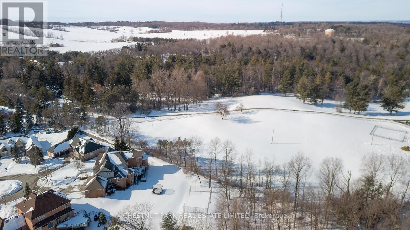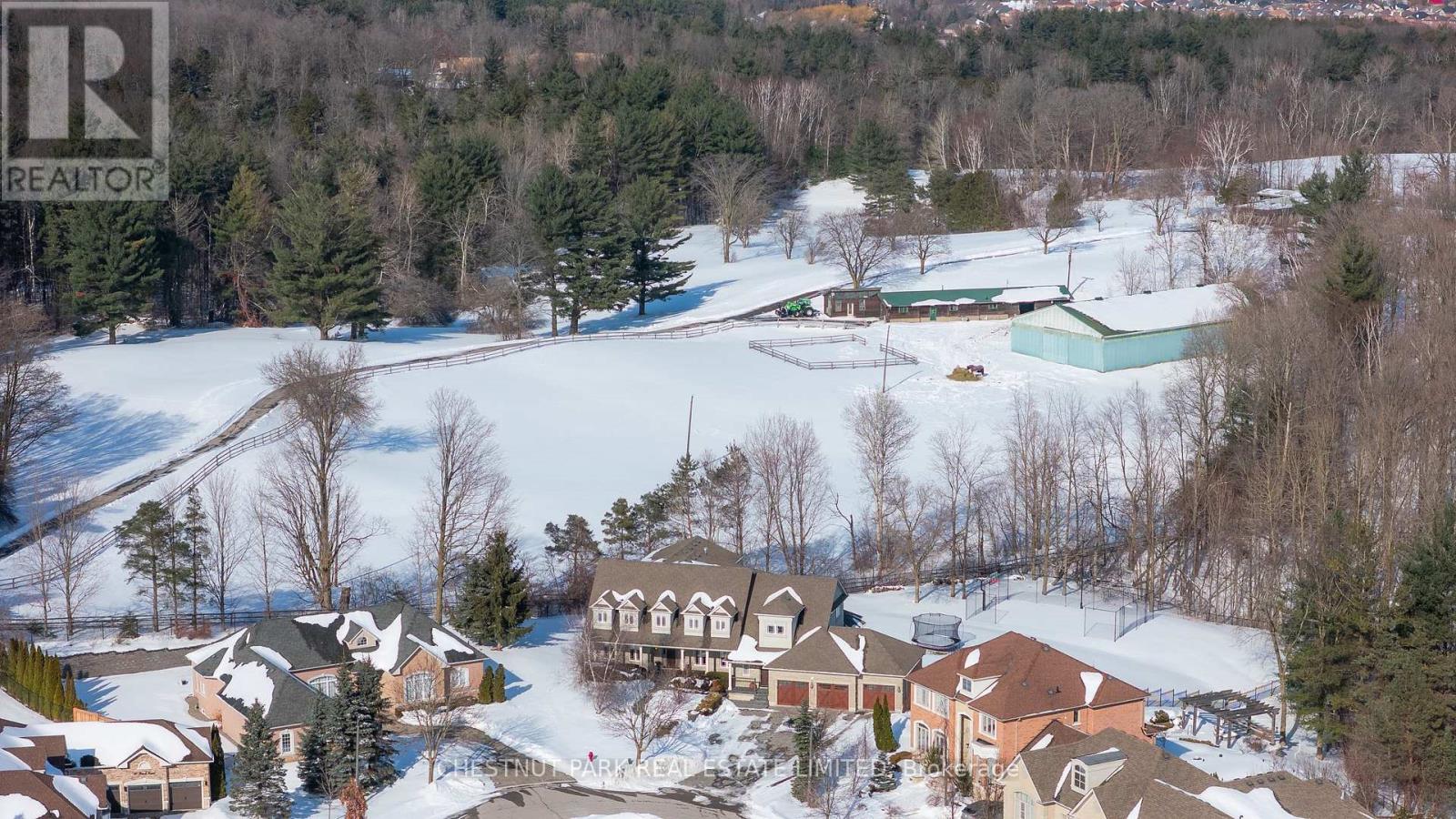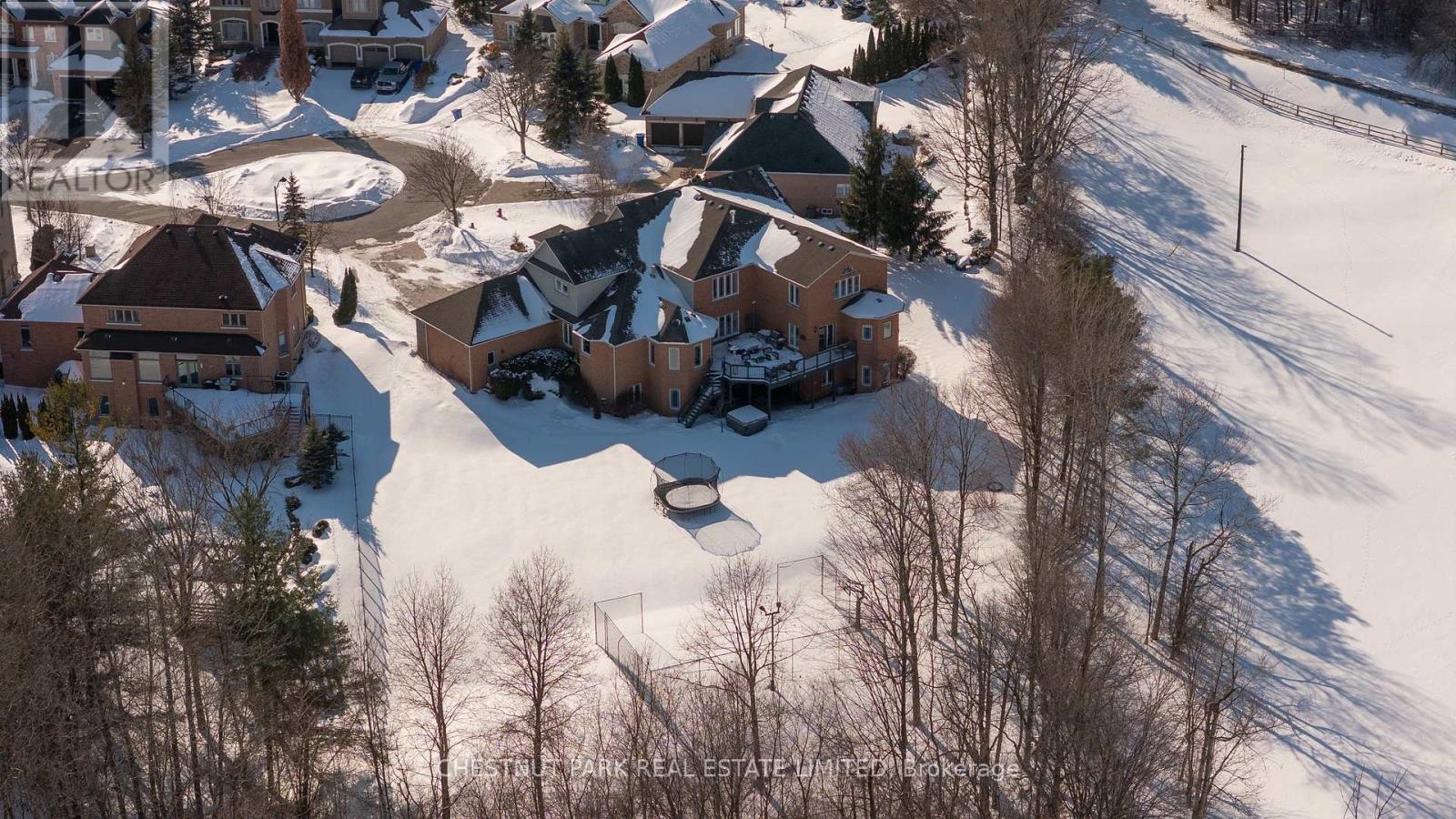 Located at the end of a quiet cul-de-sac in Brentwood Estates, this exceptional property sits on one of the largest lots in the neighbourhood at 0.82 acres, and offers a unique town and country setting abutting a country estate to the north and ravine to the east. Offering over 8,400 sq ft of finished living space, this 5+2 bedroom, 6-bathroom home is perfect for a large or multi-generational family. The main floor is designed for easy living and entertaining, featuring 9ft ceilings and spacious, light-filled principal rooms. The chef's kitchen includes a large center island, natural stone countertops, high-end appliances, walk-in pantry and a bright eat-in area with views of the grounds. The great room, with its double-height ceilings and a feature fireplace, is complemented by nearby formal dining room and a large private office. The main floor primary suite offers a peaceful retreat with double closets, a spa-inspired five-piece ensuite bath, and sitting area with direct access to the deck which overlooks the yard and often has views of the horses next door. Upstairs, four spacious bedrooms and two baths provide ample space for family and guests, while the walk-out lower level adds flexibility with two additional bedrooms, a full bath, recreation and theatre areas, and a full kitchen with commercial-grade appliances.The backyard offers a private, park-like setting with plenty of green space and a multi-use sport court suitable for pickleball, basketball, tennis and more. This property is perfectly situated for commuters, with easy access to Highways 400 and 404, Aurora and King City GO stations, and close to excellent public and independent schools, including St. Andrew's College, St. Anne's School, The Country Day School and Villanova College. A truly rare offering in the heart of Aurora. (42225304)