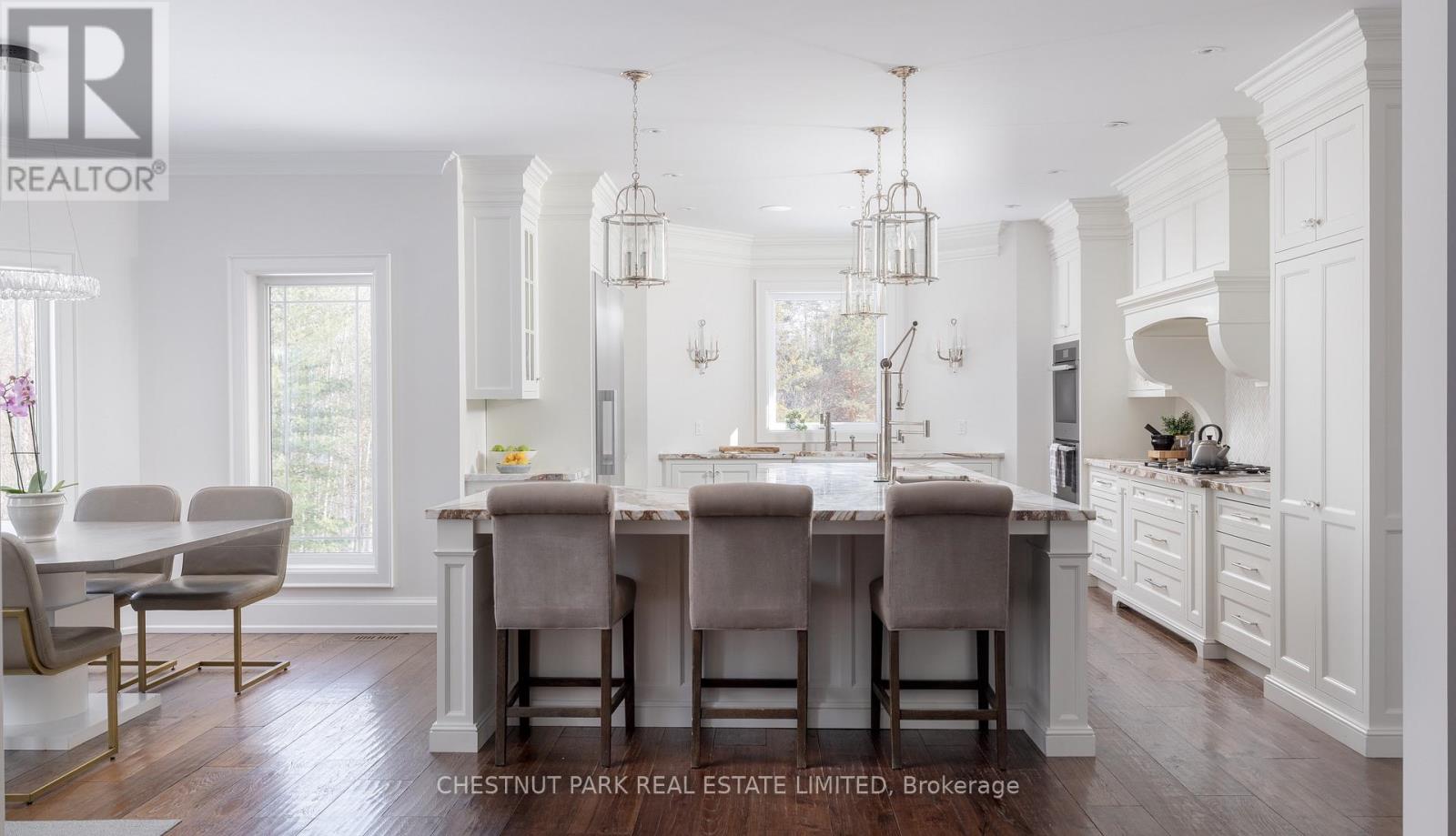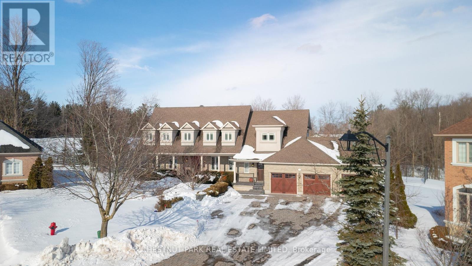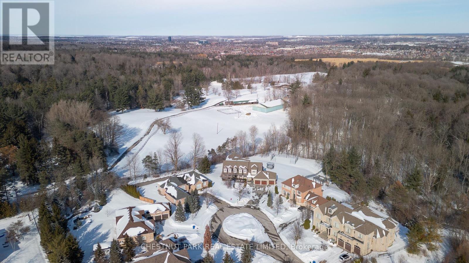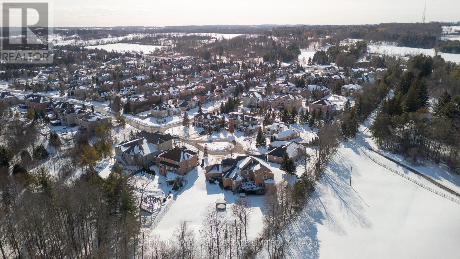 Located at the end of a quiet cul-de-sac in Brentwood Estates, this exceptional property sits on one of the largest lots in the neighbourhood at 0.82 acres, and offers a unique town and country setting abutting a country estate to the north and ravine to the east. Offering over 8,400 sq ft of finished living space, this 5+2 bedroom, 6-bathroom home is perfect for a large or multi-generational family. The main floor is designed for easy living and entertaining, featuring 9ft ceilings and spacious, light-filled principal rooms. The chef's kitchen includes a large center island, natural stone countertops, high-end appliances, walk-in pantry and a bright eat-in area with views of the grounds. The great room, with its double-height ceilings and a feature fireplace, is complemented by nearby formal dining room and a large private office. The main floor primary suite offers a peaceful retreat with double closets, a spa-inspired five-piece ensuite bath, and sitting area with direct access to the deck which overlooks the yard and often has views of the horses next door. Upstairs, four spacious bedrooms and two baths provide ample space for family and guests, while the walk-out lower level adds flexibility with two additional bedrooms, a full bath, recreation and theatre areas, and a full kitchen with commercial-grade appliances.The backyard offers a private, park-like setting with plenty of green space and a multi-use sport court suitable for pickleball, basketball, tennis and more. This property is perfectly situated for commuters, with easy access to Highways 400 and 404, Aurora and King City GO stations, and close to excellent public and independent schools, including St. Andrew's College, St. Anne's School, The Country Day School and Villanova College. A truly rare offering in the heart of Aurora. (42225304)