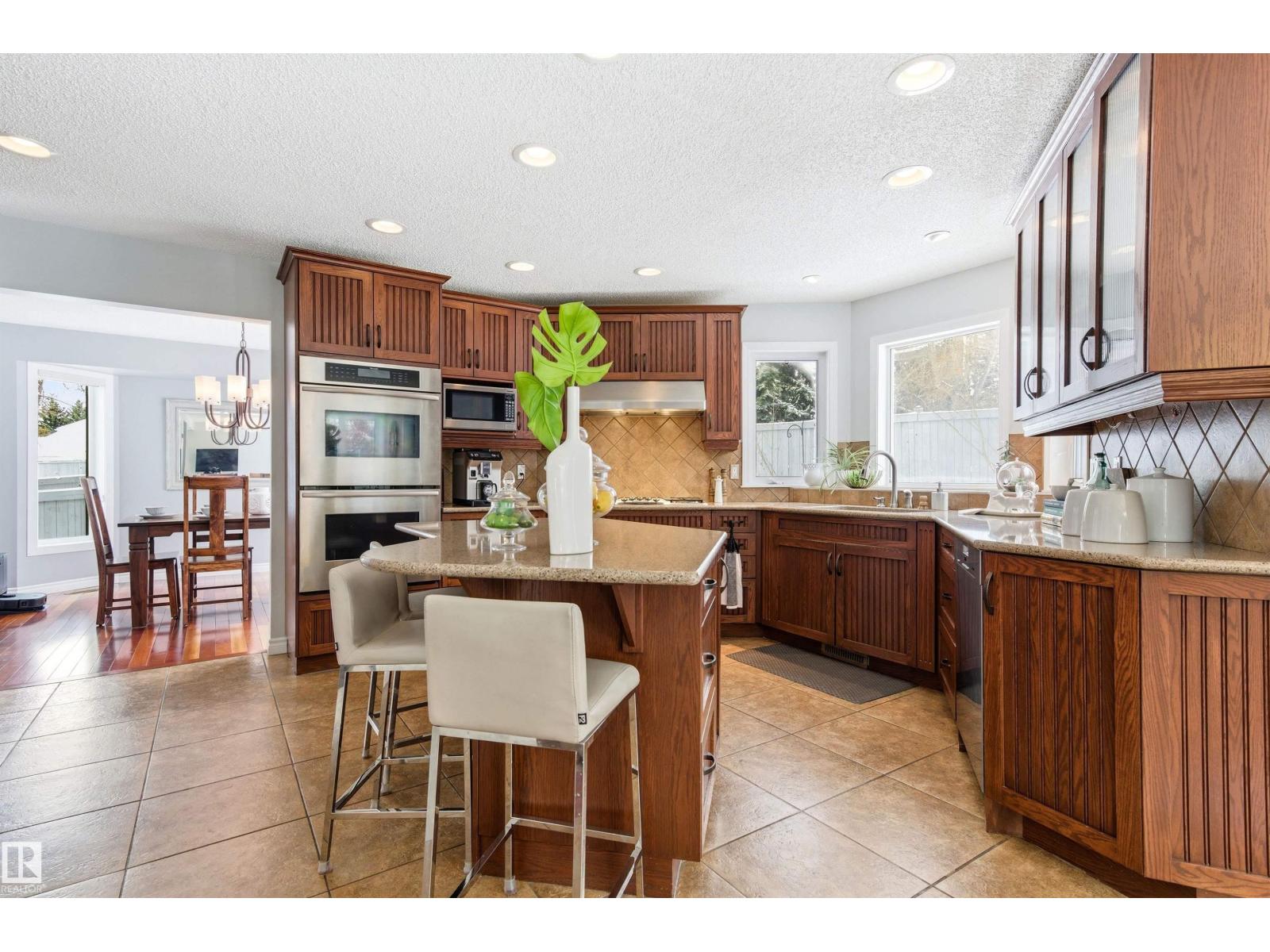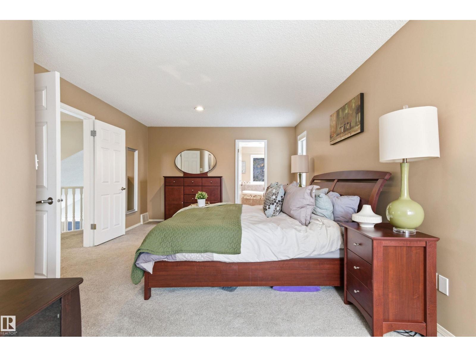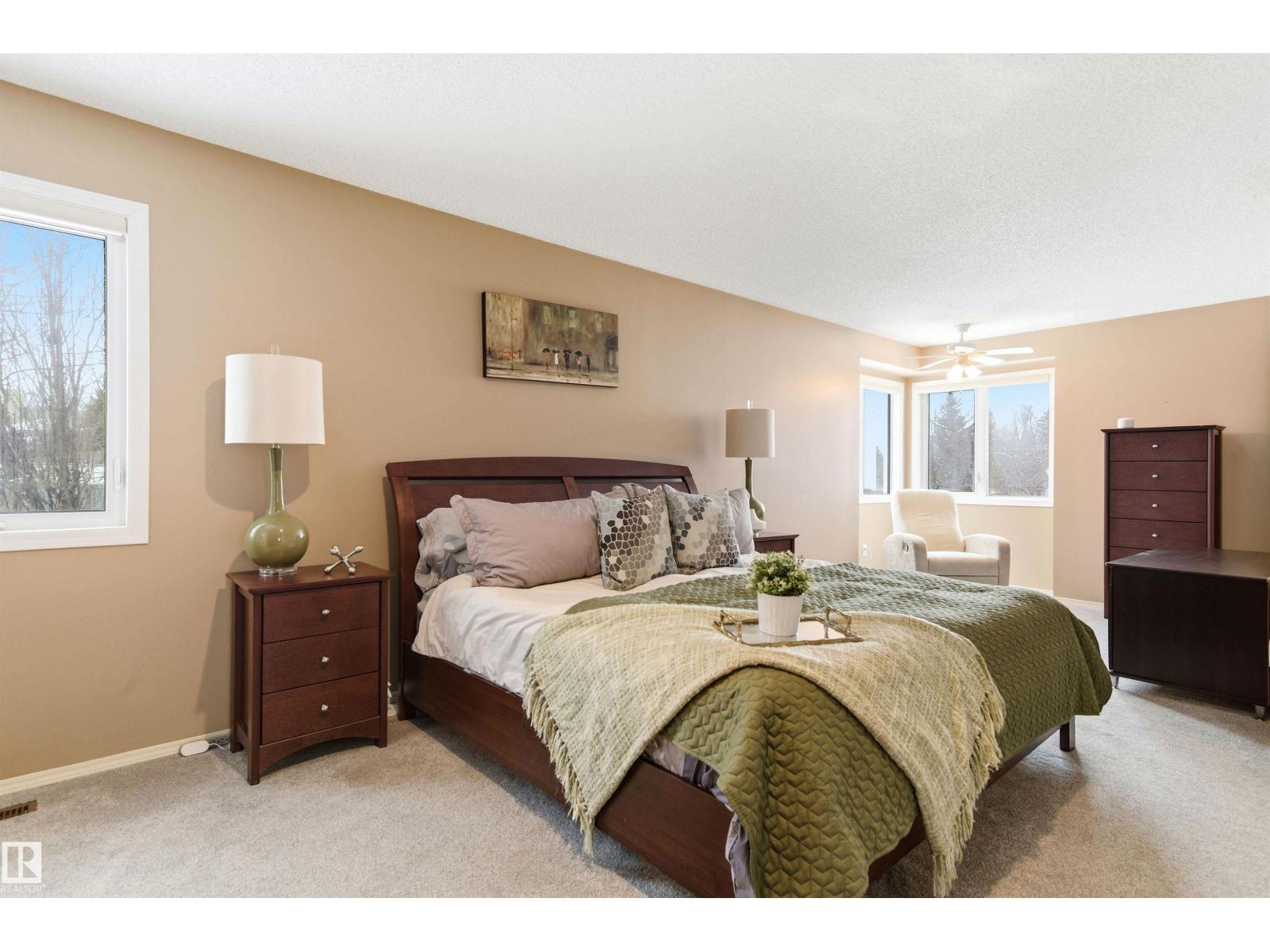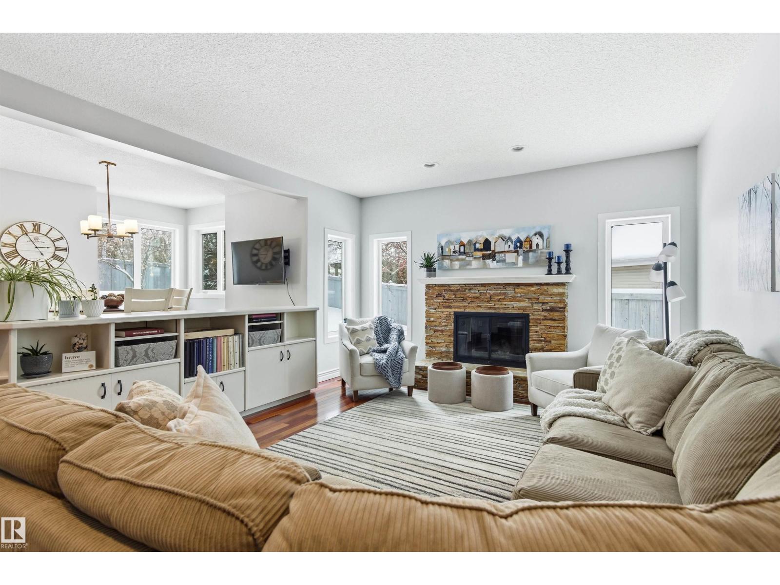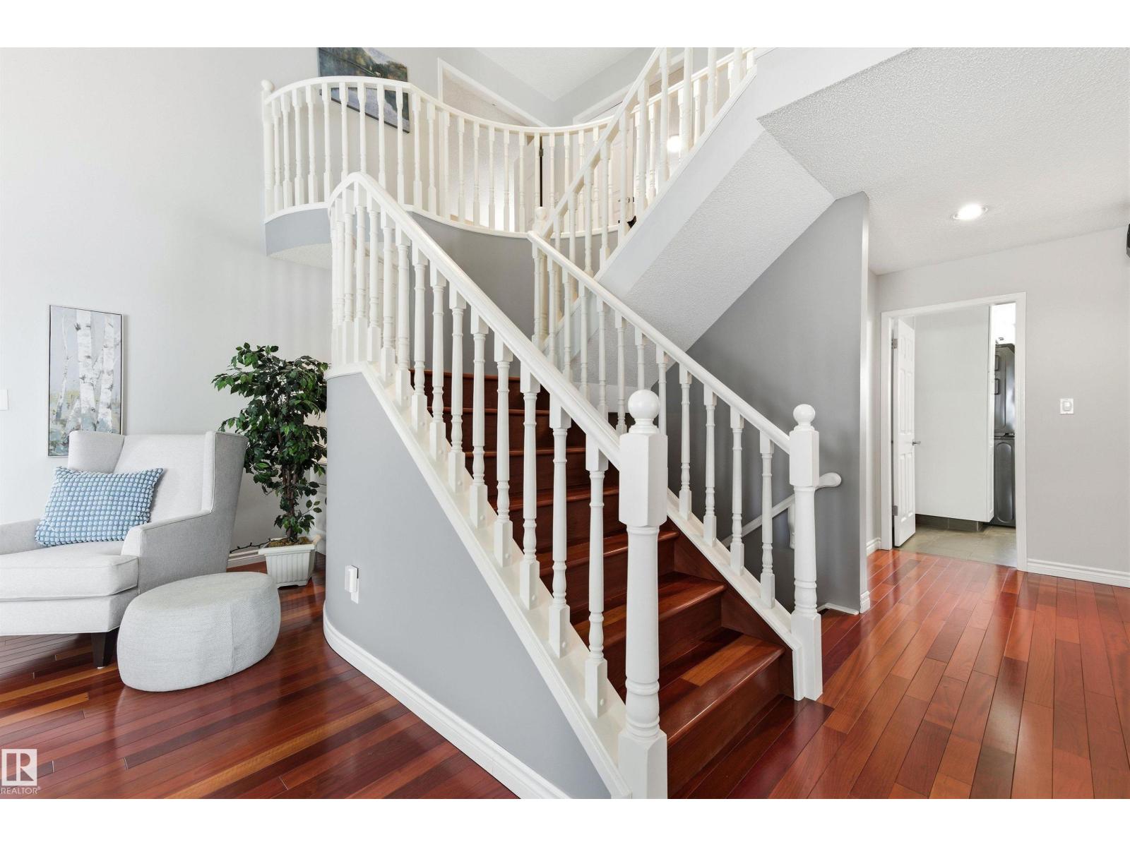 Tucked into a quiet cul-de-sac, this impressive 2-storey offers over 3,000 sq ft above grade, fully finished basement and PRIVATE SPACIOUS SUNNY WEST YARD. FANTASTIC FAMILY FLOORPLAN - The main floor features a grand curved staircase, spacious living and family rooms, main floor office, laundry, and a bright kitchen with breakfast nook overlooking the yard. Upstairs offers a large primary retreat with spa-inspired ensuite and walk-in closet, plus generous secondary bedrooms and full bath. The finished basement adds more bedrooms, recreation space, storage and a home gym. Many upgrades throughout: 2 Furnaces (2023) AC (2023) Windows (2020-2021) Rubber Roof (2017) Enjoy the OVERSIZED (25’3x23’8) double attached heated garage (with drain) and the unbeatable Riverbend location close to top schools, ravine trails, shopping, transit and quick access to Whitemud & Anthony Henday. A rare opportunity in one of Edmonton’s most desirable family communities! (33877346)