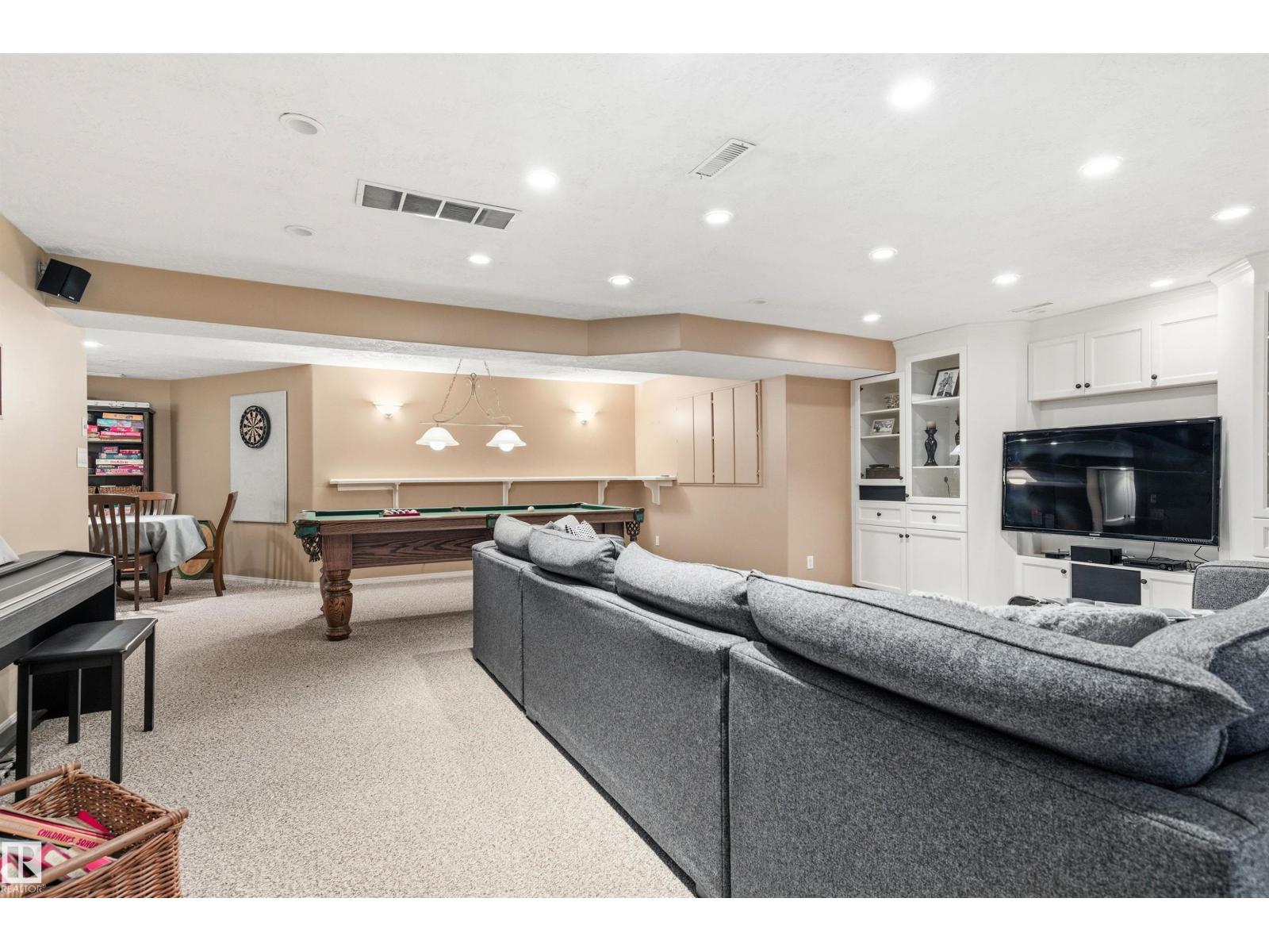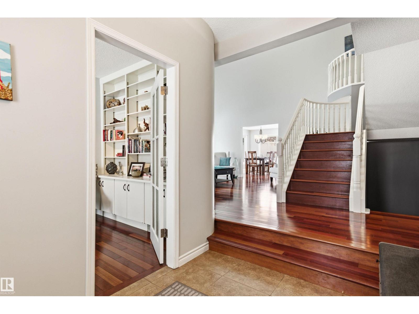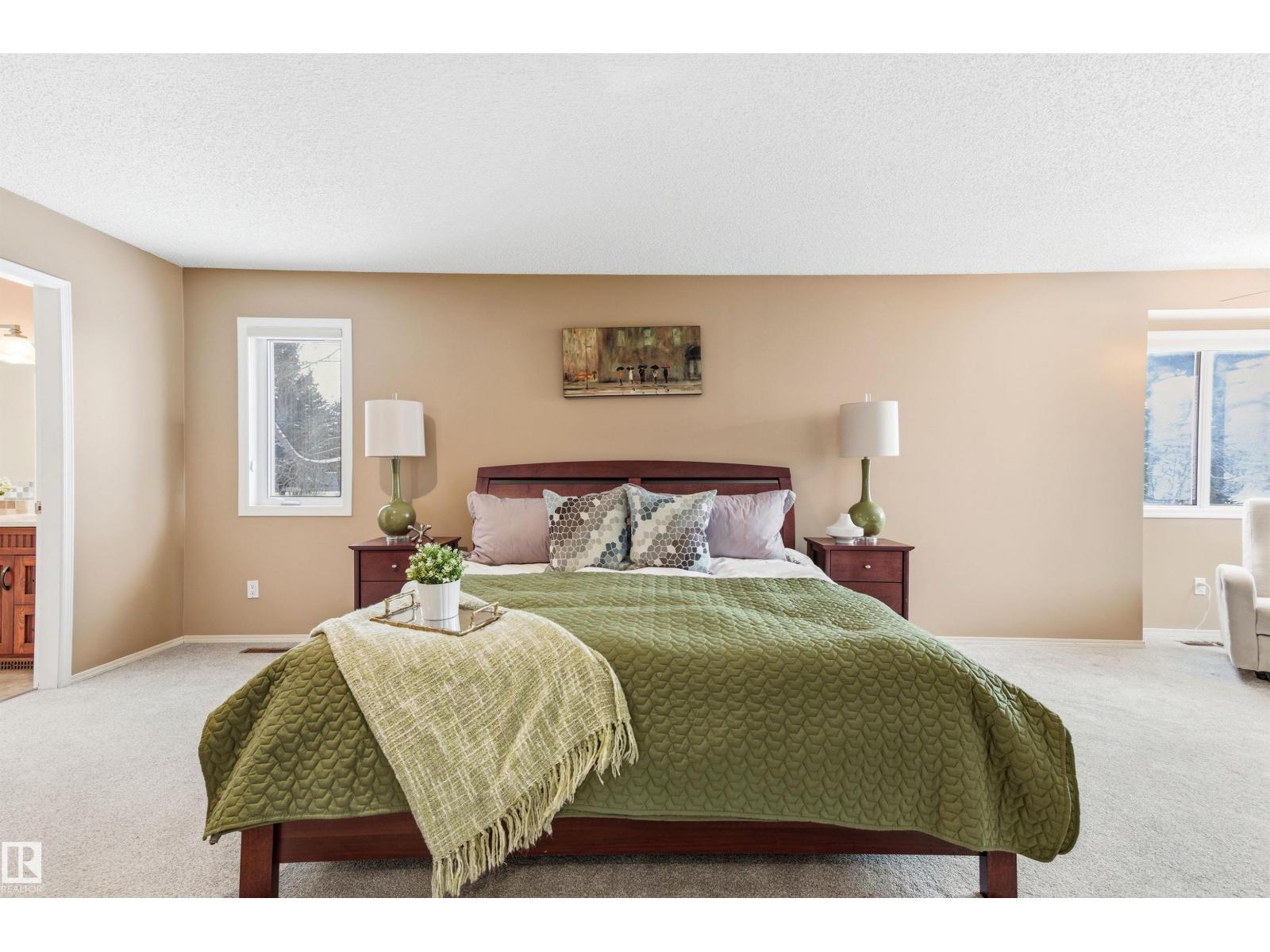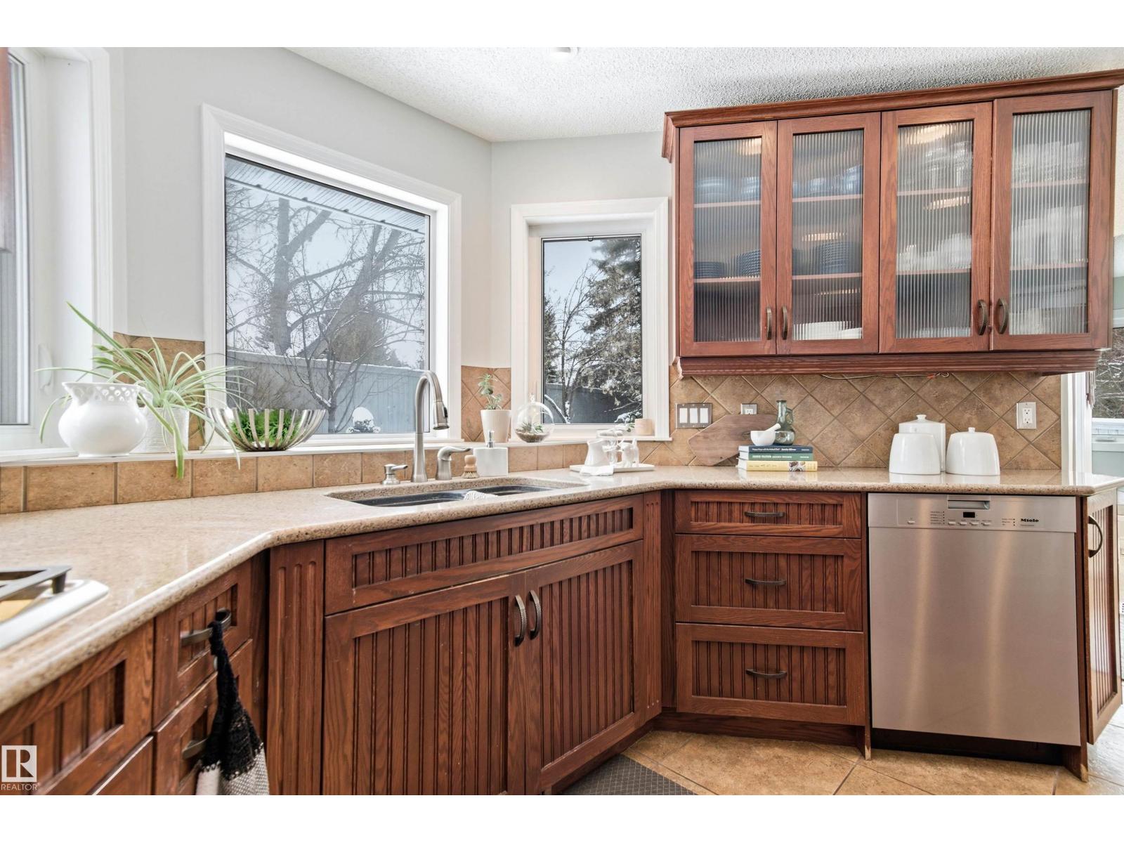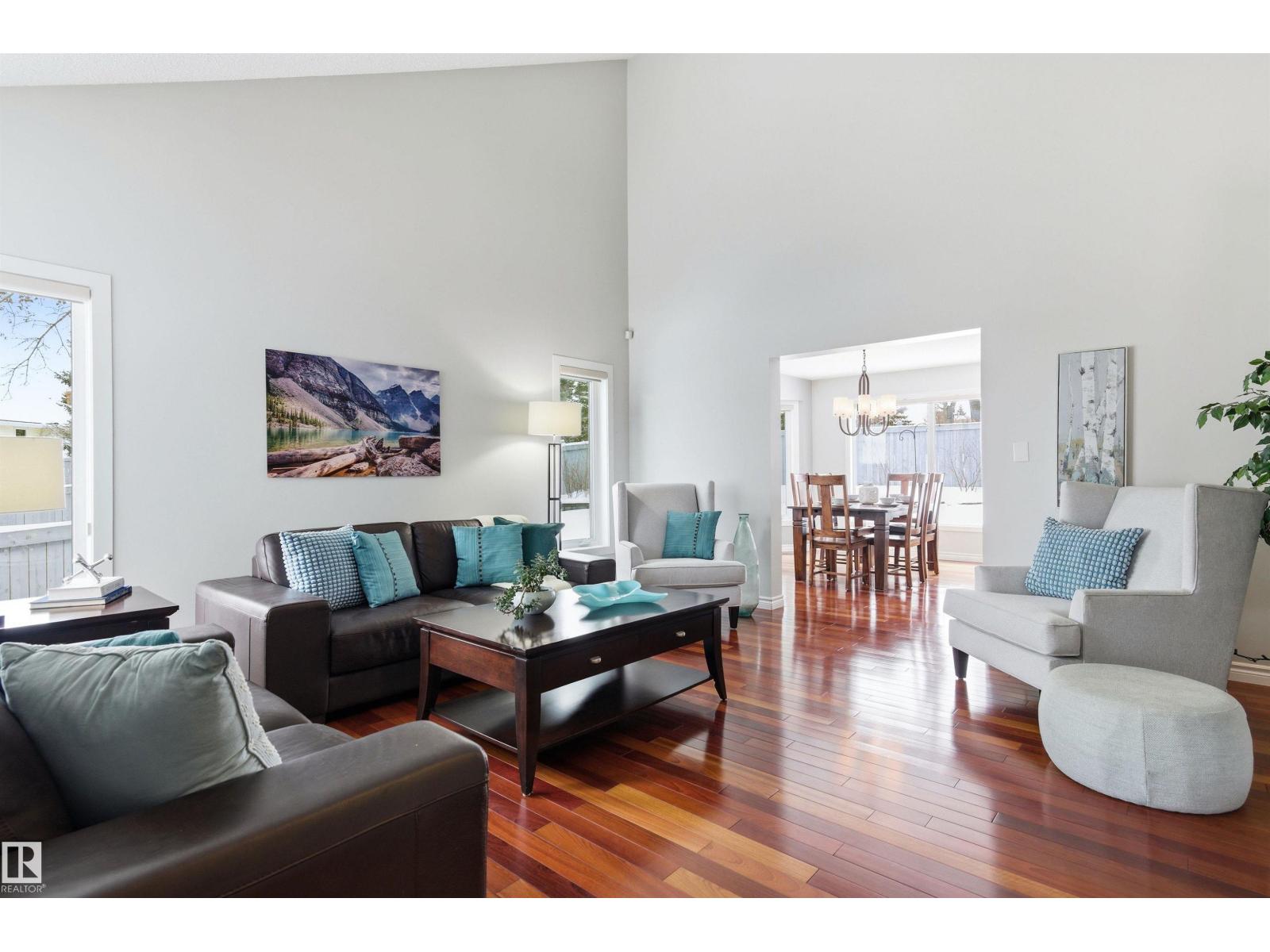 Tucked into a quiet cul-de-sac, this impressive 2-storey offers over 3,000 sq ft above grade, fully finished basement and PRIVATE SPACIOUS SUNNY WEST YARD. FANTASTIC FAMILY FLOORPLAN - The main floor features a grand curved staircase, spacious living and family rooms, main floor office, laundry, and a bright kitchen with breakfast nook overlooking the yard. Upstairs offers a large primary retreat with spa-inspired ensuite and walk-in closet, plus generous secondary bedrooms and full bath. The finished basement adds more bedrooms, recreation space, storage and a home gym. Many upgrades throughout: 2 Furnaces (2023) AC (2023) Windows (2020-2021) Rubber Roof (2017) Enjoy the OVERSIZED (25’3x23’8) double attached heated garage (with drain) and the unbeatable Riverbend location close to top schools, ravine trails, shopping, transit and quick access to Whitemud & Anthony Henday. A rare opportunity in one of Edmonton’s most desirable family communities! (33877346)