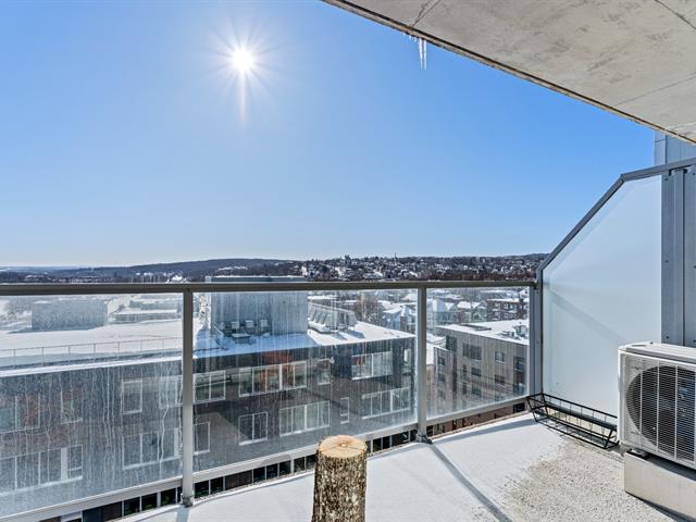 This sophisticated 3½ apartment, located on the 9th floor, offers a pleasant open-concept living space with an elegantly designed kitchen, a bathroom, and a large bedroom with a walk-in closet. Thanks to its large windows, the apartment is filled with natural light. Nine-foot ceilings and a beautiful French balcony complement the apartment's appeal. Discover Espace Centro in Sherbrooke's Well Sud neighborhood. Accessible, close to everything, and right in the heart of downtown Sherbrooke, you'll be charmed! (49528230)