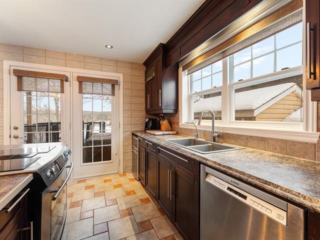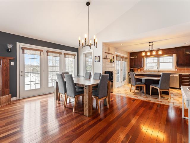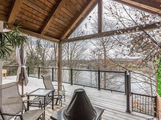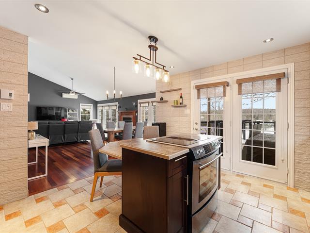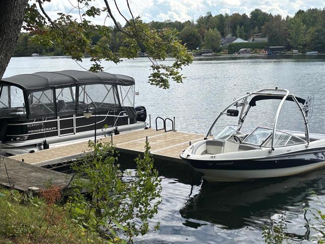 LAKE MAGOG | 75' on the navigable and swimmable Magog River, right to the lake. This impeccable property, meticulously maintained over the years, offers 4 bedrooms and 2 bathrooms. The main floor living areas and large patio are bathed in natural light and offer magnificent water views, creating a peaceful and inspiring living environment. The walk-out basement features a spacious family room with direct access to the hot tub. Enjoy the warmer months to the fullest with the solarium, swim spa, and private dock that can accommodate two boats. A true haven of peace combining comfort, light, and privileged access to the lake. (56715005)