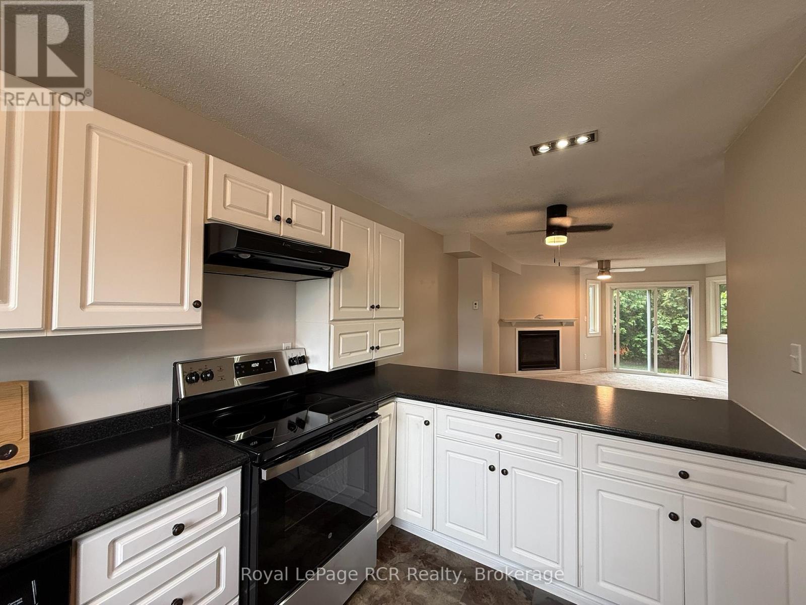 3 bedroom condo in a quiet residential neighbourhood in Collingwood. Spacious entry with closet, a well-designed kitchen with new appliances and sink (2025), white cabinetry and black countertops. The living room features a gas fireplace (serviced 2025) that is capable of heating the home, although there are also updated electric baseboard heaters. Walkout from the living room to a small yard with privacy screens. Upstairs you will find a 4 piece bath and 3 bedrooms, including the master with a 4 piece ensuite and walk-in closet. The lower level is also finished with a family room, den or office with a closet, the laundry room and the storage/mechanical room with efficient natural gas hot water heater (rented), 100 amp breaker panel, and storage shelving. All exterior maintenance is included: grass, snow, yard, roof, siding etc. so you can spend your time enjoying all the activities and events in this vibrant community. Walking trail to Mountainview School and just minutes to shopping. Seller would be willing to negotiate the installation of a/c heat-pump. (42225644)