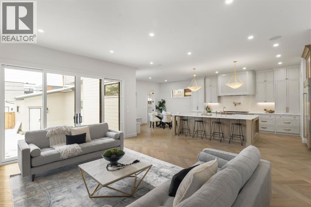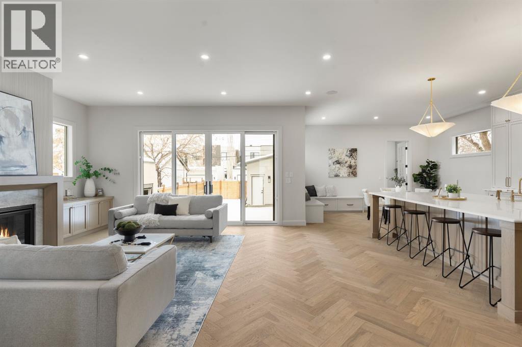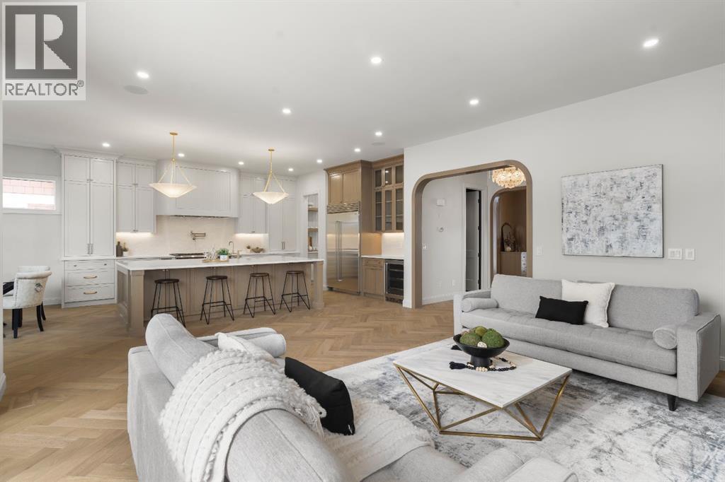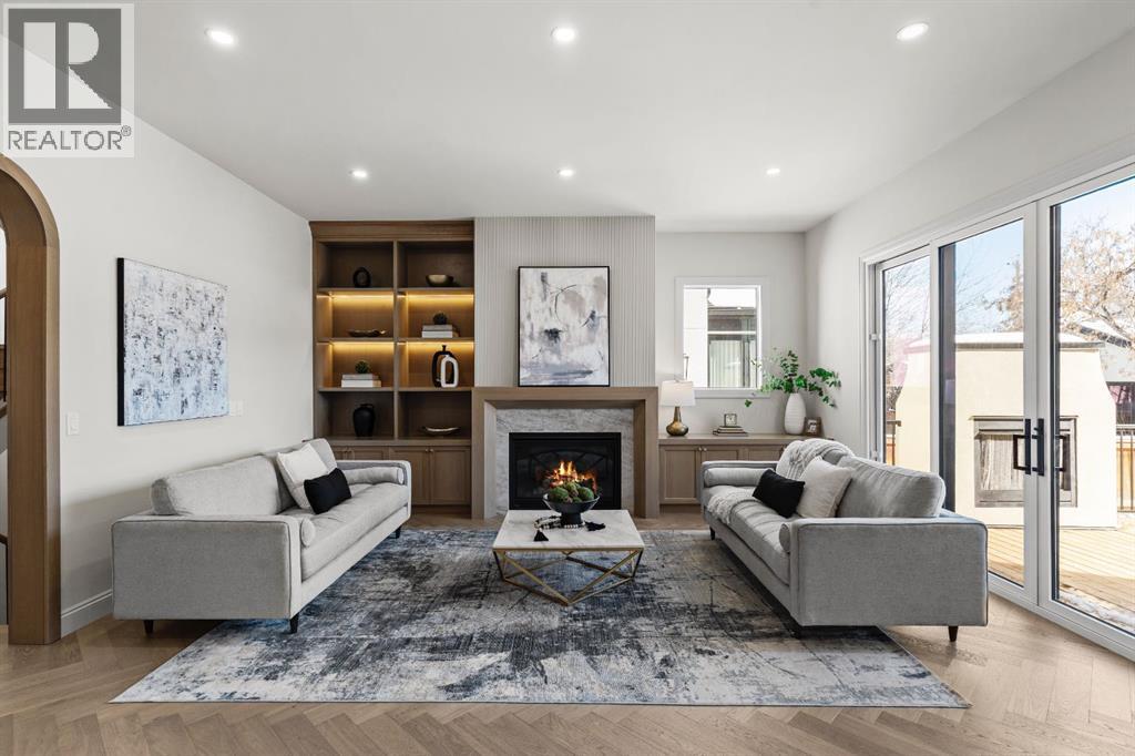 Welcome to The Harlow — West Hillhurst’s most compelling new luxury offering crafted by Cedar Rock Homes. This upscale property offers 3640 SQ FT above grade plus 1604 SQ FT of developed lower living space, south facing backyard with a triple attached garage. The home’s distinctive curb appeal sets the tone — a refined façade, arched windows, and a welcoming covered entry framed by mature trees. Inside, art-deco-inspired radius archways, warm herringbone oak flooring, and generous proportions create a sense of understated sophistication. The main level is anchored by a chef’s kitchen designed for both performance and everyday living, featuring site-built custom cabinetry, a premium Wolf and Sub-Zero appliance package, a large central island with seating, and a fully equipped butler’s pantry for seamless hosting. Designer lighting, tailored millwork, and thoughtful storage enhance the space, while the adjacent dining area and built-in breakfast nook provide comfortable settings for daily use. The living room offers a bright gathering space centred around a gas fireplace with custom built-ins and oversized windows that bring in abundant natural light. A formal dining room highlights architectural detail with exposed ceiling beams and panelled wall treatments. A dedicated office provides a polished work-from-home environment, featuring full-height wood paneling, custom built-in cabinetry and desk, and integrated lighting. A well-designed mudroom with custom built-in cabinetry, bench seating, and ample storage connects directly to the triple attached garage. Upstairs, the home offers four spacious bedrooms — each with its own private ensuite bath — providing comfort and privacy for family and guests. The primary suite serves as a private retreat, featuring a vaulted ceiling with exposed beam, an arched window, and a spa-inspired ensuite with heated floors, over sized steam shower, freestanding soaking tub, dual vanities with a make up desk, and refined finishes. A walk- through dressing room with extensive built-ins and a central storage island connects to a fully equipped laundry room with dual washer and dryer sets for added convenience. The fully developed lower level expands the living space with a large recreation area, wet bar with beverage refrigeration and wine room, a dedicated home gym, an additional bedroom, and a full bath. Outdoor living is thoughtfully designed, with a private rear deck featuring an outdoor fireplace that creates a comfortable year-round gathering space. High-end upgrades include radiant in floor basement heating, smart thermostats, 200 amp panel, open web joists for flat stable floors and no bulk heads in basement, wiring for future automation, and vacuflo rough-in. The oversized triple attached garage is insulated, drywalled, painted, with EV charging. Located minutes from the Bow River pathway system, Kensington, downtown Calgary, Foothills Medical Centre, the University of Calgary, and top schools. Book your private viewing today! (31691756)
