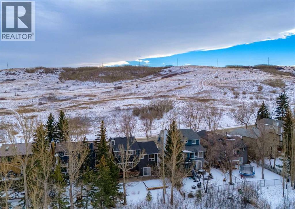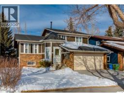 Situated directly across from Nose Hill Park and backing onto a tranquil ravine, this rare four-level split offers an exceptional blend of privacy, character, and unbeatable location. With no neighbours in front or behind, you’ll enjoy year-round views and direct access to one of Calgary’s most iconic natural spaces. Thoughtfully maintained and full of timeless architectural charm, the home welcomes you with a spacious foyer leading to a bright living and dining area featuring laminate flooring, a classic wet bar, custom built-in wood bookshelves, and elegant French doors that create separation while maintaining an open feel. The kitchen retains its original cabinetry—rich with character—complemented by tile flooring and a large window overlooking the backyard and green space beyond. Upstairs, you’ll find three generous bedrooms including a spacious primary retreat complete with a walk-in closet and private 4-piece ensuite. An additional full bathroom serves the upper level.The third level offers a warm and inviting great room anchored by an original wood-burning fireplace. Sliding patio doors lead to the renovated covered deck—an ideal setting for morning coffee or evening gatherings overlooking the ravine. This level also features a convenient 2-piece bath, laundry area, side entrance access, and entry to the attached garage. The fully developed walkout basement impresses with soaring 10’ ceilings, a fourth bedroom, den/home office, 3-piece bathroom, and ample storage. Patio doors open directly to the lower-level patio and private backyard, seamlessly connecting indoor and outdoor living. Recent updates include asphalt shingles (2025), siding and eavestroughs (2025), vinyl windows, driveway, and a renovated deck and patio. Located just minutes from Creekside Shopping Centre, Superstore, Costco, schools, the Calgary Winter Club, and offering quick access to Stoney Trail and Deerfoot Trail, this home combines natural beauty with everyday convenience in one of Calga ry’s most family-friendly communities. Opportunities like this—across from Nose Hill and backing onto a ravine—are exceptionally rare. Click the media link for the full video tour and book your private showing today. (31691289)