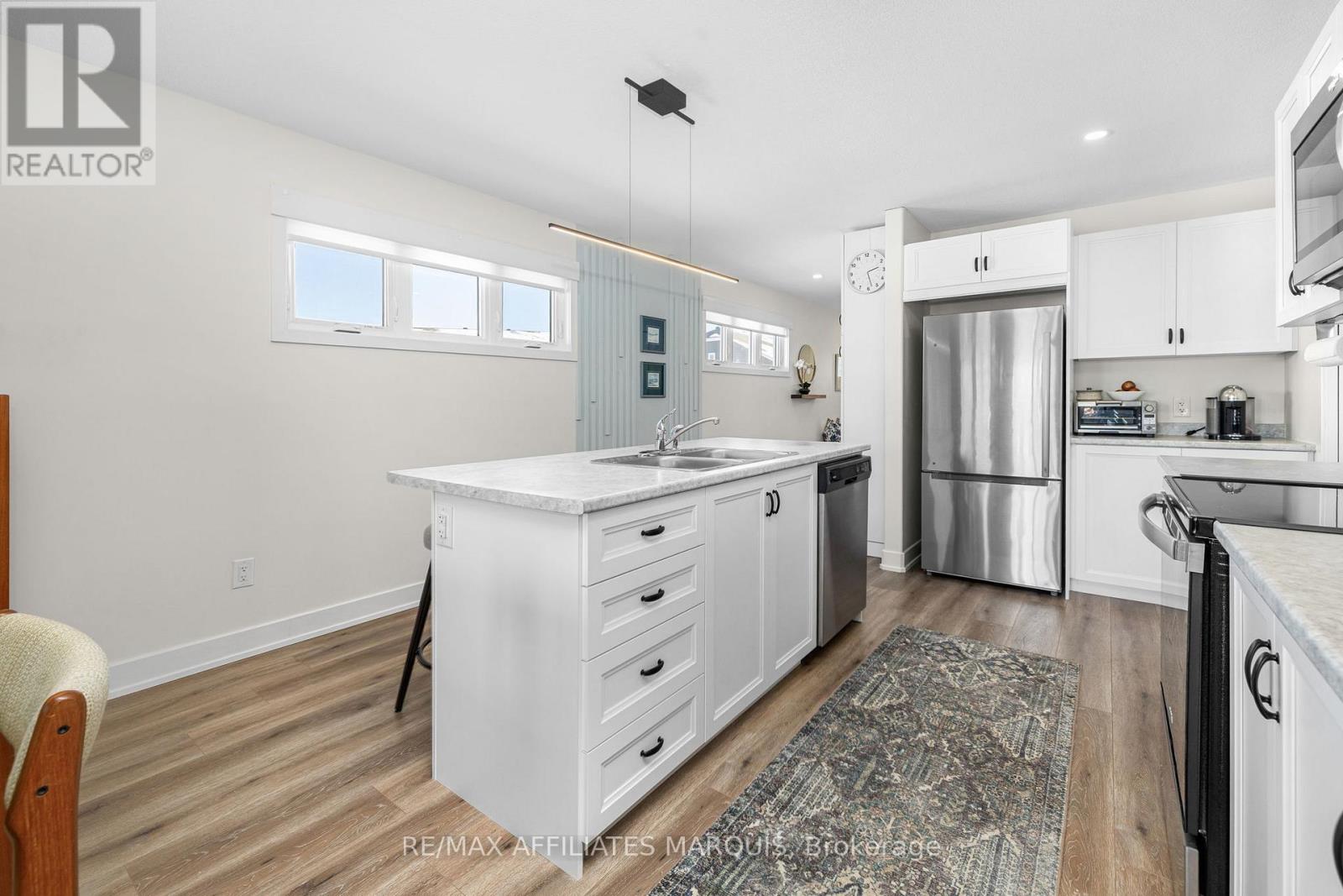 Welcome to 182 Ferrara Drive - a 2021-built bungalow townhome offering the ease of main-floor living on a large pie-shaped lot with valuable side-yard space. Set on a quiet stretch of Ferrara and just steps from the Cataraqui Trail, this home blends low-maintenance living with everyday access to outdoor recreation.The wider lot provides additional breathing room between neighbours, more natural light, and a fully fenced yard with flexibility for pets, gardening, or relaxing outdoors - an uncommon feature in bungalow townhome living. Inside, the bright open-concept main floor is designed for comfort and functionality. The kitchen flows seamlessly into the dining and living areas, creating a welcoming space for both daily living and entertaining. Two well-proportioned bedrooms are located on the main level, including a primary suite with a walk-in closet and private three-piece ensuite. A dedicated mudroom with main-floor laundry - complete with washer, dryer, and laundry tub - adds practical convenience, while a stylish powder room is thoughtfully positioned just off this space. The lower level expands the home with a generous family room, ample storage, and a beautifully finished full bathroom featuring a tub and heated floors - a comfort-forward upgrade that adds lasting value. With an attached garage, modern systems from its 2021 construction, and a layout well suited to down-sizers, professionals, or small families, 182 Ferrara Drive offers strong value in an established Smiths Falls neighbourhood close to parks, shopping, and amenities. (42226021)