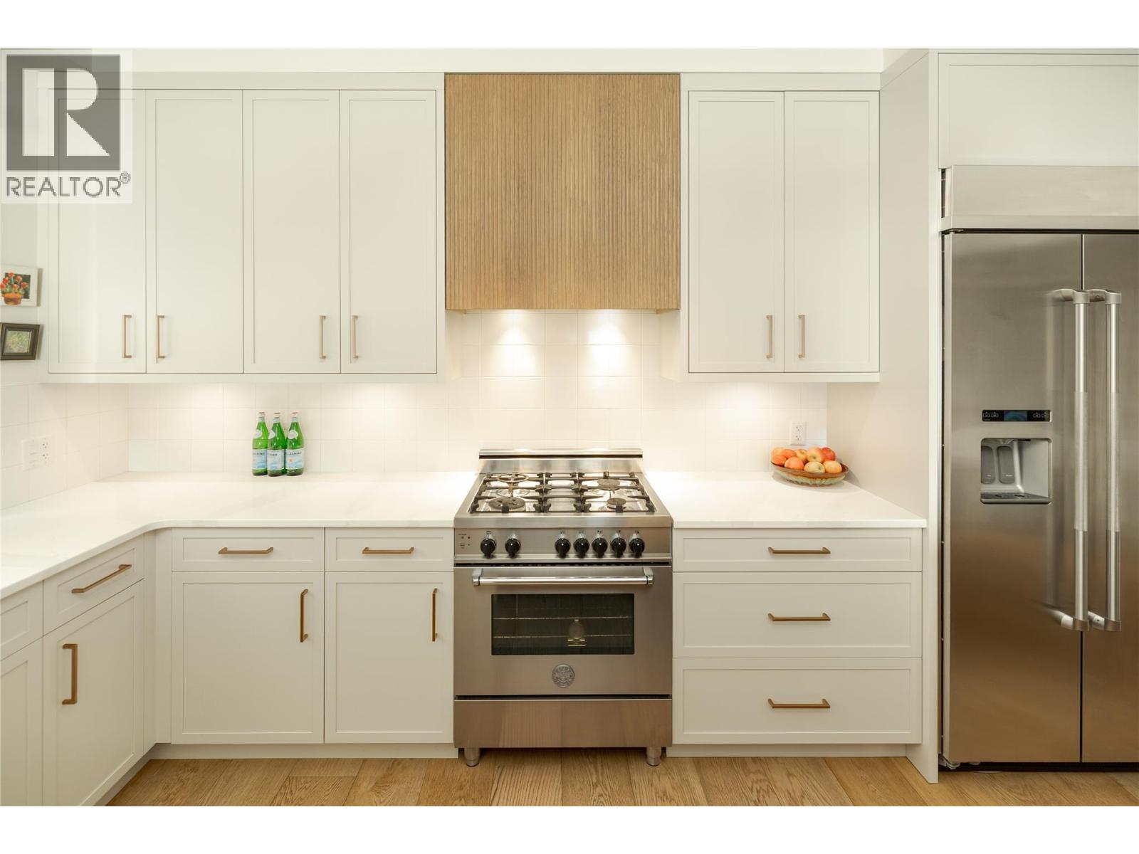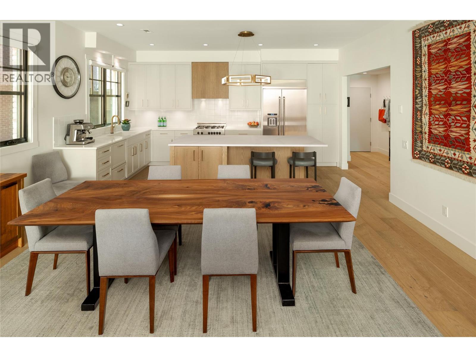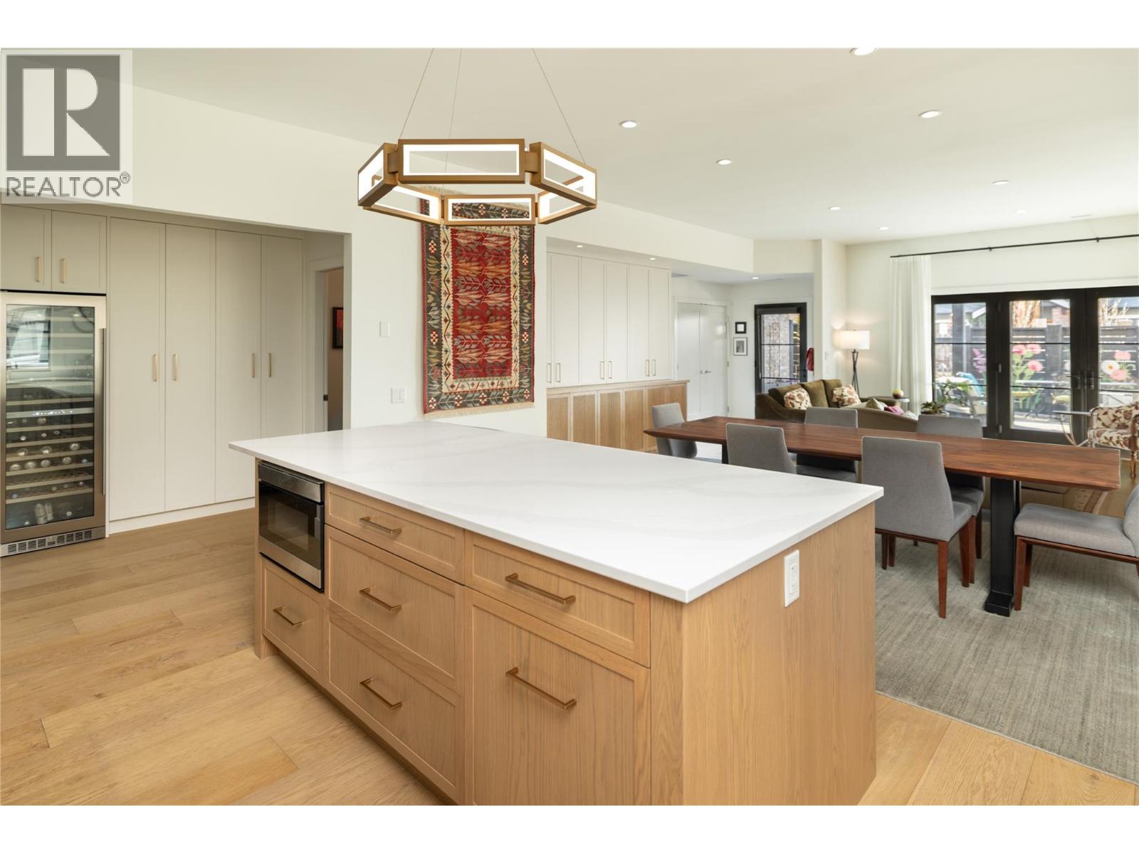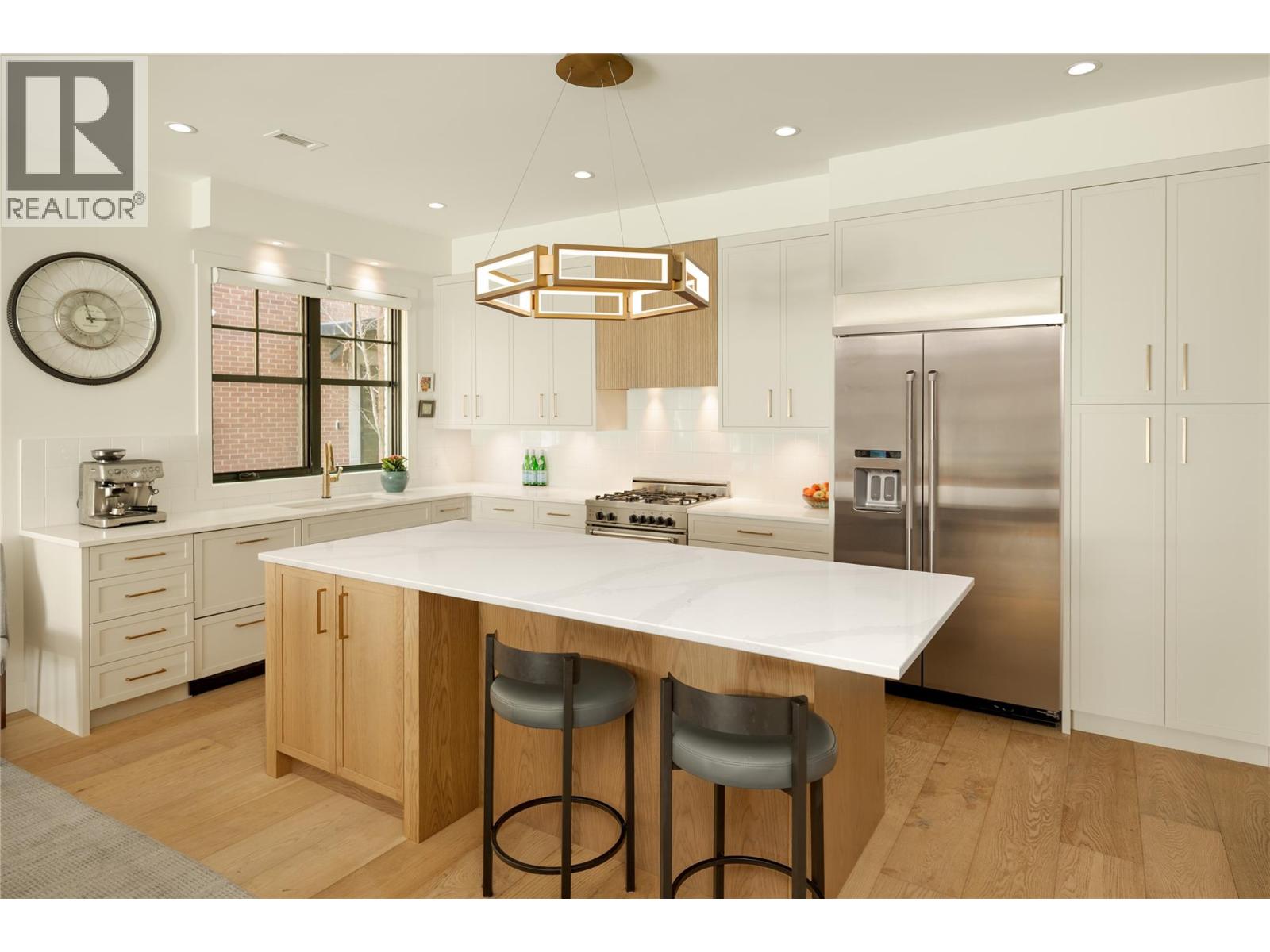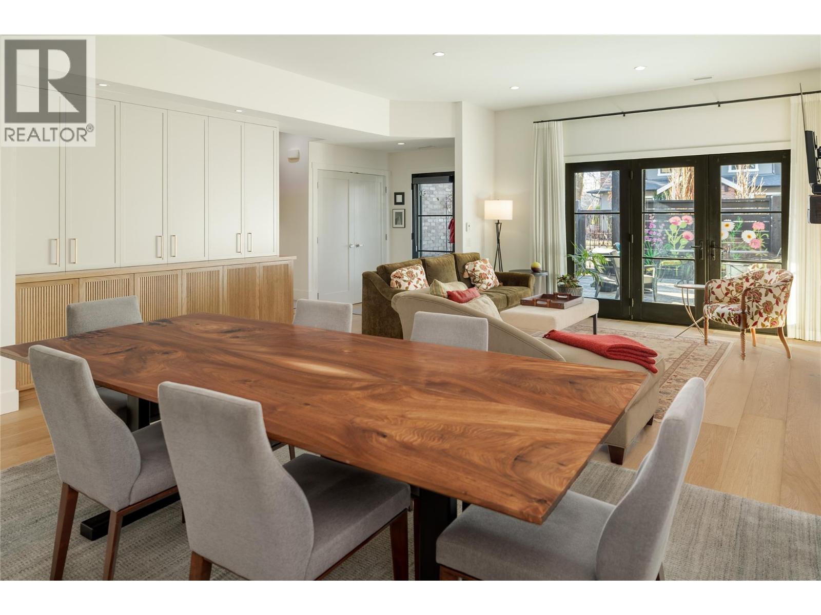 Life here unfolds effortlessly. An evening walk to the lake becomes part of your routine, morning coffee from your favourite cafe is just down the street. Dinner reservations, boutiques, everyday essentials — all within a few steps of home. Set in the heart of Pandosy Village, this is where urban energy meets relaxed Okanagan living. The timeless brick exterior offers presence & charm, while beyond the gate a private, fenced patio with louvered pergola creates an inviting outdoor retreat- ideal for summer dinners, quiet mornings, or gathering with friends. Inside, wide plank wood flooring carries throughout the main level, grounding the open-concept design. The living room, anchored by a striking fireplace, invites conversation & comfort. Custom millwork & thoughtfully designed built-ins add both function & architectural interest. Patio doors extend the living space outdoors, blurring the line between inside & out. The dining area easily hosts family dinners & celebrations, flowing seamlessly into a beautiful kitchen designed to impress & perform. A generous island becomes the natural gathering point, complemented by a Bertazzoni gas range, Fisher & Paykel dual dishwasher, custom hood vent, built-in wine fridge, & two-tone cabinetry. A discreet powder room and oversized single garage with abundant storage complete the main level. Upstairs, a versatile loft offers flexibility for a home office, reading nook, or creative space. The primary suite delivers a sense of retreat, featuring a spa-inspired ensuite with soaker tub, seamless glass shower, dual vanity, & heated floors. The second bedroom adapts beautifully with its integrated Murphy bed, while a full bathroom & well-designed laundry room complete the upper level. This is refined, low-maintenance living in one of Kelowna’s most walkable & sought-after neighbourhoods — designed for those who value style, connection, & a lifestyle where everything is within reach. (39776066)
