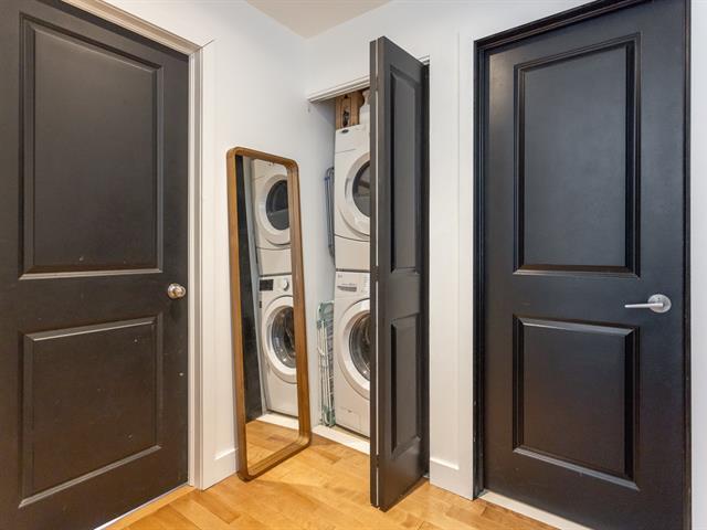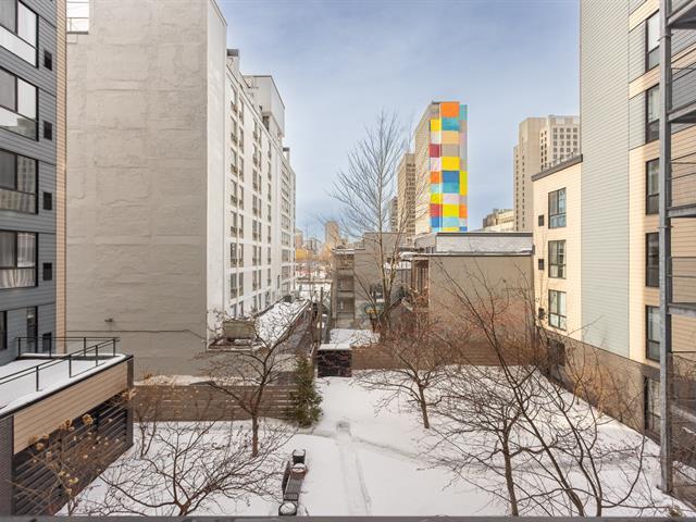 Stunning 3rd-floor condo in the heart of downtown Montreal, between the Village and Old Montreal. Bright open-concept living area with large windows, spacious bedroom, full bathroom, and separate laundry room. Private balcony overlooking the interior garden, indoor garage parking, and storage included. Building features a heated rooftop pool, gym, sauna, and home theatre. Walking distance to metro stations and all amenities. Visits start Sunday March 1st 1PM-3PM (by appointment only). Welcome ! (39088900)
