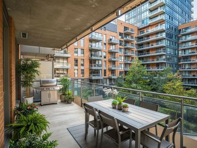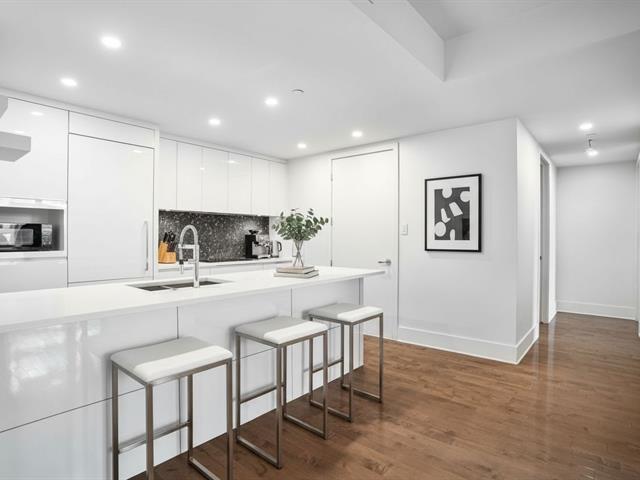 2-bedroom, 2-bathroom condo with garage in the prestigious Solano project. Superb living area with modern kitchen and central island, walk-in closet in the master bedroom, and very large balcony overlooking the interior garden. Home automation. Building offering high-end services: indoor pool with spa and sauna, exercise room, yoga room, urban chalet, and outdoor pool with spa and terrace. Located across from the river and the Quai de l'Horloge, a stone's throw from Place Jacques-Cartier, St-Paul Street, restaurants, shops, galleries, grocery stores, CHUM, UQAM, parks, museums, BIXI, and two metro stations within a 10-minute walk. (40412270)