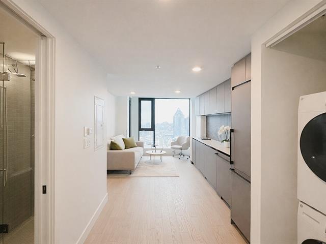 This luxurious 1 bedroom condo on the 36th floor of Maestria Condominiums offers stunning panoramic views of downtown Montreal,South west with sunshine, many upgrades with floor-to-ceiling windows and high-end finishes throughout. The spacious layout includes a modern kitchen, a stylish bathroom, a walk-in closet in the primary bedroom, and a private balcony. Residents enjoy access to over 40,000 square feet of premium amenities such as a fitness center, spa, pools, game rooms, and more. Located in the heart of Quartier des Spectacles, Maestria provides easy access to Montreal's cultural, dining, and entertainment hubs. (45132379)