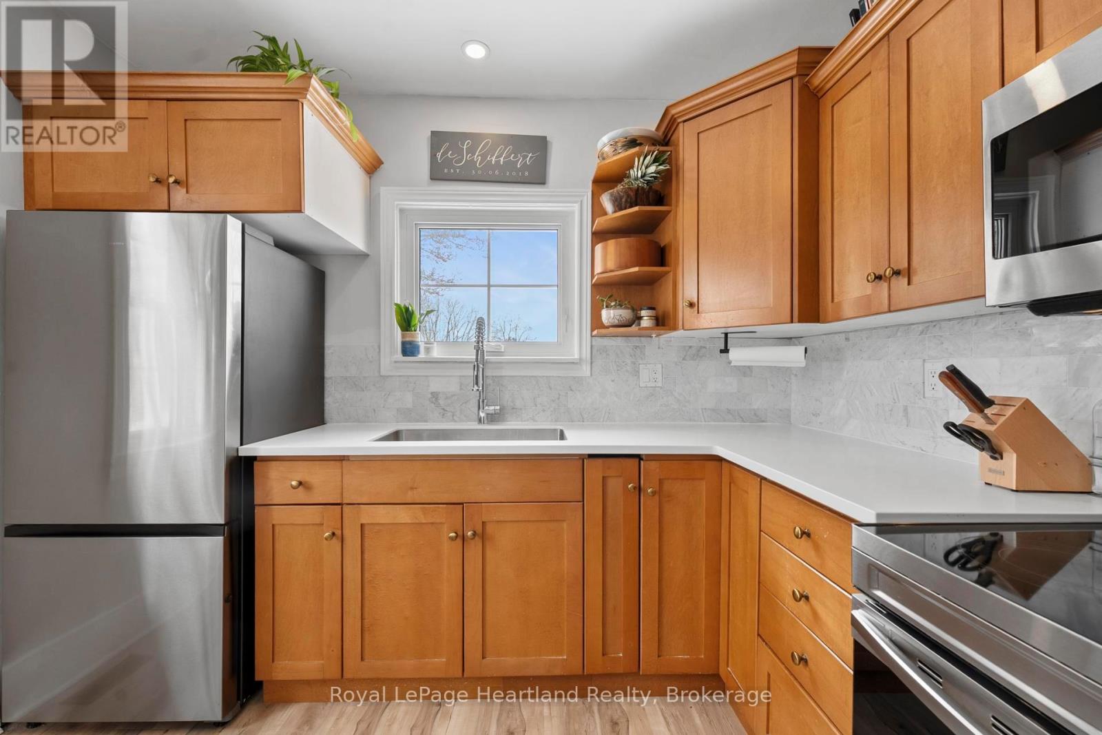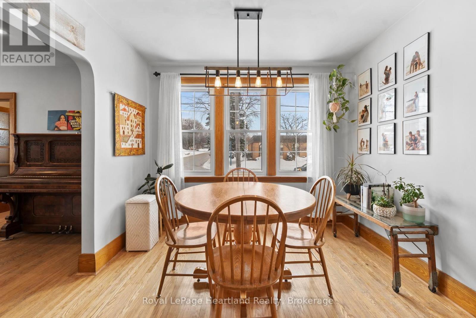 Welcome to 108 Albert Street, Clinton - a three-bedroom brick home with stunning Tudor style architecture. This home features the charm of a 1942 build, with modern updates throughout for comfortable living. Original flooring, trim and doors paired with updated windows, electrical, plumbing and a beautifully renovated custom kitchen with new appliances - this home is a unique gem in the heart of Huron County. The main floor features a sizeable entryway/coatroom and an open-concept dining and living space, with ample natural light. You will also find a bedroom and full bathroom for convenient main floor living. Upstairs, there are two more sizeable bedrooms with ample closet space, and a balcony off the second bedroom. The full, partially finished basement has been recently renovated (2025), providing another living space/rec-room, or office to suit your needs. The basement offers ample storage space and many mechanical upgrades, such as a new hot water heater. The home's exterior is just as impressive, featuring beautifully landscaped gardens, a detached garage and two driveways for ample parking. The large backyard features a newly poured pad for backyard hangouts, a blooming magnolia tree in the spring and a new fence. Located in the quaint town of Clinton, just 15 minutes from Lake Huron and an hour from London, this home is ready for its next owners. Don't hesitate to check this one out! (42226573)