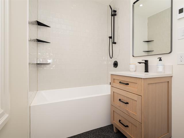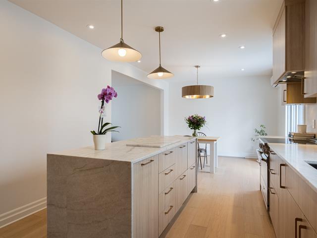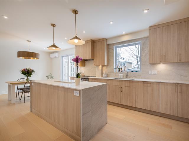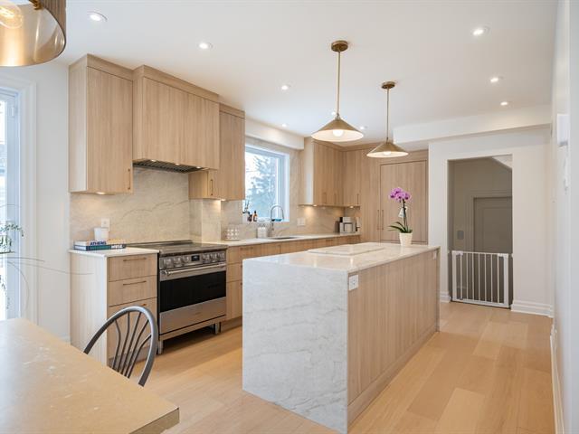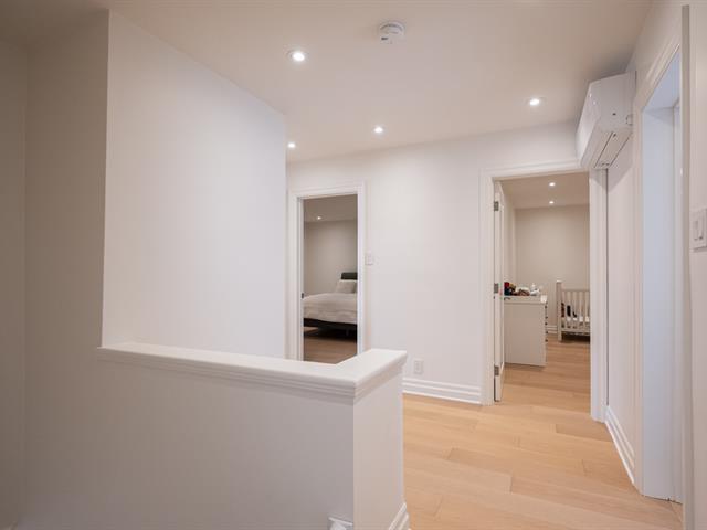 Impeccably renovated two-storey semi-detached residence on a prime corner lot in sought-after West Town of Mount Royal. Offering 5 bedrooms and 3+1 bathrooms with heated floors, refined engineered flooring throughout, and two wall-mounted AC/heating units for year-round comfort. Designer kitchen with built-ins, quartz countertops, and waterfall island. Finished basement with spacious family room and versatile bedroom/office. Expansive terrace and private landscaped yard. Attached garage plus 2 driveway spaces. Walking distance to top schools, services, and Royalmount. Exceptional turnkey living! (54452375)