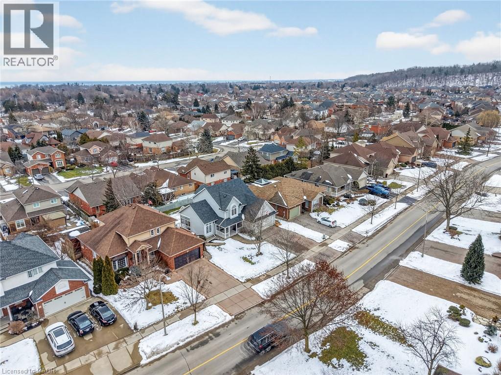 This home sits at the foot of the Niagara Escarpment in Dorchester Estates—one of Grimsby's most popular neighbourhoods. This well-kept two-storey home has four bedrooms, three and a half bathrooms, and over 3,100 square feet of finished space, giving a growing family plenty of room to settle in for the long haul. The main floor is predominately hardwood flooring, with a sunken living room that features a spacious gas fireplace and new windows. The carpeted dining and sitting room has a soaring vaulted ceiling and looks out toward the Escarpment. The eat-in kitchen has stainless appliances, oak cabinetry, and a garden door that opens onto a large back deck with a gazebo—great for summer get-togethers and family fun. Upstairs, the primary suite has a walk-in closet and private ensuite, as well as two additional bedrooms and a 4-piece bathroom. The fully finished basement gives you a bunch of options whether you need a rec room, guest space, or a home office. Outside, the double garage, concrete driveway, and stamped concrete walkways give the exterior a clean, polished feel. The street is quiet and family-friendly, with the West Lincoln Memorial Hospital, schools, shopping, and the QEW all close by. This home is the perfect spot for your family to call home for a very long time. Note: some photos have been virtually staged. (70210009)