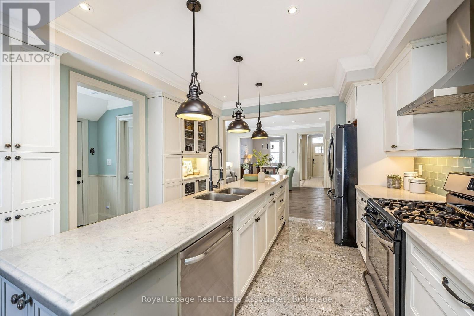 Completely transformed century home where old-world charm meets modern luxury. Situated on a mature, deep lot with a rare 6-car newer asphalt driveway and just a short walk to the GO Station - your commute to Union Station is approximately one hour door to door. Nestled on a unique island street surrounded by trails and a sprawling ravine, this location is perfect for nature lovers, runners, and dog walkers alike. Inside, the home has been fully redesigned with an open-concept main floor layout featuring a chef-inspired kitchen with abundant cabinetry and storage. Bespoke finishes include porcelain tile and hardwood flooring throughout, a penny-tiled entranceway, and quartz counters on the vanities, kitchen surfaces, and the impressive 12-foot kitchen island. A grand dining room makes entertaining and hosting holidays effortless. The 2nd floor offers spacious, large bedrooms that provide comfort and flexibility. Step outside to a large backyard complete with an interlock natural stone patio area - perfect for entertaining or relaxing. The landscaping showcases beautiful perennials that flourish throughout the spring and summer months. Detached garage perfectly suited as a shop with hydro. Acton is an incredible community to raise children with charming schools, the beloved Prospect Park and Fairy Lake - for kayaking or fishing! Events such as Leather Town Festival, the Fall Fair, Farmers Market and many more attract families from all over the GTA. (42226642)