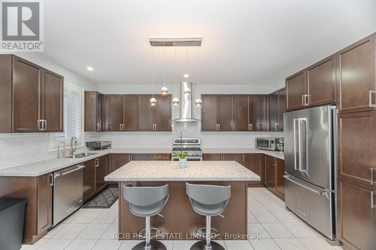 Welcome to this absolutely stunning, upgraded detached home in the prestigious Mayfield Village community! Boasting approximately 3,500 sq. ft. of luxurious living space, this beautifully designed residence offers elegance, comfort, and functionality at every turn. The home features 9-foot smooth ceilings on the main floor, pot lights throughout (interior & exterior), and a modern stone exterior for timeless curb appeal. Step inside through the upgraded double-door entrance to a bright, open-concept layout with gleaming hardwood floors and no carpet throughout. The spacious kitchen is a chefs dream, featuring quartz countertops, extended cabinetry, an extra pantry, and a BBQ gas line leading to the backyard perfect for entertaining. Separate living/dining, and family rooms provide flexibility and comfort for gatherings, while a cozy fireplace adds a warm touch. Upstairs, the primary bedroom offers a spa-like ensuite with a glass-enclosed shower, complemented by three additional spacious bedrooms. The finished basement includes two additional bedrooms, a full kitchen, and a large recreation room, ideal for extended family or rental potential. Additional highlights include California shutters, an iron picket staircase, fresh new paint, rough-in for a central vacuum, and a fully fenced backyard for added privacy. Located just steps from schools, parks, public transit, and minutes from Hwy 410, this home truly combines luxury and convenience. A perfect blend of sophistication and practicality this move-in-ready gem is an exceptional opportunity for families and investors alike. Don't miss your chance to call this spectacular property your home! (42226711)