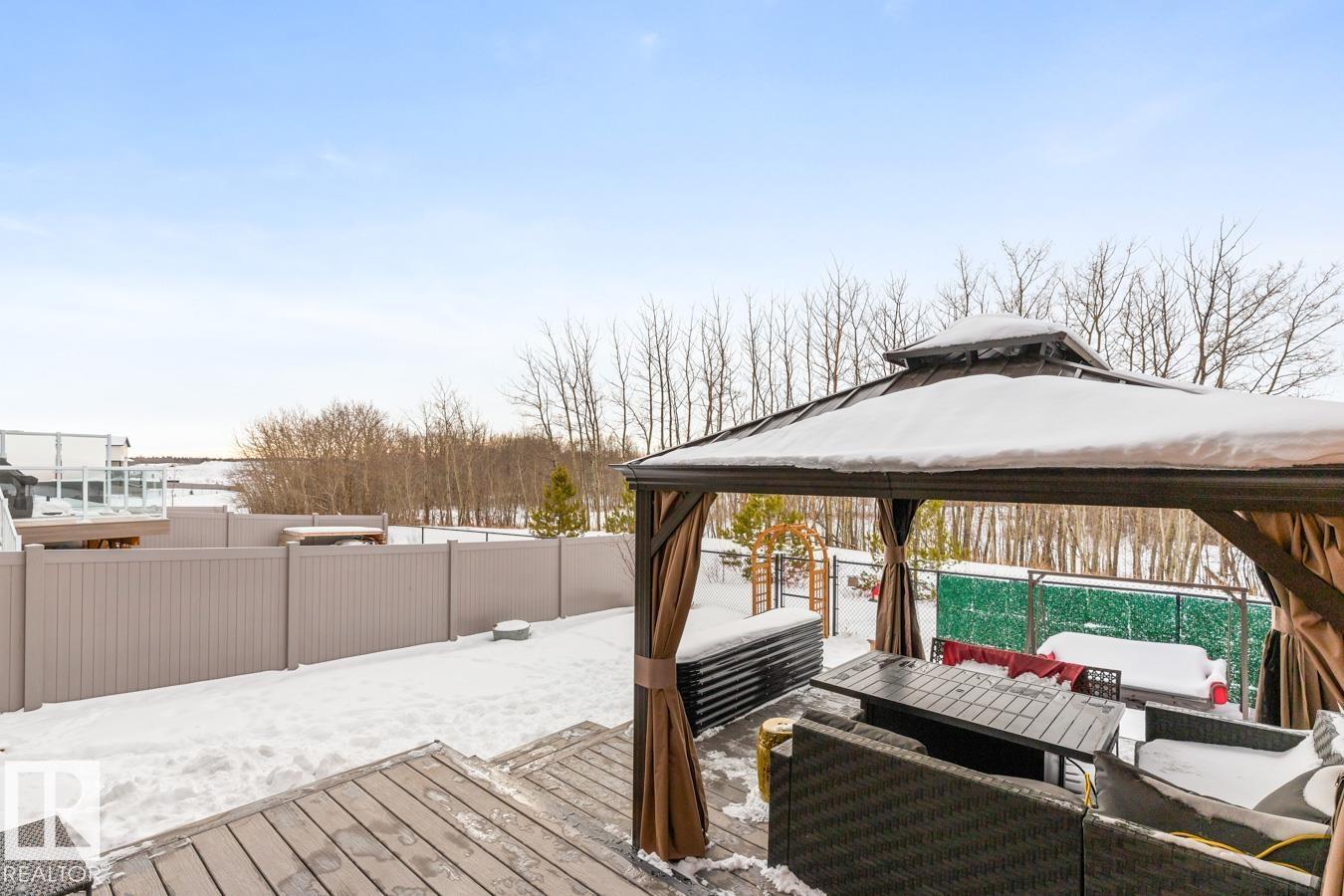 You’re going to LOVE this Ardrossan gem backing a peaceful treed reserve & ACROSS from another treed reserve, showcasing executive finishes, 3 bedrooms, 2.5 baths, A/C & double garage. Step inside this Daytona-built beauty to discover 9’ ceilings & luxury vinyl plank flooring throughout the sun-filled main level. The stylish kitchen features abundant cabinetry, walk-through pantry, stainless steel appliances & quartz island overlooking the dining area and living room anchored by an electric fireplace. Upstairs, the king-sized primary retreat offers a walk-in closet & spa-inspired 5-piece ensuite. Two generous bedrooms, a 4-piece bath, cozy bonus/family room & convenient upper laundry complete the level. The basement is ready for your vision with space for a future rec room, bedroom & bath. Enjoy the fenced, landscaped SW-facing yard with tiered deck, BBQ gas line & gazebo. All in a vibrant community with trails, rec centre, spray park, dog park, schools & great local dining! (33878137)