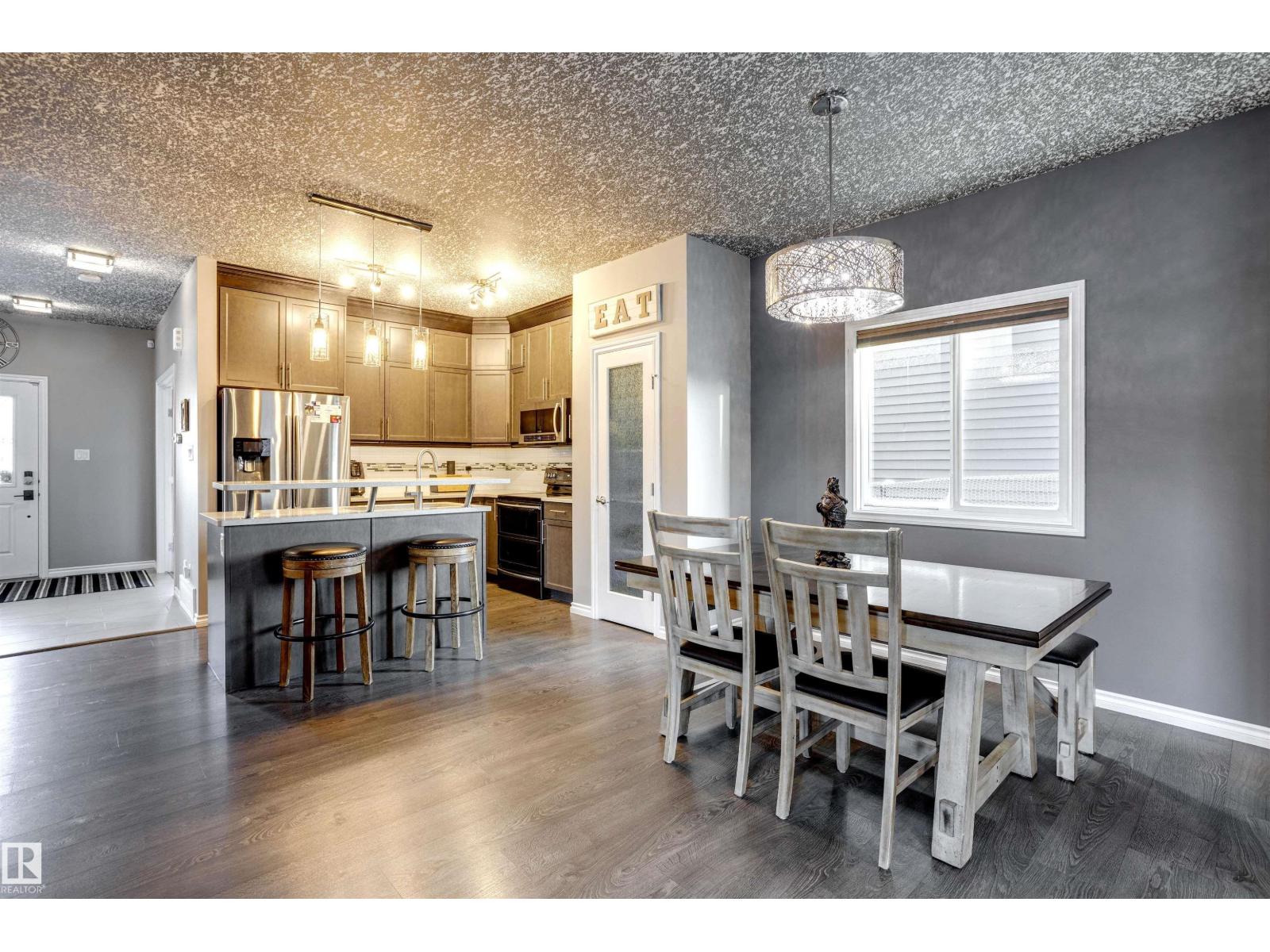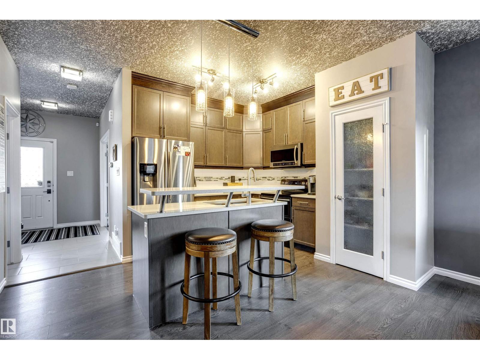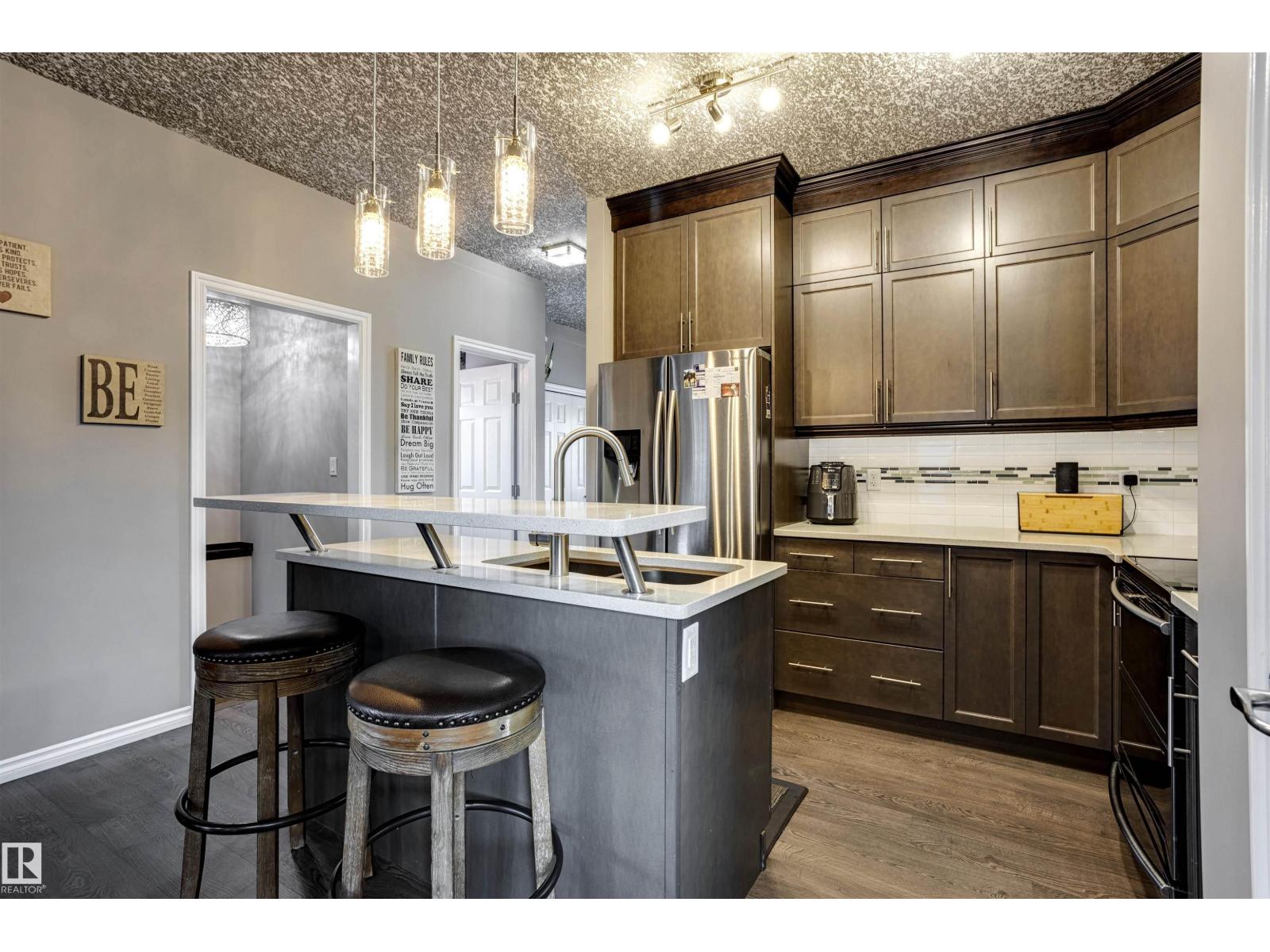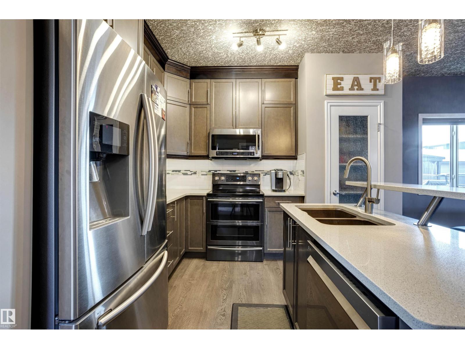 The perfect blend of style, luxury & practicality makes this home a must see! The home has many stylish touches including a beautiful stacked stone wall feature with built-in fireplace. The modern color palette of the open-concept space is enhanced by the 2-tone California knockdown ceilings. The kitchen has classy quartz counters + cabinets that extend all the way to the ceiling. The main floor den/office space has a built-in wall bed should any guests wish to stay the night. The fully-developed basement has a huge living room space + a bedroom + full bathroom with shower. Upstairs, 3 spacious bedrooms, 2 bathrooms + the convenience of a laundry closet! Outside, front yard is fully landscaped w/ limestone + concrete accents. Backyard boasts 2 gazebos + hot tub + built-in outdoor kitchen area, stamped concrete + large shed! Upgraded large double detached garage + widened driveway makes it possible to park more vehicles. A/C? Yes! Minutes from Henday, amenities & nearby schools. This is a rare opportunity! (33878256)