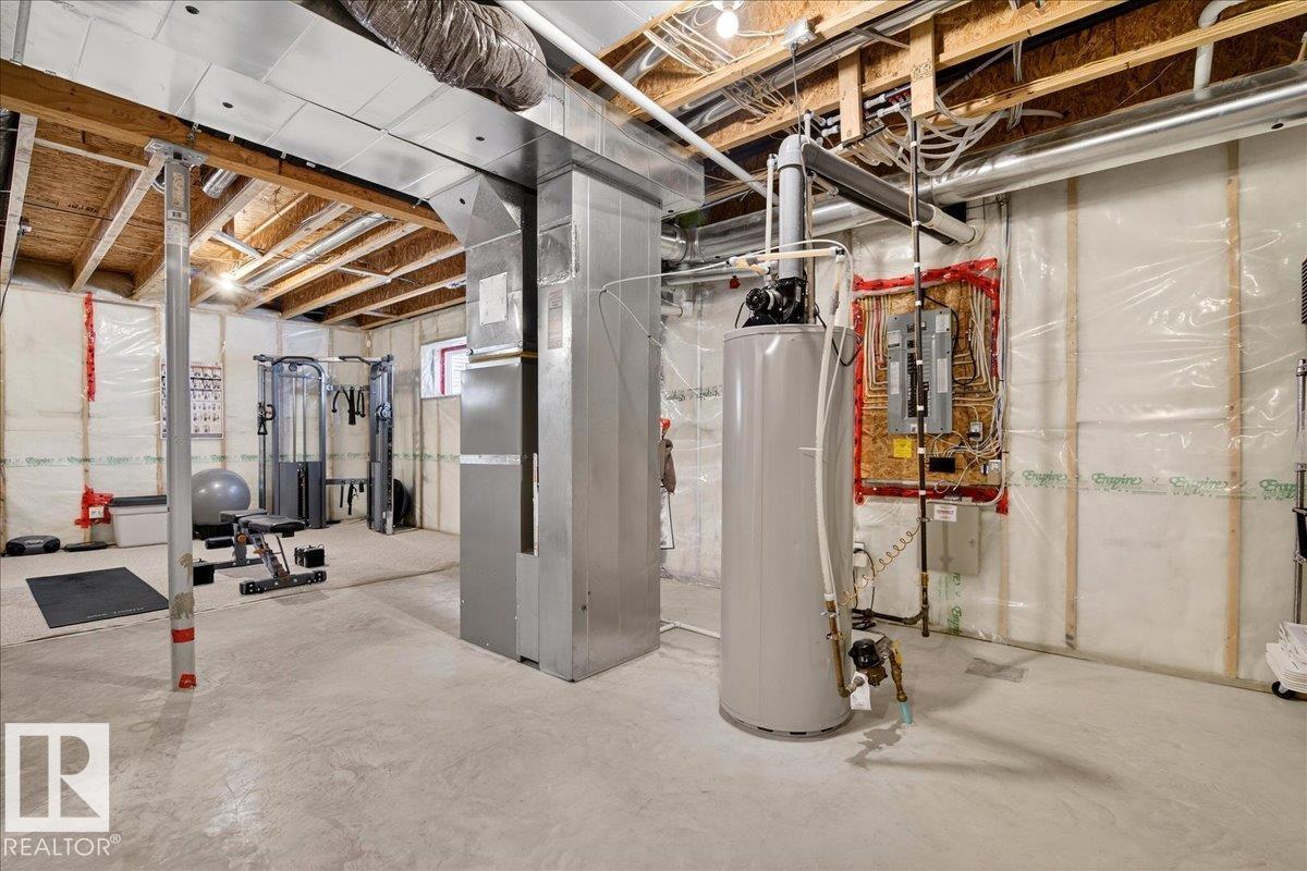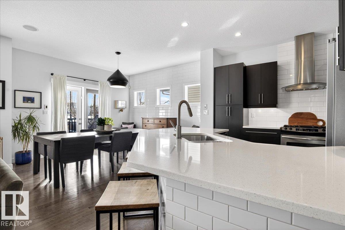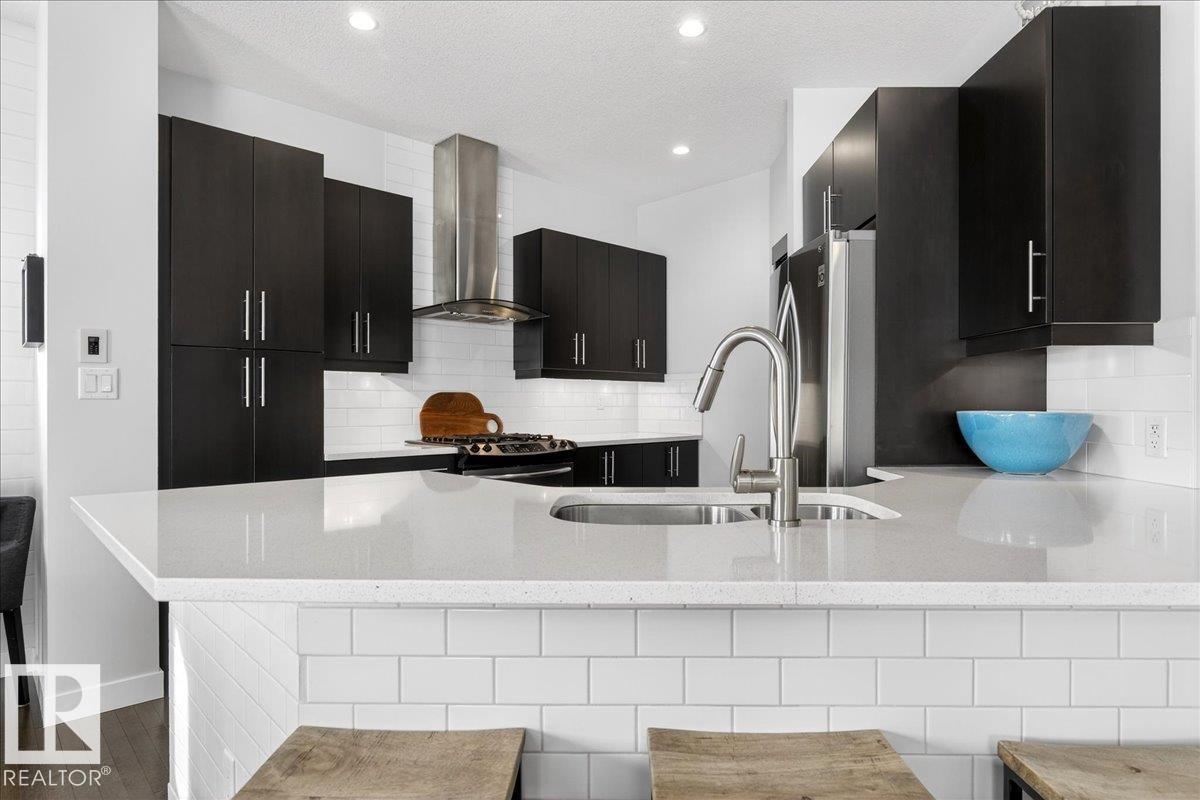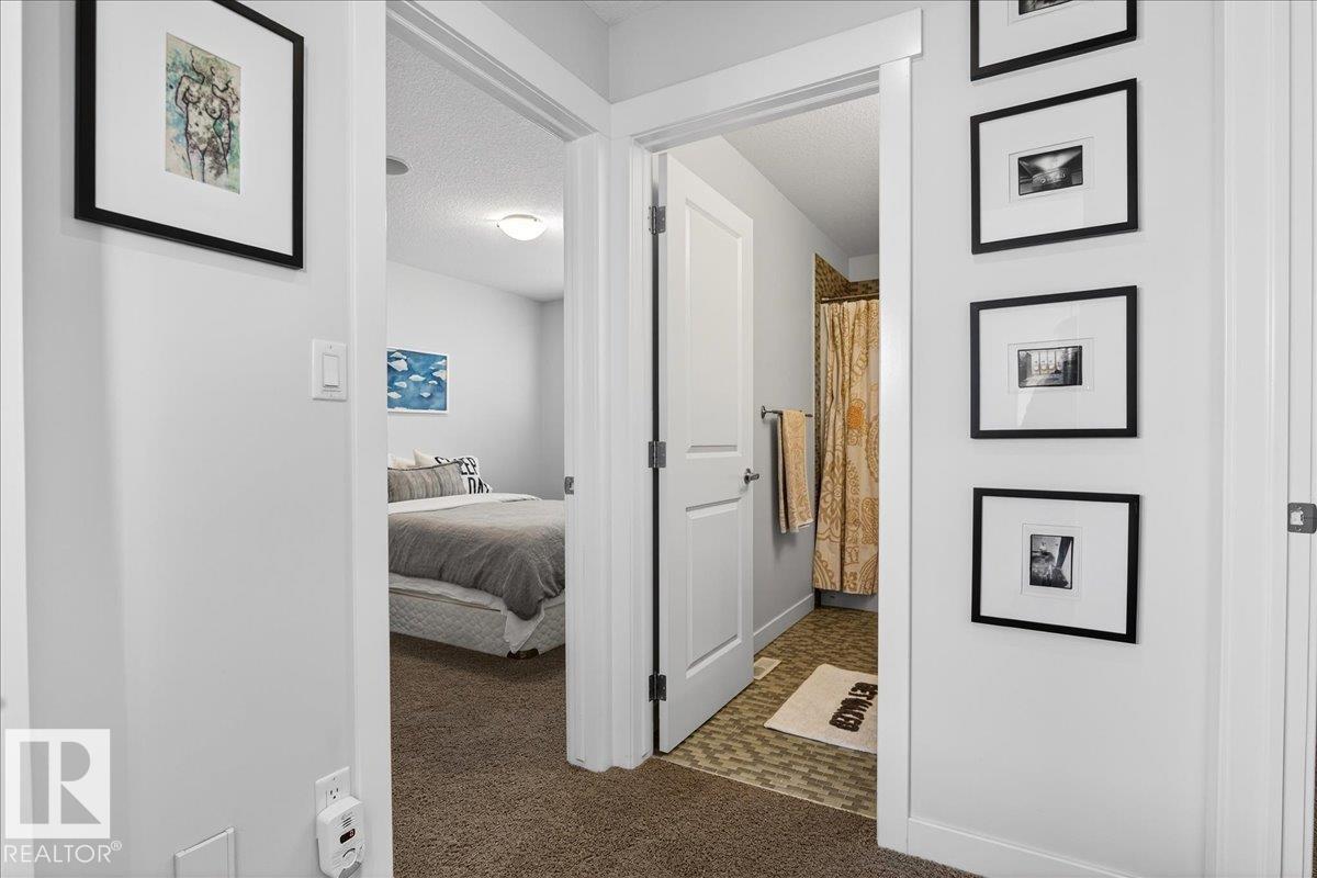 Welcome to this fully landscaped and beautifully maintained 2-storey home backing onto green space and a school, perfect for families! Featuring an oversized double-attached garage with rough-in for hot/cold water and a gas line, built-in Nuvo speakers throughout, built-in central vac & A/C. Greeted into the home by an open-concept main floor with 9ft ceilings, and a bright living, dining, and kitchen area. Enjoy ample natural light, a gas fireplace, S.S. appliances, a breakfast bar, a pantry, a 2pc bath, laundry room, and main floor office/den. Upstairs boasts a spacious bonus room, 2 bedrooms, 4pc bath, and a primary retreat with hardwood floors, a walk-in closet, and a 5pc ensuite complete with dual sinks, a soaker tub, and a separate shower. Step outside to a large deck, fully fenced south-facing backyard, and a natural gas BBQ hookup, perfect for entertaining. With quick access to the Henday, a short drive to WEM, Lewis Estates Golf Course, and all amenities, this home is ready to move in and enjoy! (33878334)