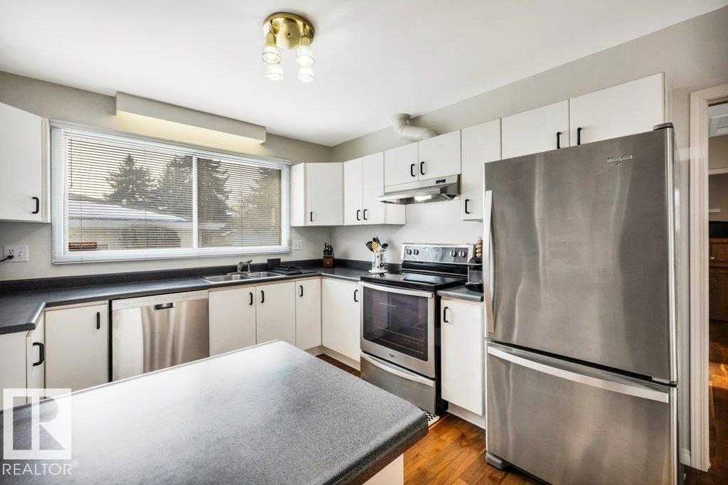 This charming and bright 1300-square-foot bungalow in the desirable Greenfield neighborhood showcases true pride of ownership. The main floor is warm and inviting, featuring beautiful black walnut hardwood floors throughout, an updated and functional Ikea kitchen along with three comfortable bedrooms, including a primary suite with a convenient 2-piece ensuite. A fourth bedroom in the fully developed basement adds valuable flexibility, along with a 3-piece bathroom for added convenience. Enjoy a sunny South-facing backyard with back-alley access, RV parking potential, and an oversized double detached garage. Situated on a 50×115 lot, this home offers many updates including newer roof, soffits, facia, and air conditioning for peace of mind and comfort. Just steps from the Derrick Golf & Winter Club, close to Snow Valley Ski Club, and surrounded by schools for every age group, this is an exceptional opportunity in one of the city’s most sought-after communities. (33878348)