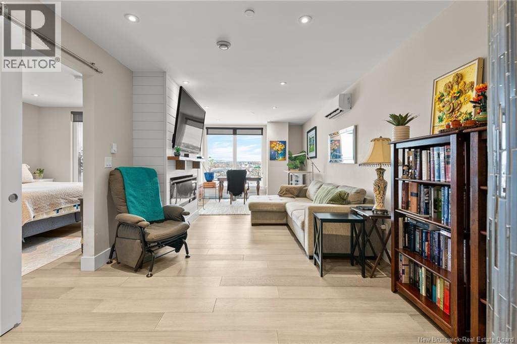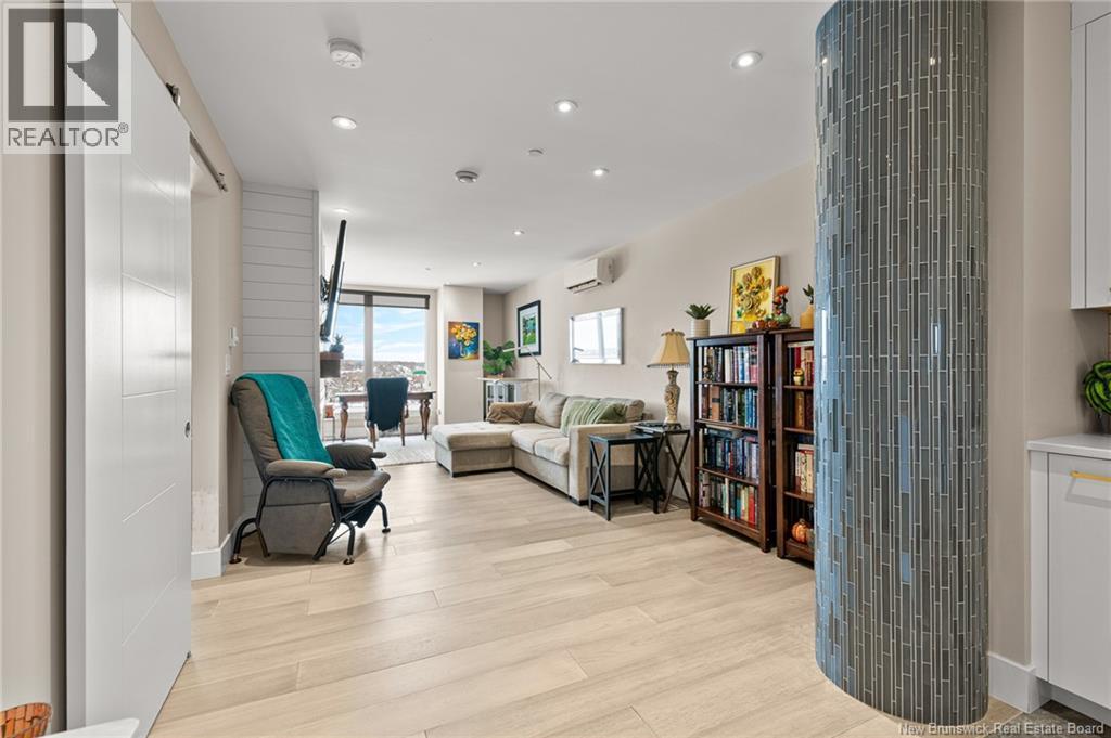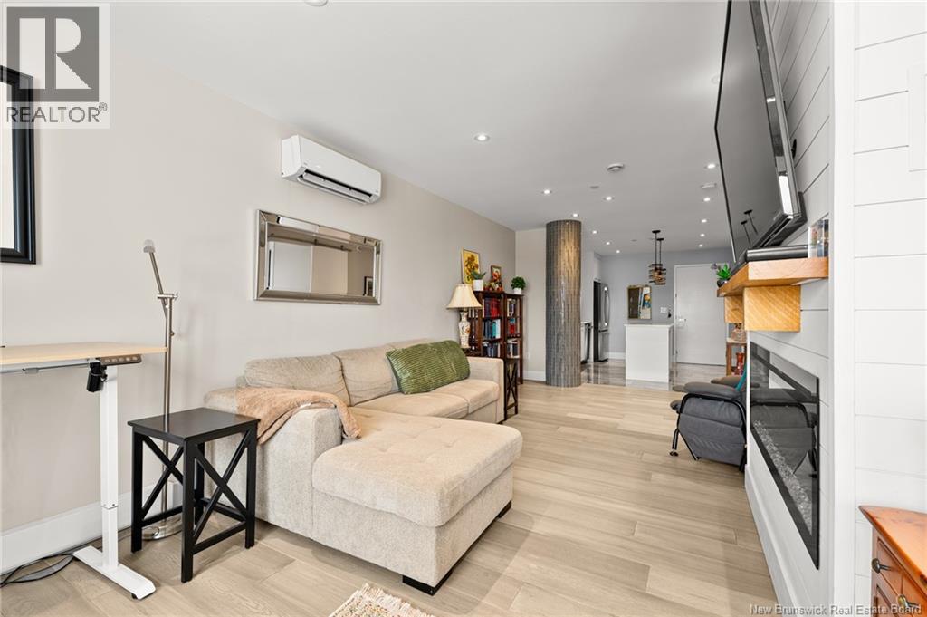 LUXURY DOWNTOWN LIVING at Monctons premier condo residence, FiveFive! This 7th-floor 1-bedroom, 1-bathroom unit offers a refined, low-maintenance lifestyle with exceptional amenities and walkable access to everything downtown. Inside, enjoy gleaming tile floors and an open-concept kitchen, dining, and living area featuring white cabinetry, gold hardware, and ample storage. The living room and bedroom are filled with natural light and offer sweeping north-facing city views, with a private balcony perfect for evening sunsets. The walkthrough closet connects to a spacious bathroom with a custom walk-in shower. Additional features include in-unit laundry, storage closet, and an energy-efficient ductless heat pump. FiveFive offers unmatched convenience and luxury, including underground parking, storage locker, fitness centre, residents lounge, exclusive rooftop patio, and secure access. Enjoy direct access to Bar55 Café, Gahan House Hub City, and the Palette Rooftop Bar & Patio. With elegant common areas (including a residents-only entertainment & relaxation area and exclusive rooftop patio on the 9th Floor (reservable for your own private events), guest intercom, mail facilities, and garbage chutes on every floor, this secure building delivers comfort, style, and true downtown ease. Combined with Canvas Moncton Tapestry Collection by Hilton Hotel, this offering provides every reason why this is the investment you've been waiting for. Schedule a guided tour today! (29537482)
