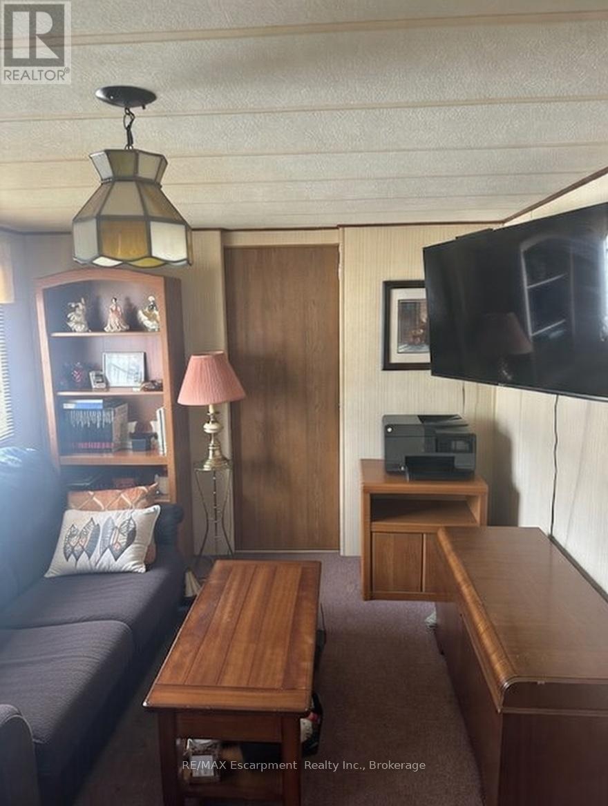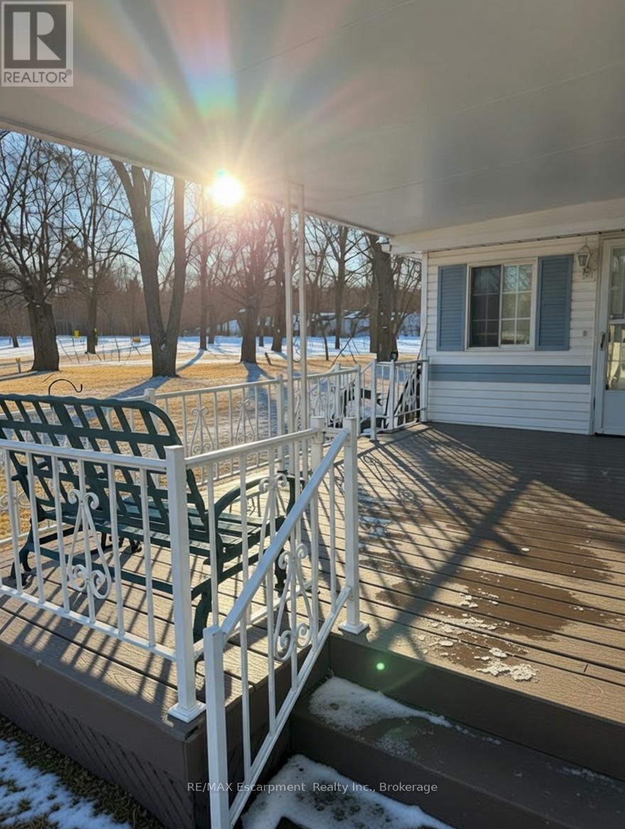 This charming 1-bedroom, 1-bathroom mobile home is perfectly situated in a peaceful, adult-oriented 55+ community in the desirable Forestview/Scott's Trailer Park area. Ideal for retirees or those seeking low-maintenance, year-round living close to the excitement of Niagara Falls! Step inside to discover a cozy, well-designed layout that maximizes comfort and space. The bright open-concept living area flows seamlessly into a functional kitchen, offering plenty of room for relaxing or entertaining guests. The spacious bedroom provides a serene retreat, while the full bathroom is conveniently located nearby. Standout features include: An inviting all-season sunroom - perfect for enjoying morning coffee, reading, or unwinding with views of the community, rain or shine! A welcoming covered front porch - ideal for relaxing outdoors, people-watching, or adding a touch of curb appeal with seasonal decor. Best view of the park from the porch! This home is part of a friendly, pet-friendly 55+ community with amenities like a salt-water pool for summer enjoyment, on-site laundromat, variety store, park areas, and easy access to nearby shopping, dining, and attractions along historic Lundy's Lane - just minutes from the world-famous Falls, casinos, wineries, and highways. Affordable living with leased land, low maintenance, and the freedom to enjoy retirement without the hassle of big-property upkeep. Whether you're downsizing, relocating, or seeking a seasonal escape that works year-round, this gem offers comfort, convenience, and community vibes. Don't miss this opportunity. (42227601)