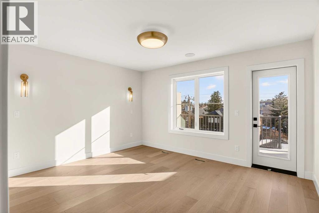 ***OPEN HOUSE: Saturday, Feb 28th 3:00 - 5:00 PM*** Experience refined inner-city living in WEST HILLHURST with this newly built 3-storey semi-detached infill offering over 3,500 sqft of professionally developed space. Positioned in a quiet cul-de-sac with a sunny south-facing backyard, this home delivers privacy, natural light, and thoughtful design across all 4 levels. A spacious dining area welcomes gatherings of any size, seamlessly connecting to a chef-inspired kitchen anchored by a large island designed for everyday living and entertaining. FULL HEIGHT CABINETRY maximizes storage while a dedicated wall pantry keeps essentials organized and out of sight. HIGH-END APPLIANCES including a gas stove support precision cooking, and carefully curated finishes elevate both style and function. A warm living area centers around a GAS FIREPLACE FRAMED BY BUILT-IN SHELVING and cabinetry, creating a natural focal point for relaxing evenings. Patio sliders extend living outdoors to the fully fenced SOUTH BACKYARD and ground-level patio, offering effortless indoor-outdoor flow. An enclosed mudroom provides practical storage for busy households, while a tucked-away powder room adds convenience without interrupting the main living space. Upper levels are designed for flexibility and comfort, featuring 4 bedrooms above grade including 2 primary retreats. A secondary primary suite on the 2nd level showcases wall paneling detail, a large walk-in closet, and a 5pc ensuite with in-floor heating and a dual vanity for everyday ease. Top-floor living is dedicated to a PRIVATE PRIMARY SANCTUARY complete with sitting area, dry bar for morning coffee or evening wind-down, balcony access, expansive walk-in closet, and a luxurious 5pc ensuite with dual vanity, freestanding tub, and glass shower. Access to an additional balcony enhances connection to the outdoors and captures elevated views. A FULLY DEVELOPED BASEMENT adds valuable living space with a large recreation room, wet bar for enter taining, 5th bedroom, 4pc bath, and generous storage options. UPGRADES include ROUGH-INS FOR AC, HYDRONIC IN-FLOOR HEATING in the basement, AND STEAM SHOWER, ALONG WITH CEILING SPEAKERS AND A DUAL-ZONE FURNACE system that separates the basement and main floor from the 2nd and 3rd levels for tailored comfort and efficiency. DOUBLE DETACHED GARAGE provides secure parking and additional storage flexibility. Located steps from the Bow River pathway system, parks, and playgrounds, and minutes to Kensington’s shops and dining, this address also offers quick access to downtown, Foothills Medical Centre, Alberta Children’s Hospital, and top-rated area schools including Queen Elizabeth School and Hillhurst School. Thoughtful layout, elevated design, and premium UPGRADES come together in one of Calgary’s most desirable neighborhoods. (31692751)