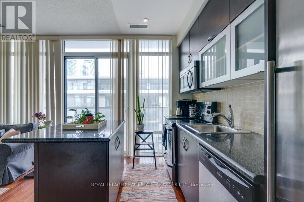 Welcome To Quay West At 90 Stadium Road, Where City Energy Meets Lakeside Serenity. This Beautifully And Cozy 1-Bedroom Suite Offers Stunning Views Of The CN Tower And An Unbeatable Waterfront Lifestyle. Featuring 9-Foot Ceilings And A Bright, Open-Concept Layout, This Suite Is Designed For Both Comfort And Entertaining. The Modern Kitchen Boasts Granite Countertops, A Spacious Centre Island With Additional Storage, And Stainless Steel Appliances. A Brand New Washer And Dryer Add Convenience, While The Large Private Balcony Overlooks A Peaceful Courtyard For The Perfect Place To Unwind. Enjoy Great Building Amenities That Include A Private Theatre Room, Billiards And Party Room, Whirlpool, Sauna, Gym, Car Wash Bay And Everything The Waterfront Has To Offer Just Steps From Your Door: The Lakefront Trail, Dedicated Bike Paths, Parks, TTC Streetcar Access, Billy Bishop Airport, And Loblaws. Minutes To Downtown Restaurants, The Financial District, Entertainment, Ontario Place, And Easy Highway Access. Parking & Locker Included, Tenants Are Responsible For Hydro. (42227648)