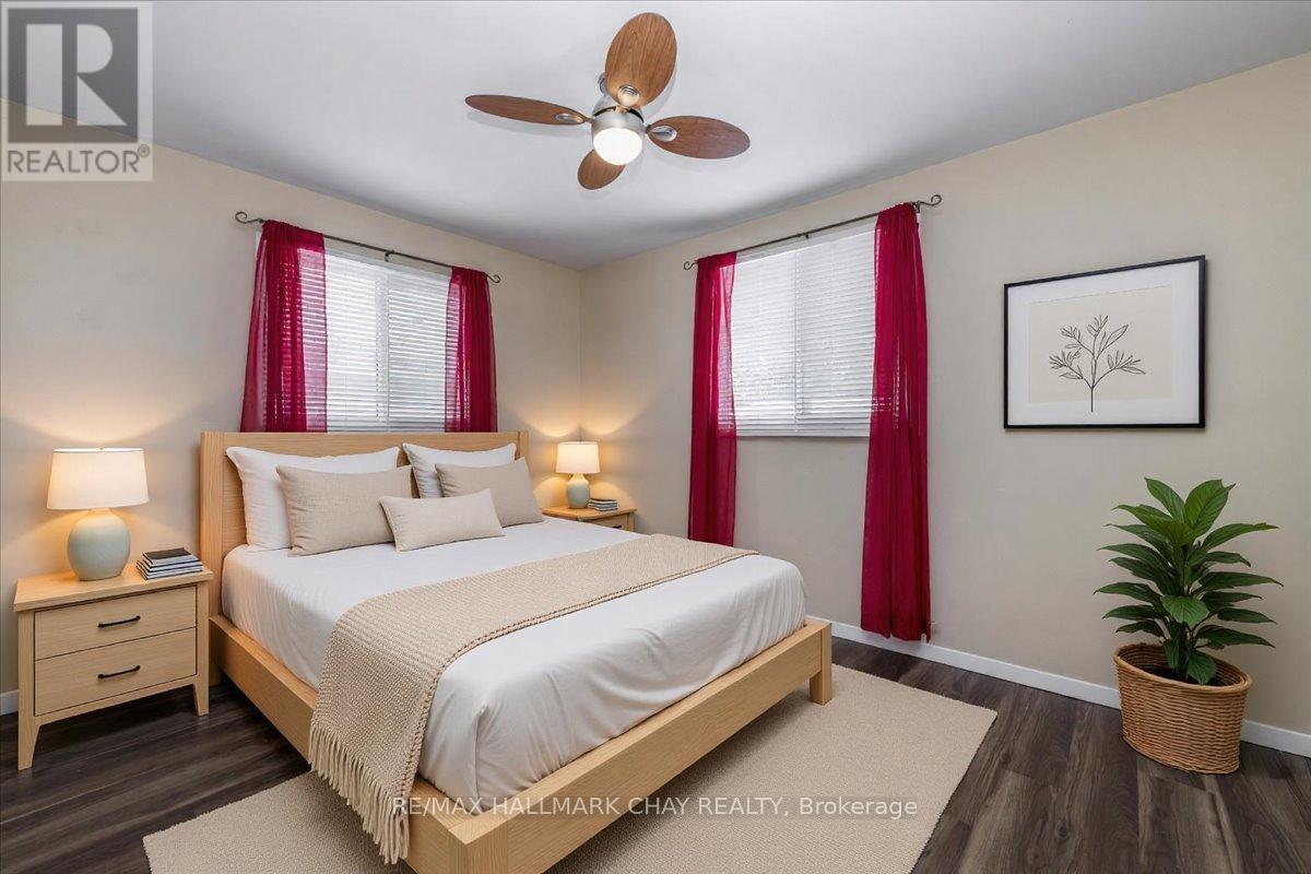 Picturesque Lakeside Living in Innisfil - Just Steps to Lake Simcoe! Welcome to this meticulously maintained 3+1 bedroom back-split set on a premium 60' x 214' park-like lot in a quiet, tree-lined, family-friendly neighbourhood. With charming curb appeal, a cozy covered front porch, and parking for up to 8 vehicles, this property offers exceptional space both inside and out. The main level features a bright, spacious layout with newly installed easy-clean laminate flooring, a fully equipped eat-in kitchen, and a grand formal dining room overlooking the expansive front yard. The inviting living room walks out to a sunroom, providing seamless access to both the garage and backyard - perfect for entertaining or relaxing year-round. Upstairs, updated laminate flooring continues through three generously sized bedrooms, including a primary suite with semi-ensuite privileges. The lower level offers incredible additional living space with a large family room featuring mostly above-grade windows and a cozy wood stove, a sizeable guest bedroom, a bright laundry room, and abundant storage in the oversized crawl space. Step outside to your private backyard retreat: Fully fenced, pool-sized yard. Mature trees offering shade and privacy. Dedicated fire pit area. Two custom-built sheds with electrical. One shed ideal as a potential summer bunkie. Additional highlights include a whole-home generator for added peace of mind. Located just seconds from the sparkling shores of Lake Simcoe and minutes to Friday Harbour Resort, golf courses, parks, schools, and the excellent shopping and amenities of South Barrie - this is an incredible opportunity to enjoy the very best of lakeside living. Don't miss your chance to call this Innisfil gem home. (42227660)