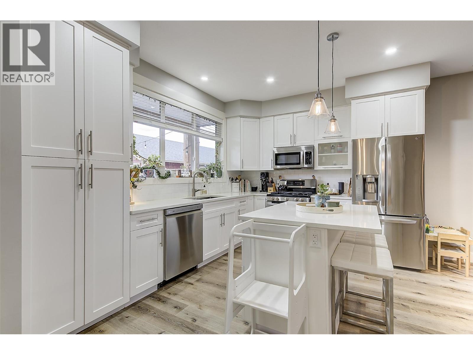 Experience relaxed, connected Kelowna living in this beautifully maintained townhome crafted by Maraine Construction. Thoughtfully designed with a warm, modern aesthetic, the home offers an inviting atmosphere from the moment you step inside. Sunlit living spaces create an easy flow for daily life—perfect for quiet mornings, relaxed evenings, or hosting friends in comfort. The kitchen’s quartz surfaces, stainless steel appliances, and gas range set the stage for effortless cooking and gathering. Upstairs, three bright bedrooms—primary with its own ensuite— provide privacy and comfort for homeowners, guests, or renters. A rare advantage in this category, the generous yard offers room to unwind outdoors, garden, or simply enjoy your own slice of city space. With covered garage parking, extra storage (including above-garage storage accessed by pull-down stairs), and efficient heating and cooling, the home delivers convenience without compromise. Situated near transit, schools, and essential amenities—and within a five-minute walk to three different parks with playgrounds—the location unlocks a genuinely walkable lifestyle. Bike or stroll to Pandosy Village or Downtown with ease, supported by direct access to the Ethel biking corridor. Offering style, comfort, and long-term value, this thoughtfully kept two-story townhome is an appealing alternative to condo living—ideal for a first home, investment, or those seeking a vibrant urban-adjacent community. (39781073)