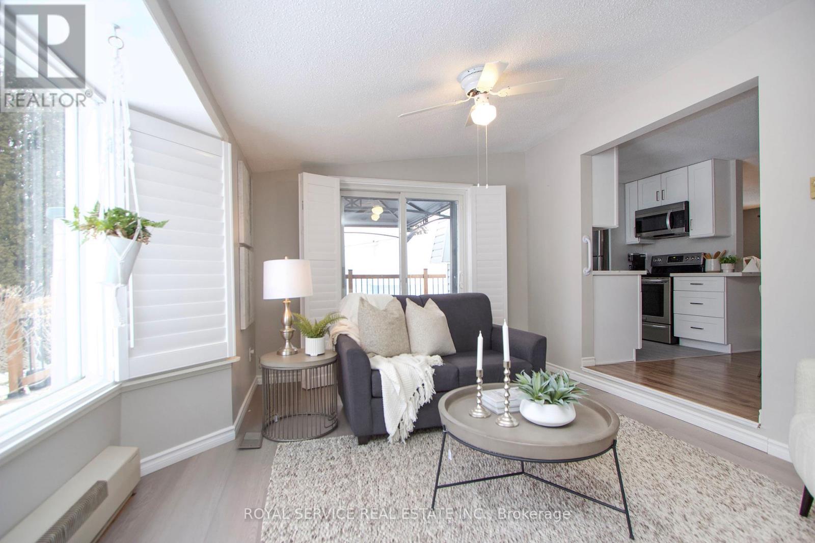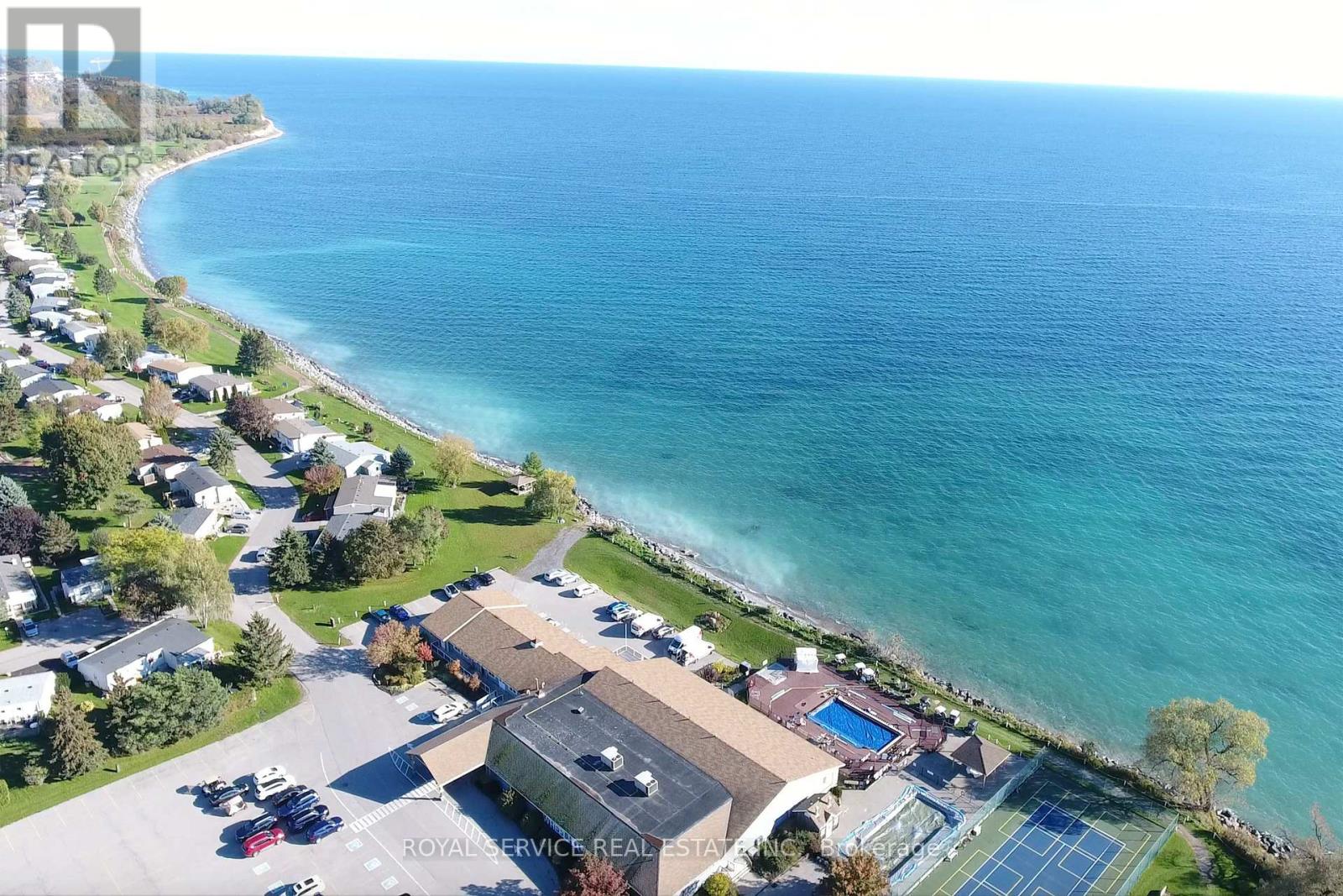 Welcome to life by the lake in the highly sought-after Wilmot Creek gated community, nestled along the picturesque shoreline of Lake Ontario. This charming 2-bedroom bungalow offers a rare opportunity to enjoy waterfront living in a peaceful, resort-style setting. Designed with an open layout, the home welcomes you into a spacious living room featuring a large picture window and cozy gas fireplace-perfect for relaxing and entertaining. The bright galley kitchen showcases granite countertops, crisp white cabinetry, and stainless steel appliances, along with a convenient side door providing easy access to the yard. The kitchen flows seamlessly into the open dining area, creating an inviting space for everyday living. A stunning sitting room captures breathtaking lake views and offers a walk-out to your private deck-an ideal spot to enjoy your morning coffee or unwind while taking in the serene waterfront backdrop. The primary bedroom features a generous double closet and large window, while the second bedroom includes its own closet and picturesque views of the Lake. Residents of Wilmot Creek enjoy an exceptional adult lifestyle with an impressive array of amenities, including a community pool, tennis courts, golf course, pickle ball, sauna, hot tub, woodworking shop, billiards room, and more. With total monthly fees of $1,407.74-including property taxes-this is an opportunity to experience low-maintenance, resort-style living in a tranquil lakeside community. A rare chance to own your own waterfront retreat in one of Wilmot Creek's most desirable settings. (42227991)