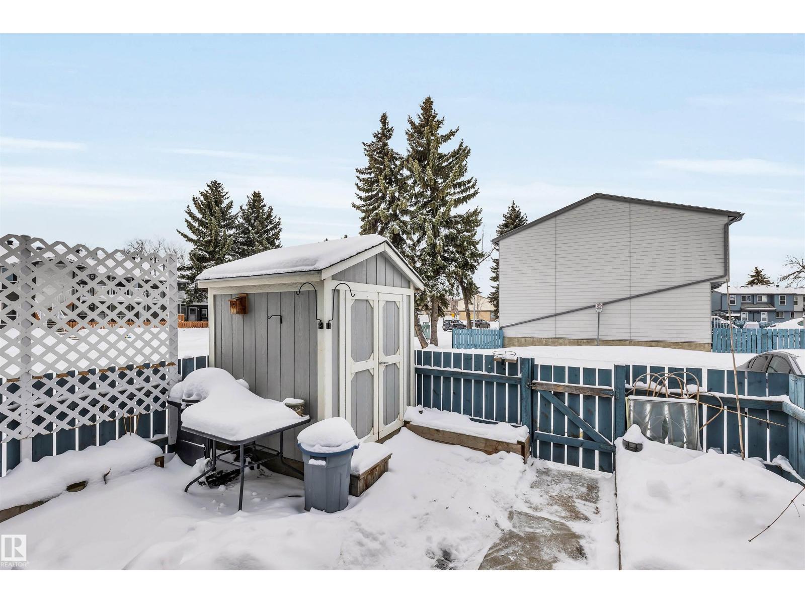 Townhome Top Line 2 + 1 Bedroom 2 Baths Turn Key Move In Living Room w/ Stone Mantle Fireplace ( Electric Insert) Pacific Blue Decorating Tones Throughout . Bright Kitchen with True Eating Area, Ample Cupboards Overlooking your Private Yard Space. Upper Level Features a Grand Sized Primary Bedroom c/w with Walk In Wardrobe , Built In Cabinets ! ! 2nd Bedroom a Generous Size . Renovated 4 Pce Bathroom c/w Heated Tile Floor. Lower Level Completely Finished 3 rd Bedroom, 3 Pce Bath Glass Shower Enclosure Rain Fall . Separate Laundry Area w/ Practical Laundry Sink. Workshop / Craft Area. Tons of Storage No Wasted Space. Upgraded Electrical Panel, Light Fixtures Plus re. End Unit Private Yard Space, Unistone Patio, Storage Shed, Raised Garden Beds Don't forget to Harvest the Grapes this Summer! Parking ( Energized ) at your Rear Door. Complex Underwent Complete Exterior Renovations, New Windows, Exterior Doors, Composite Smooth Siding. Short Commute to All 14204 - 31 St (33878921)