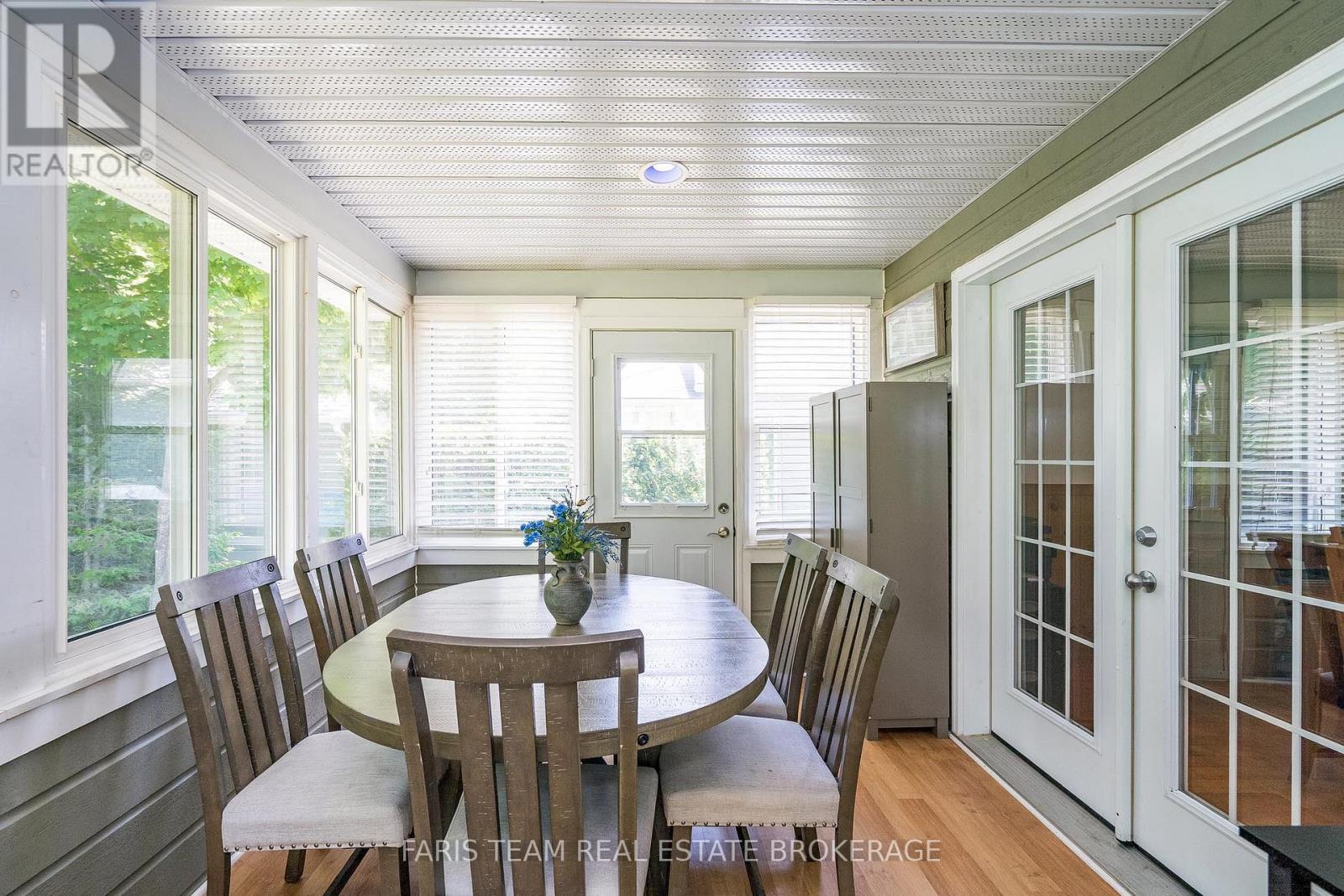 Top 5 Reasons You Will Love This Home: 1) Situated on a peaceful street in the sought-after Lakes of Wasaga Country Life, this 4-season chalet-style home delivers cozy living with the added security of a gated community, along with a full-width front porch inviting you to relax with your morning coffee or unwind as the sun sets and unlike many homes in the community, this one backs onto mature woods offering a rare sense of privacy with a tree-lined yard and direct access to a peaceful walking trail creating your own secluded escape 2) Designed with ease and comfort in mind, the open-concept layout features a welcoming gas fireplace, a main level bedroom, a 3-piece bathroom with a walk-in shower, and convenient main level laundry 3) The spacious, light-filled sunroom is a true bonus, presenting the perfect spot for a home office, second living area, or a quiet reading nook; step out onto the back deck and enjoy a private, tree-lined yard complete with nearby access to a peaceful walking trail 4) Upstairs, two large bedrooms and a handy 2-piece bathroom provide plenty of space for family or overnight visitors, creating a comfortable and private retreat for everyone 5) Enjoy all the perks of a vacation lifestyle without leaving home, including swimming pools, tennis courts, a splash pad, mini golf, basketball, and scenic trails; plus, you're just minutes from beaches, golf courses, and the excitement of Blue Mountain Village, making this your perfect all-season escape. 1,111 above grade sq.ft. (42228170)