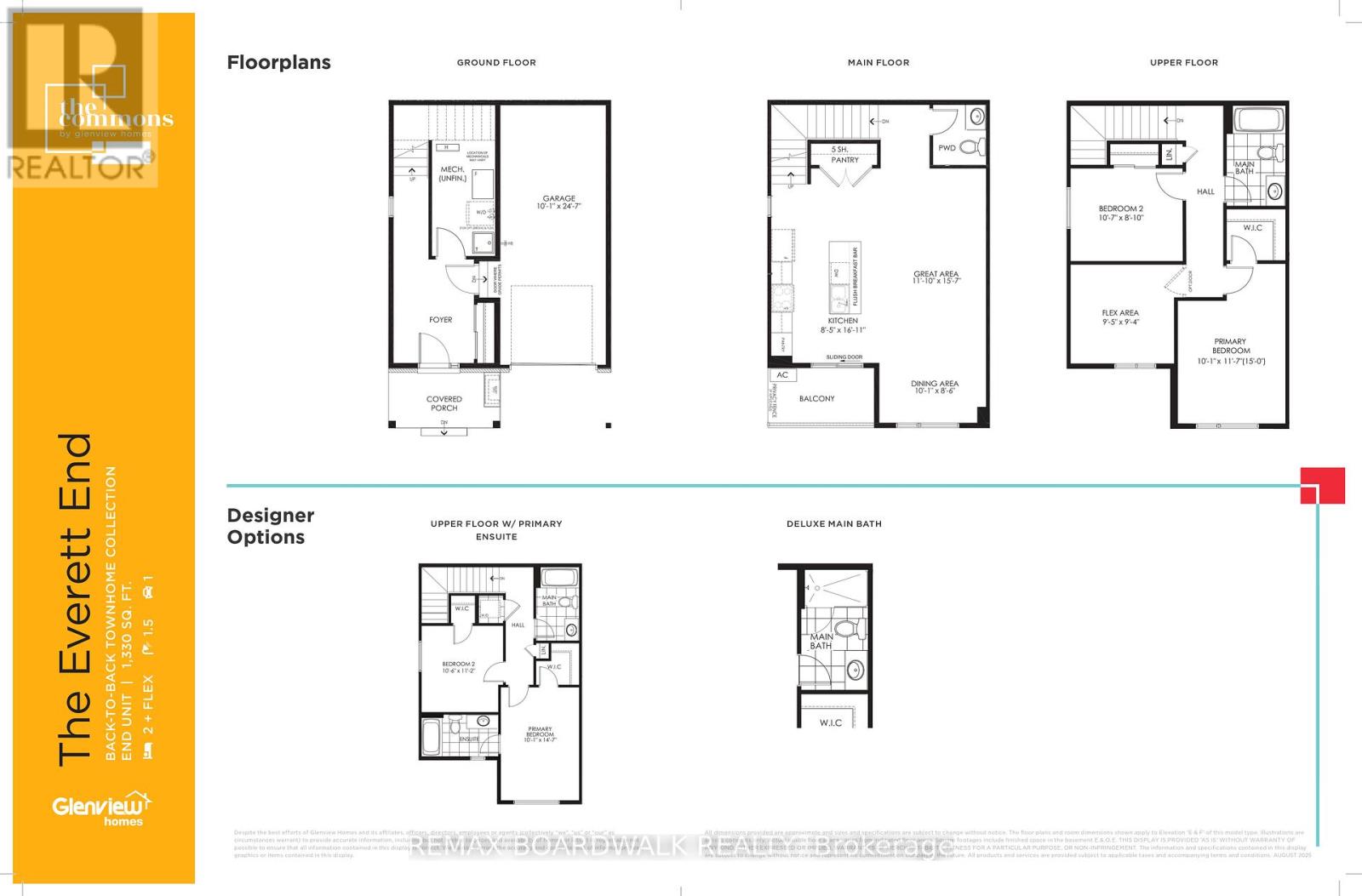 'The Everett' - an exquisite 3-storey back-to-back townhome debuting for the 1st time in the highly desirable Chapel Hill community -The Commons- by Glenview Homes! First-Time Buyer seeking a low-maintenance entry into homeownership or an Investor looking for a premium, high-demand rental property, this END UNIT is a sought-after choice. With 1330sqft this home has been brilliantly designed to maximize space, style, and everyday comfort. Entry level welcomes you with a covered porch, bright foyer, and convenient garage access. The open-concept main floor centers around a stunning kitchen featuring a quartz island, opens to a private balcony perfect for morning coffee, and is equipped with a full suite of stainless steel appliances. Entertain seamlessly in this inviting space and flow into the bright great room and dining areas. Convenient powder room completes this level. Upper level hosts the spacious primary bedroom with a generous walk-in closet, a comfortable second bedroom, flex space perfect as a home office (which can be upgraded to ensuite bathroom), and a modern 4pc bathroom also featuring quartz counters. Coming full of upgrades like smooth ceilings throughout, elegant composite wood flooring on the entry and main levels, and contemporary pot lights that illuminate the space. Customize your layout and finishes by acting now to take advantage of a $2,500 Design Studio Bonus! The Commons is an amenity-rich community offering the perfect blend of convenience and quality of life. Enjoy local shops, fantastic restaurants, parks, and recreation facilities right outside your door. All this and some of the city's best schools. Best of all commuting is a breeze with direct bus route access to Downtown Ottawa and quick access to the city's core. Rendering of the park, interiors and elevations is an artist's concept and is for illustrative purposes only. Actual features, landscaping, and layouts may vary. E&OE (42228789)