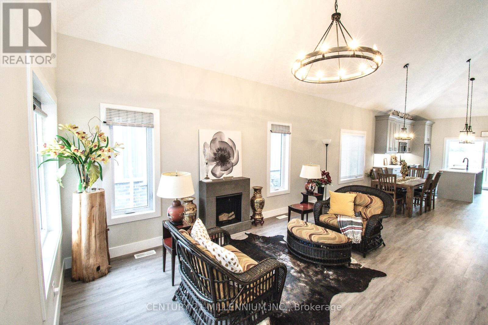Welcome to this gorgeous 3 bedroom upgraded end unit. A sophisticated modern bungaloft in the heart of Port Dover. Thoughtfully designed with both style and functionality, the open-concept main level is filled with natural light. Additional windows only available in end units. Stunning oak staircase and gleaming wide plank floors throughout! The chef-inspired kitchen serves as the heart of the home, showcasing designer finishes with sleek white quartz countertops, textured tile backsplash, and a generous centre island. The deck is perfect for summer barbecues and relaxing outdoors. The spacious master bedroom has an ensuite bath with quartz top vanity, glass shower, and large walk-in closet. Two more bedrooms and 4-piece bath upstairs offer comfort and privacy for your family or guests. Main level laundry with extra cabinets and garage access. The basement has high ceilings, oversized windows, and bathroom rough-in. The smart layout maximizes space and functionality, delivering low-maintenance luxury without compromise. This modern home offers the perfect balance of upscale lakeside living, and everyday convenience. Ideally located in a family friendly neighborhood close to the beach, shops, restaurants, parks, golf, and many more! An exceptional opportunity for discerning buyers seeking designer style, comfort, and long term value in Port Dover. Just move-in and enjoy! Condo fee covers snow removal, lawn care, and exterior maintenance. Also includes Bell Fibe high speed internet and cable TV. (Some photos are virtually staged) (42228833)