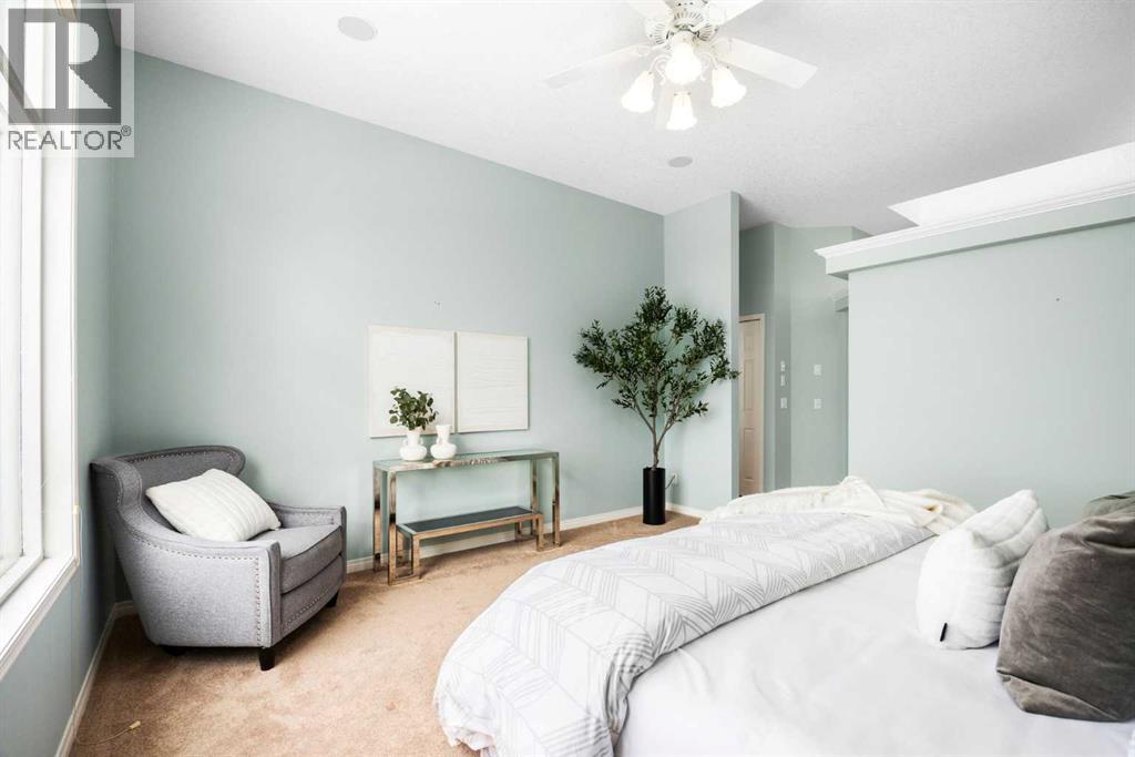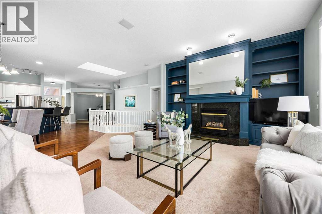 Positioned on one of the most desirable lots in the Villas of Gleneagles, capturing sweeping, unobstructed mountain and golf course views from nearly every room. Elevated above the lush fairways, the setting is both private and spectacular. West facing floor to ceiling windows fill the home with natural light and frame breathtaking sunsets over the Rockies. The bungalow layout offers convenient single level living on the main floor, blending spacious design with everyday comfort. Refinished hardwood floors extend through the kitchen and dining nook, highlighted by a striking island and stainless steel appliances. Updated lighting and fresh neutral paint create a timeless aesthetic, while the dramatic floor to ceiling fireplace anchors the main living space. A formal dining room, dedicated main floor office, and laundry room off the heated garage complete the upper level. The walkout lower level is designed for entertaining and relaxation, featuring a wet bar, large recreation space, second gas fireplace, and two additional bedrooms ideal for guests or hobby space. In floor heat and abundant storage add comfort and practicality. Additional highlights include electric Hunter Douglas blinds on the main floor, in ceiling sound system, Central Air Conditioning, and a heated double garage with epoxy flooring. Enjoy true lock and leave living with snow removal and lawn care included, leaving more time to explore the miles of pathways weaving throughout the community or to enjoy a round at The Links of Gleneagles just outside your back door. A rare opportunity in one of Cochrane’s most sought after villa communities. (31693597)