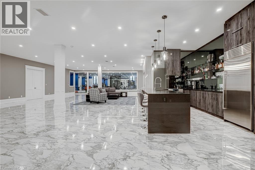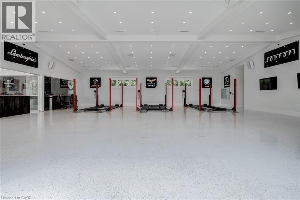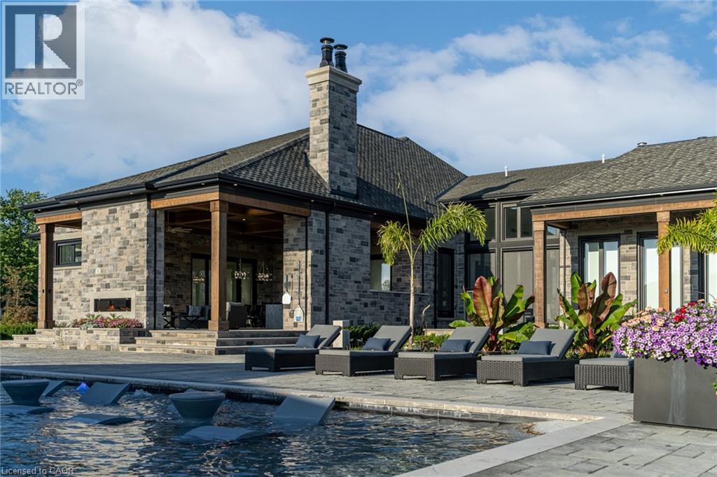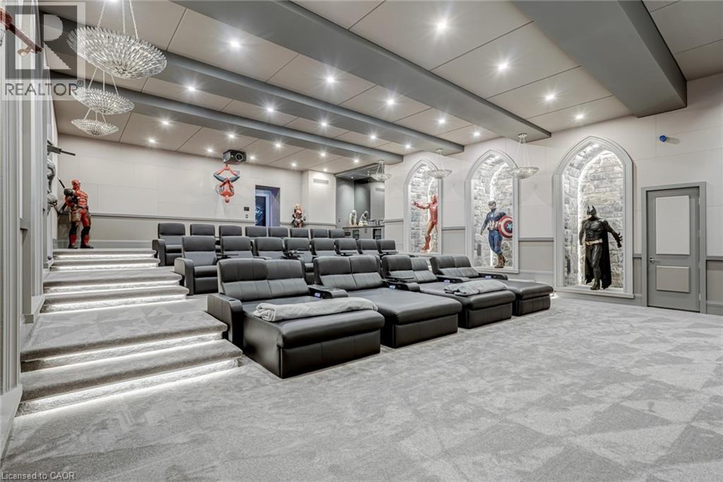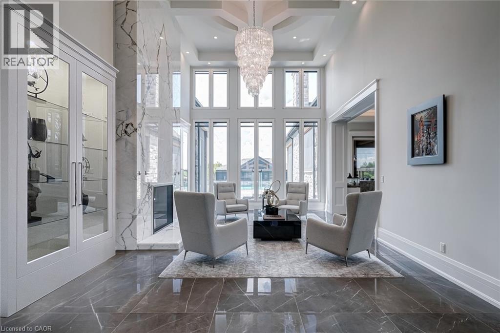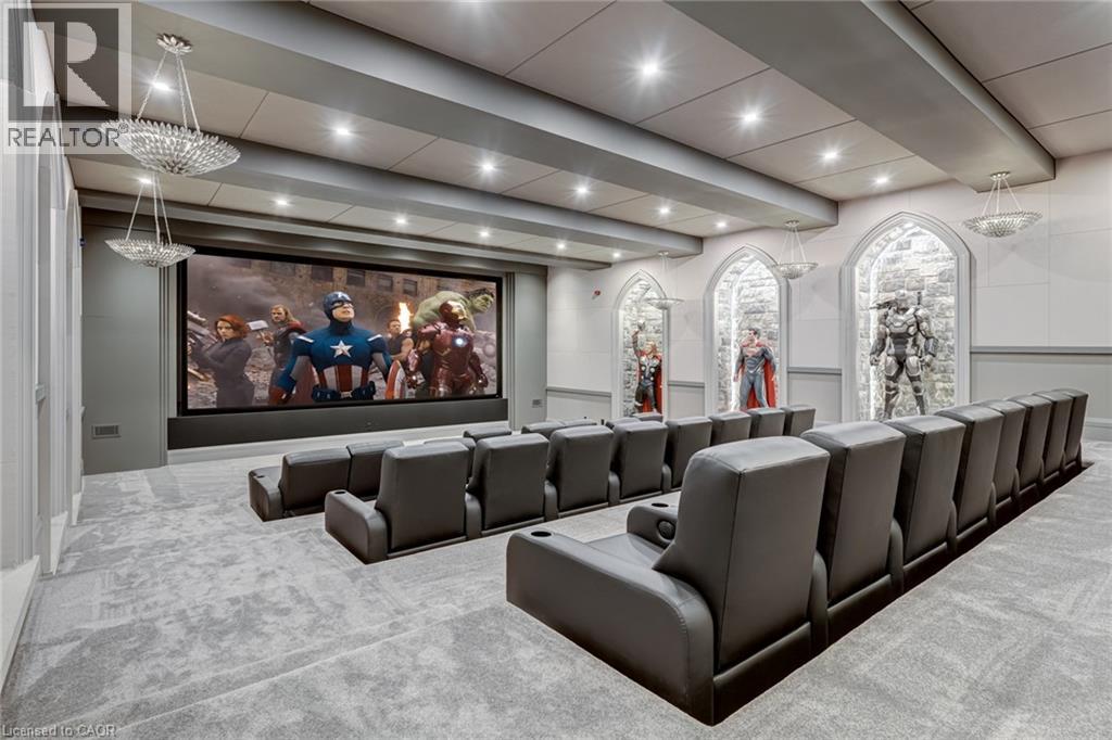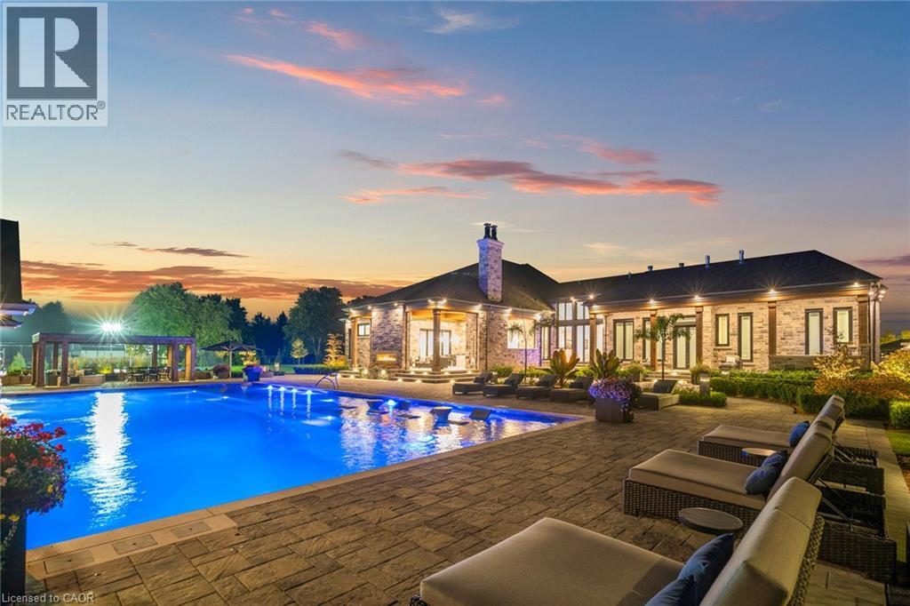 Set amidst a 5.2-acre estate, this extraordinary 32,000+ sq ft mansion offers unparalleled luxury and privacy. The gated and secured property features a stunning 1/3-acre aerated pond leading to a sprawling contemporary bungalow with lofted in-law quarters and a 5,210 sq ft detached garage with lounge, wash bay, and private gas pump—ideal for car enthusiasts.Surrounded by serene countryside, yet minutes from the heart of Ancaster, the renowned Hamilton Golf & Country Club, and Highway 403, offering both seclusion and convenience. Inside, every room showcases soaring 14 to 18-foot custom moulded ceilings, 32-inch porcelain flooring, and the highest quality materials and craftsmanship. The state-of-the-art home features whole-home automation by Control4. Spacious living areas feature custom granite walls with Town & Country fireplaces. A gourmet kitchen is equipped with top-tier appliances, including Sub-Zero, Thermador, and Miele. The luxurious lanai is perfect for entertaining, with heated Eramosa flagstone, a full outdoor kitchen, 72” Woods gas fireplace, and phantom screens. The opulent primary suite includes a private patio with hot tub and an expansive dressing room. The ensuite features heated herringbone floors, a soaker tub with fireplace, towel warmer drawers and a digital rain shower. The opposite wing offers three additional bedroom suites, each with walk-in closets and ensuites. A Cambridge elevator provides access to the entertainer’s dream basement, with a party room, full bar, professional gym with sauna and steam shower, games room, and a state-of-the-art home theatre. This 24-seat Dolby Atmos theatre features a 254-inch screen, 24-foot ceiling height, and a Kaleidoscope movie server for the ultimate cinematic experience. Outdoor amenities include a 35’ x 75’ heated pool, a 14-person hot tub, and an entertainment cabana with a media area and hosting bar. A regulation-size sports court and a children’s playground complete this family-friendly estate. (70212216)